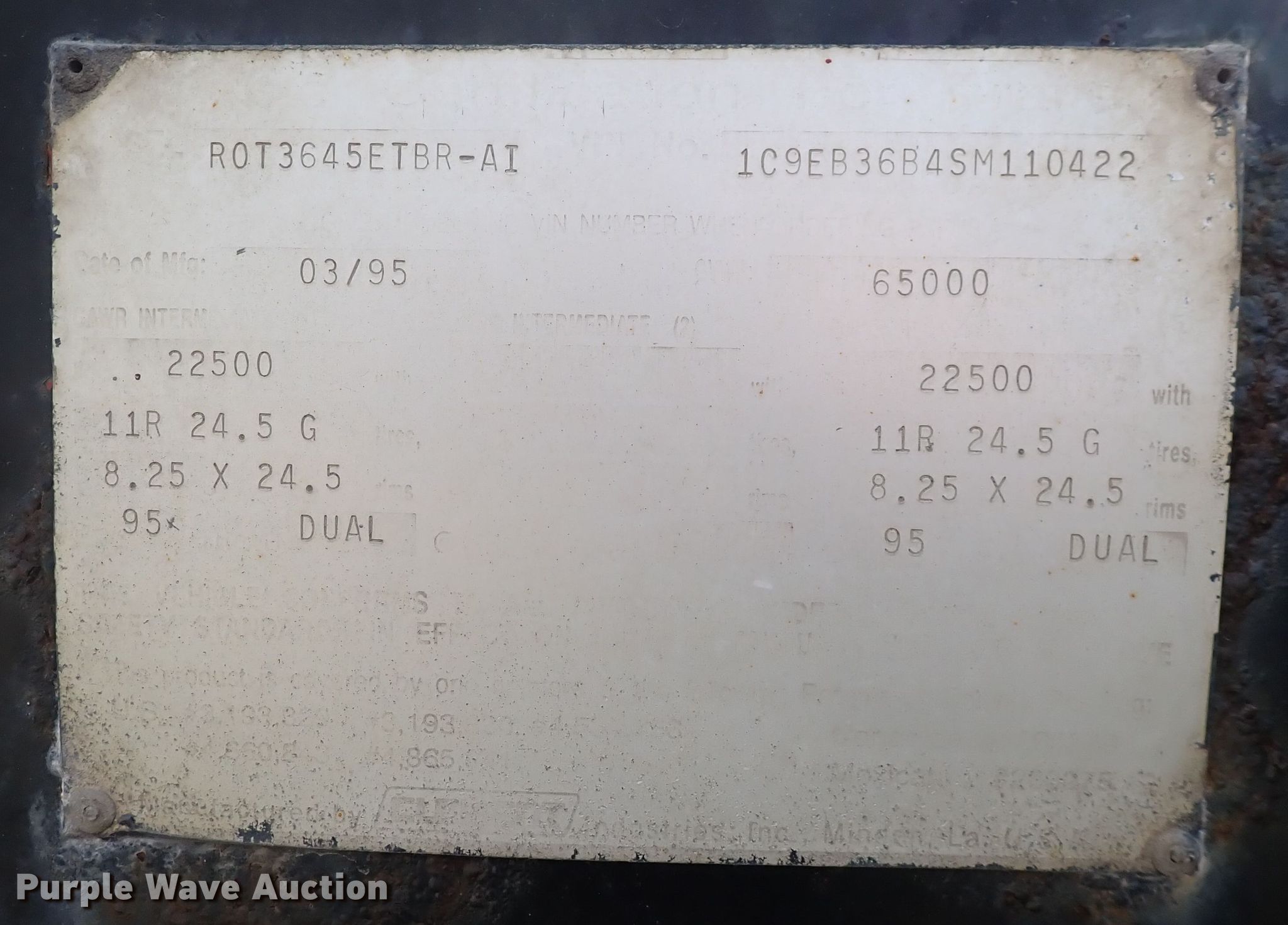 Purple Wave is selling a used Container Trailer in Kansas. This item is a 1995 Clement R0T3645ETBR-AI roll-off container trailer with the following: VIN: 1C9EB36B4SM110422
