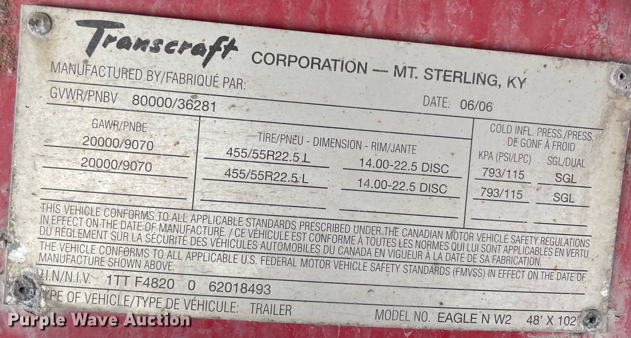 Purple Wave is selling a used Flat or Drop Deck Trailer in Oklahoma. This item is a 2006 Transcraft Eagle flatbed trailer with the following: VIN: 1TTF4820062018493