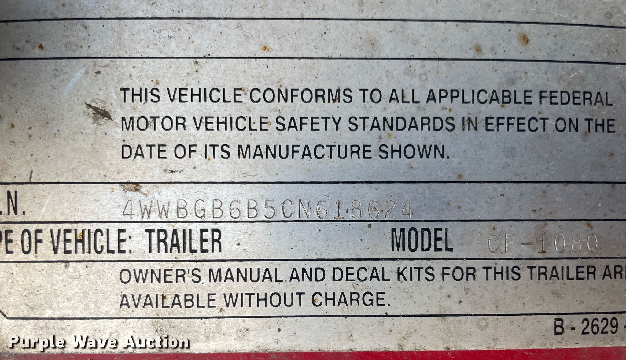 Purple Wave is selling a used Flat or Drop Deck Trailer in Oklahoma. This item is a 2012 Wilson CF-1080 flatbed trailer with the following: VIN: 4WWBGB6B5CN618624