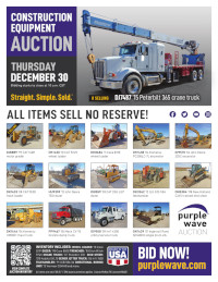 Payments must be made by 4 p.m. CST on the second business day following the auction. Failure to make payment or payment arrangements by the deadline will result in a $30 late payment fee. Purple Wave reserves the right to charge the credit card on file the total purchase price and a $30 late payment fee will be added for invoices not paid within our terms. Payment should be made to Purple Wave, Inc.