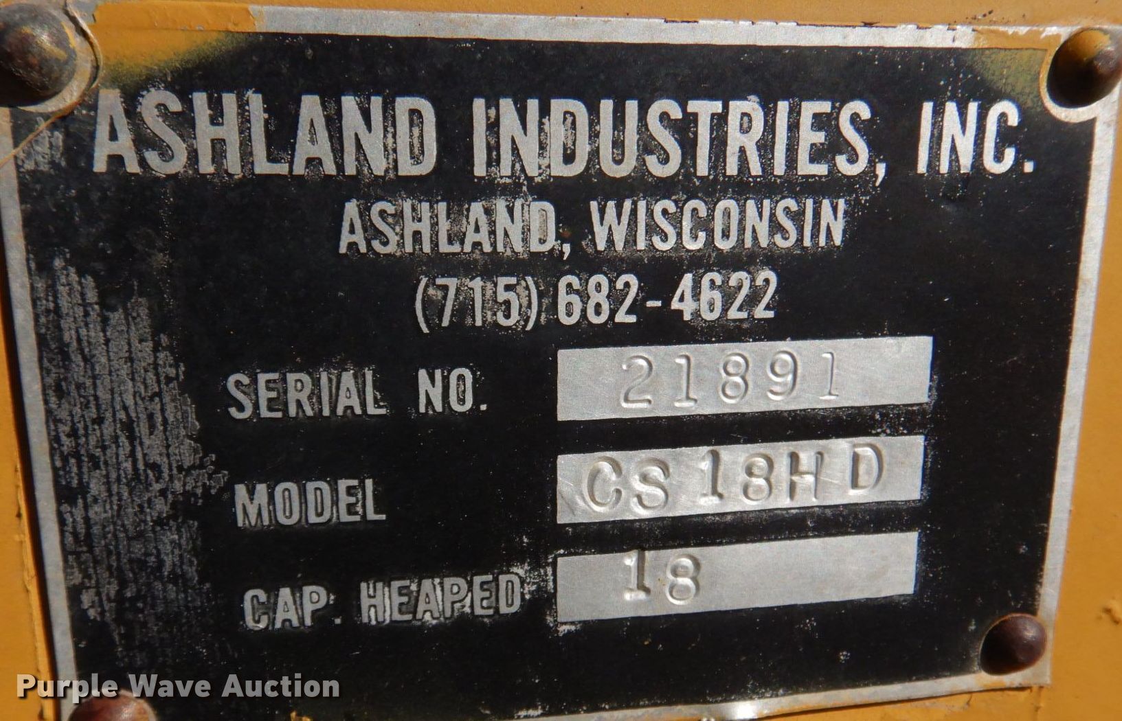 Purple Wave is selling a used Pull Type Scraper in Missouri. This item is a 2008 Ashland CS18HD scraper with the following: Serial: 21891