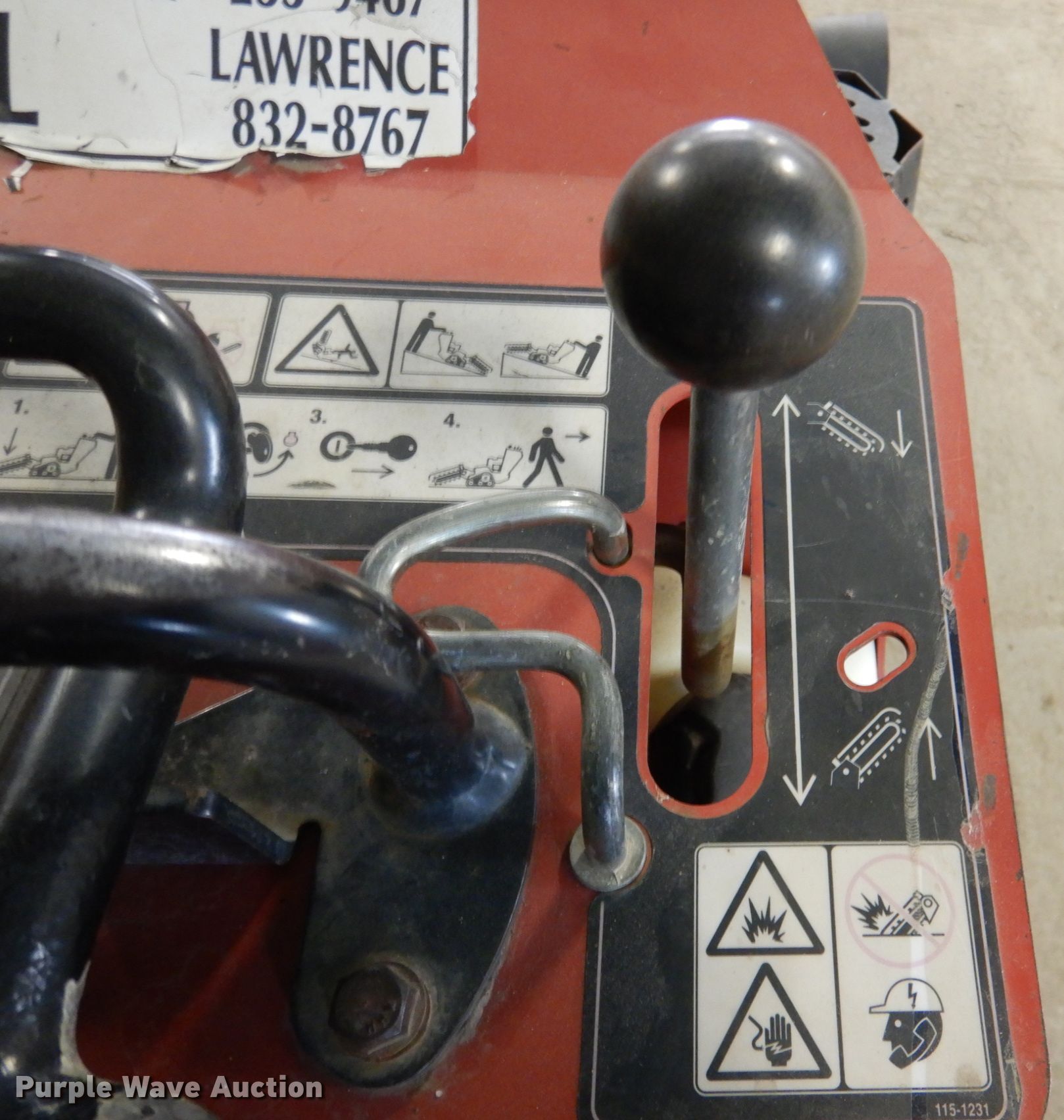 2014 Toro TRX-20 trencher. Hours: 1,083 on meter, Serial: 314000134. Engine Kawasaki, Cylinders: 2, Fuel type: Gas. Transmission Hydrostatic. Operational Trencher Estimated dig depth: 36", Cutting width: 6", Manual crumber. Tracks Width: 6", Rubber. Sunflower Rental. 2010 SW Topeka Blvd. Topeka, KS 66612