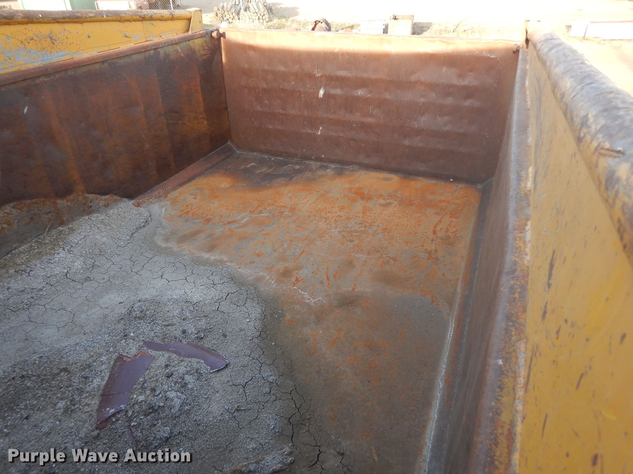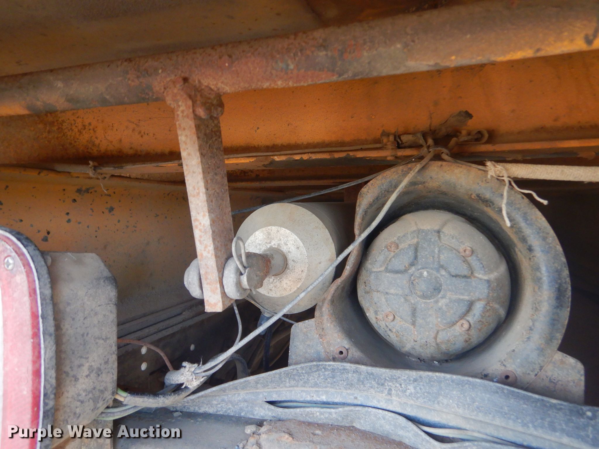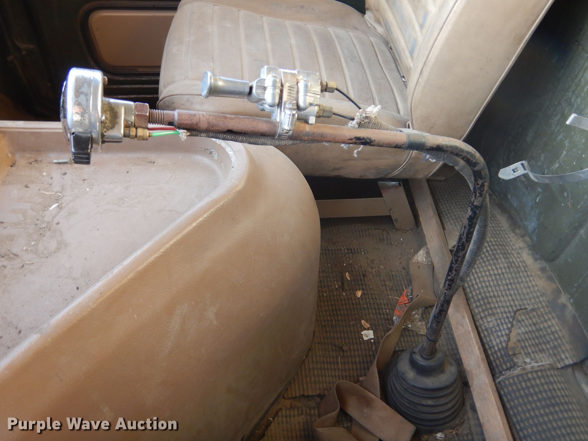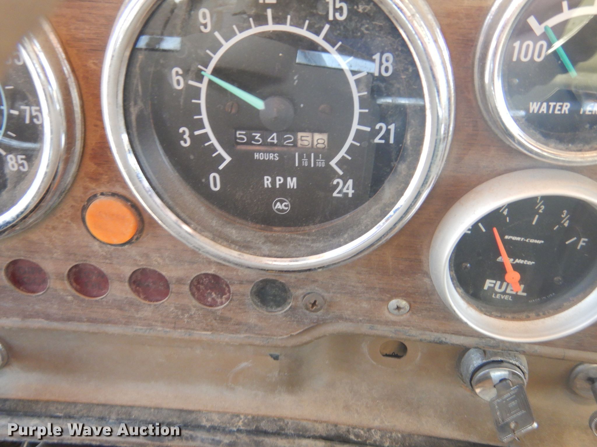 1979 GMC Brigadier dump truck. Miles: 238,164 on odometer, Hours: 5,343 on meter, VIN: T49CCAV566885. Engine Cummins, Cylinders: 6, Fuel type: Diesel. Transmission Eaton Fuller, Manual, Speed: 13. Chassis Axles: Tandem, Suspension: Spring over walking beam, Brakes: Air, PTO, GVWR: 52,000 lbs FAWR: 12,000 lbs, IAWR: 20,000 lbs, RAWR: 20,000 lbs, Wheelbase: 168". Interior Heat. Operational Dump bed 12' L x 96" W, Side height: 48", Bed type: Steel, Roll tarp, Ram: Single , End gate: Manual. Tires Front: 12R22.5, Rear: 11R22.5. South Dakota tite. AGE Corporation. 704 US Hwy 14. Fort Pierre, SD 57532
