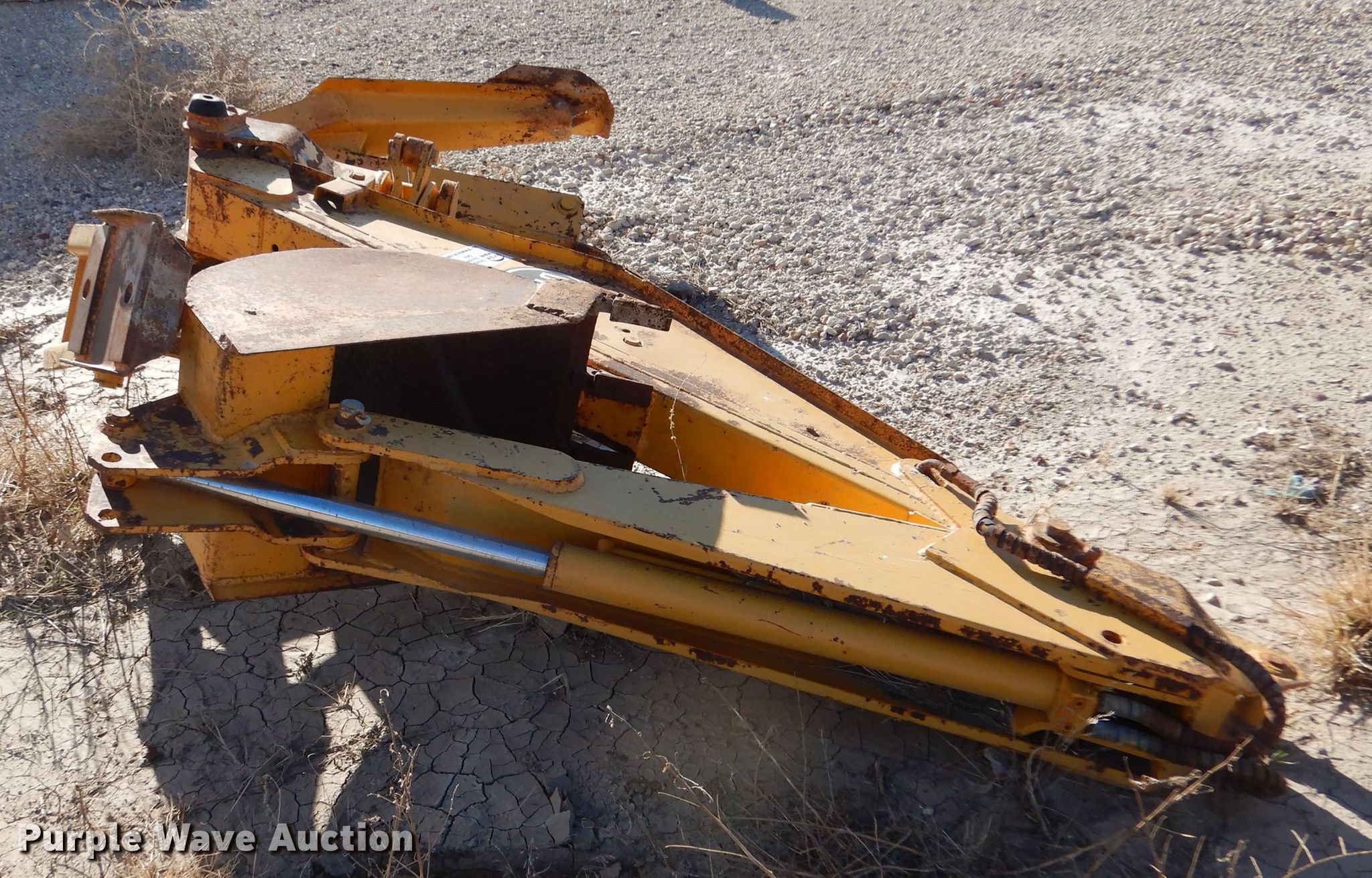 Purple Wave is selling a used Backhoe Attach. in Kansas. This item is a Davis D130 backhoe attachment with the following: Bucket, Width: 18", Cutting edge: Weld-on, Teeth: 4, Four stick controls