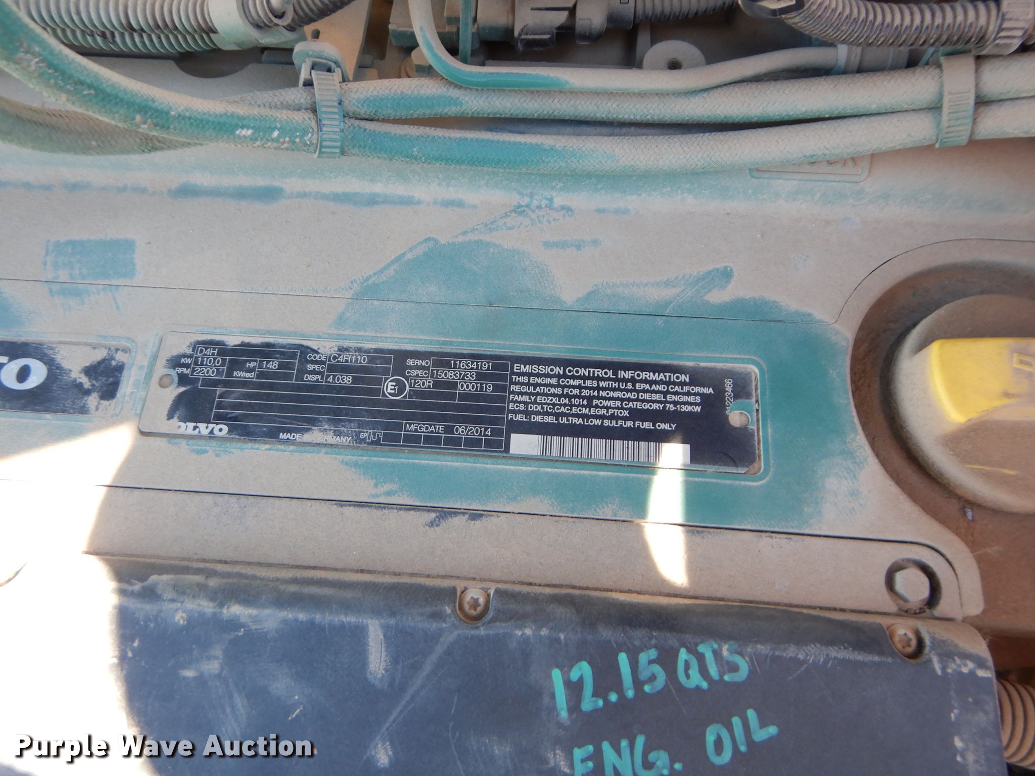 2014 Volvo DD120B double drum vibratory roller. Hours: 1,318 on meter, Serial: S287075, Unit #: 3616. Engine Volvo, Displacement: 4.0L, Cylinders: 4, Fuel type: Diesel, HP: 148. Transmission Hydrostatic, Two speed travel. Operators station OROPS. Operational Drum: Smooth, Vibratory system: Double, Independent drum controls, Two speed, Front drum Width: 79", Diameter: 55", Rear drum Width: 79", Diameter: 55", Drum scrapers: Front, Rear, Water spray applicator: Front, Rear. RoadBuilders Machinery & Supply. 1001 S 7th St Trfy. Kansas City, KS 66105