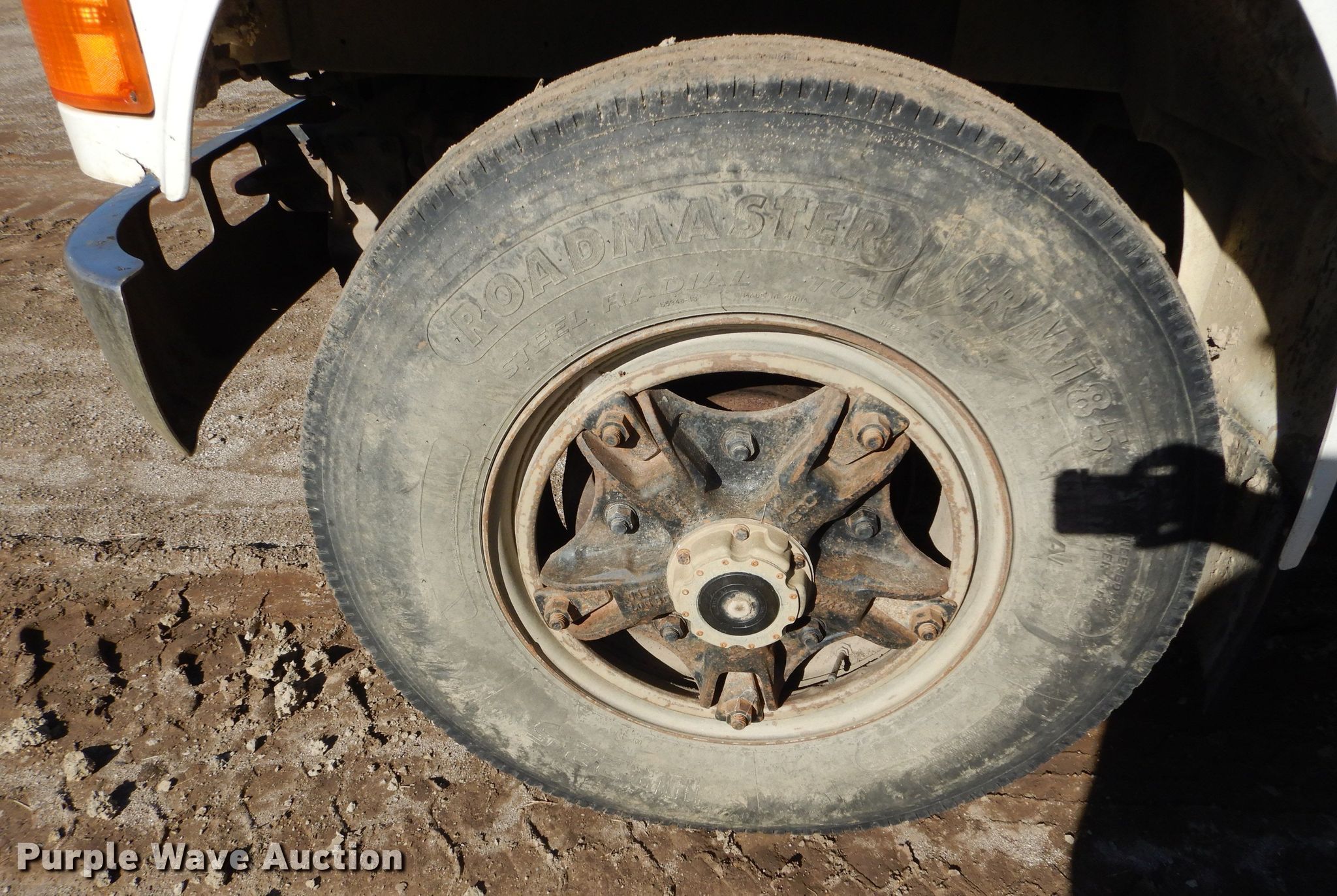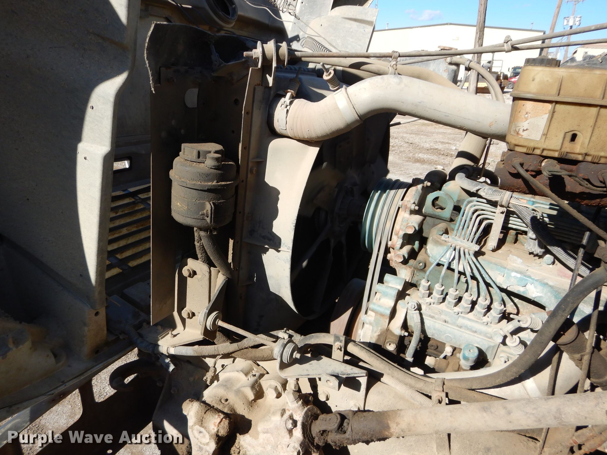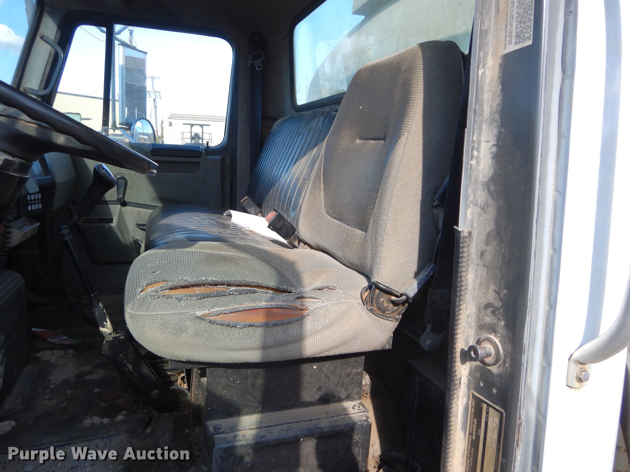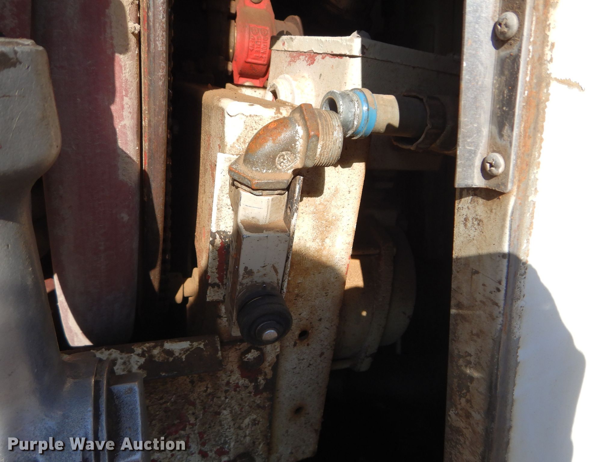 1993 International 4700 fuel truck. Miles: 364,470 on odometer, VIN: 1HTSCPHP0PH478413. Engine International DT360, Displacement: 5.9L, Cylinders: 6, Fuel type: Diesel. Transmission Manual, Speed: 7. Chassis Axles: Single, Suspension: Spring, Brakes: Hydraulic. Interior Heat. Operational Fuel system Hose reels: 2, Nozzles, Metered pumps: 2. Tires Size: 11R22.5. Notes Dash warning indicator: Brake, Dead batteries, Non-operational exterior driver door handle, Tank leaks. Kansas title. RoadBuilders Machinery & Supply Co In. 1001 S 7th St Trfy. Kansas City, KS 66105