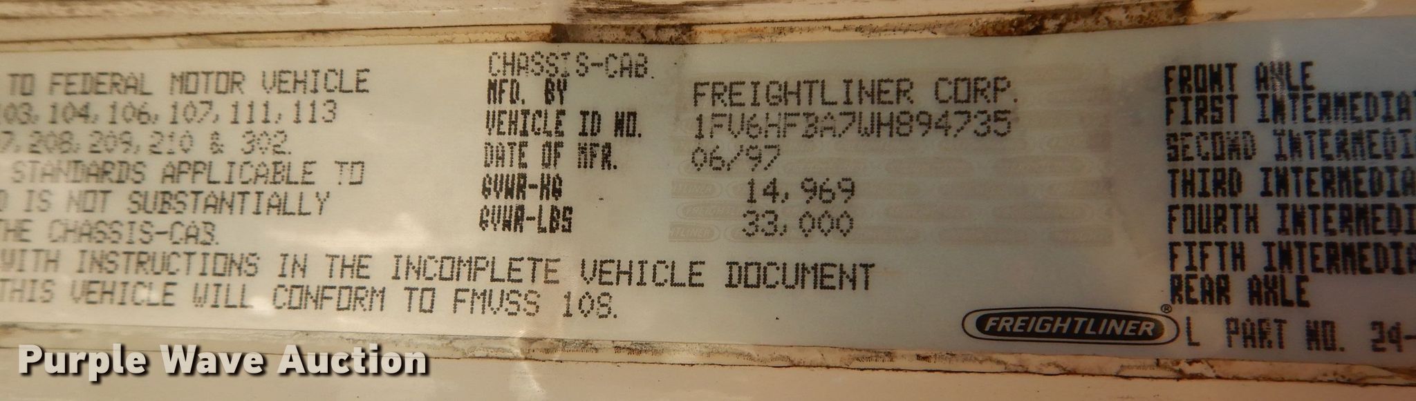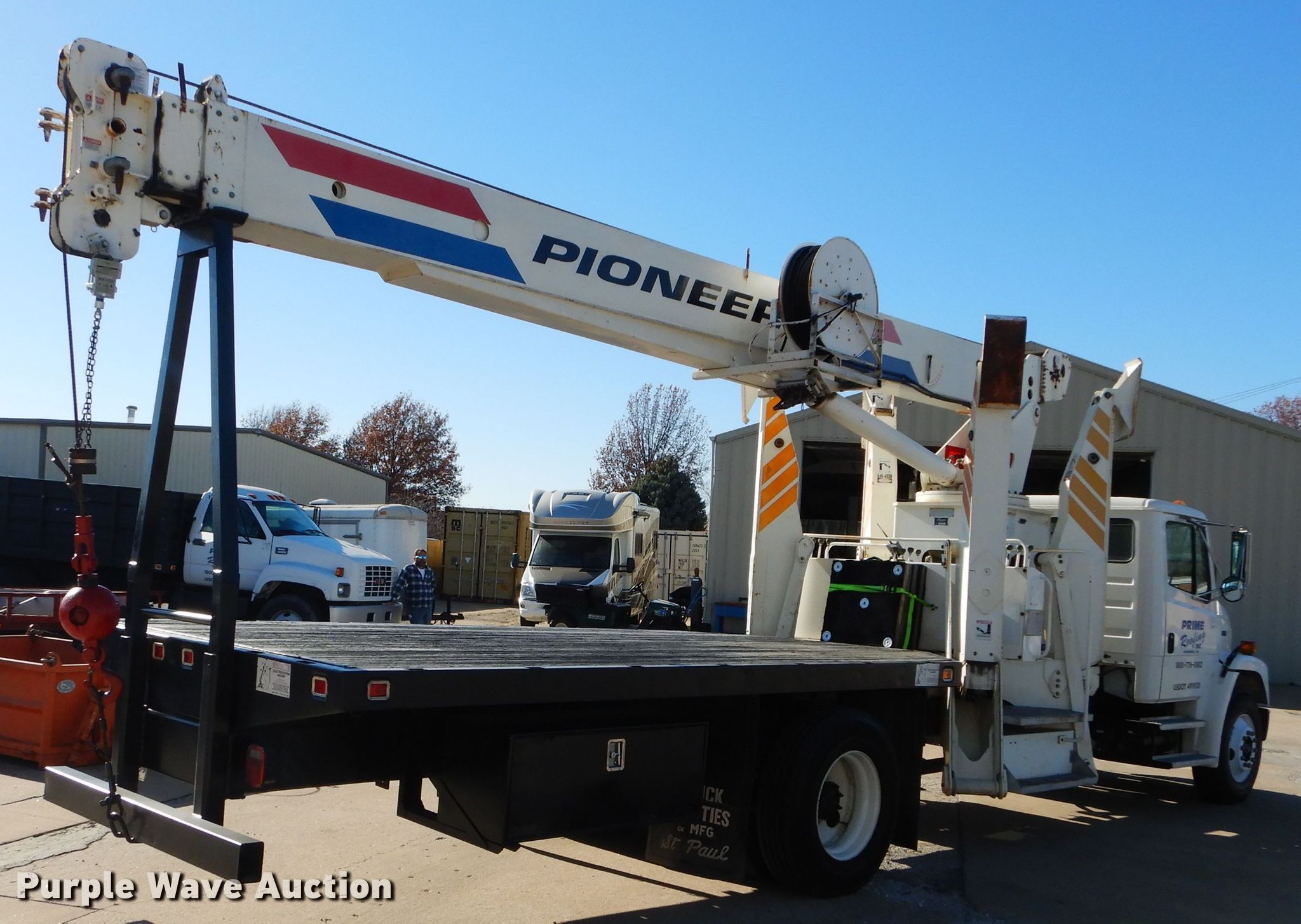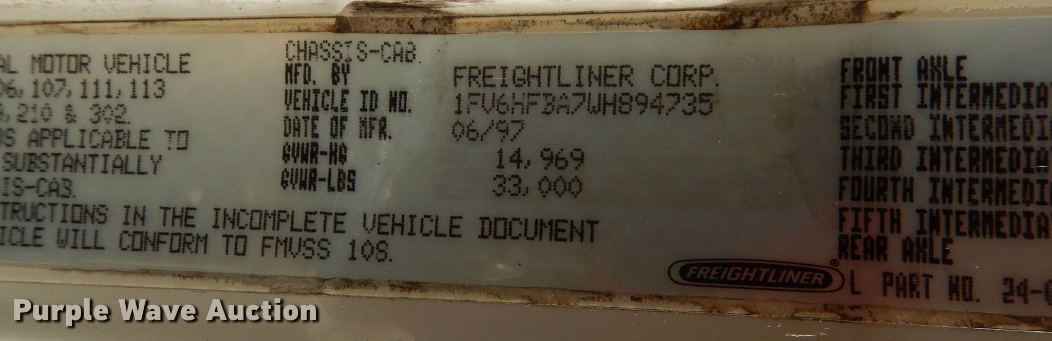 Purple Wave is selling a used Crane Truck in Kansas. This item is a 1998 Freightliner FL70 crane truck with the following: Miles: 33,698 on odometer, Hours: 3,247 on meter, VIN: 1FV6HFBA7WH894735