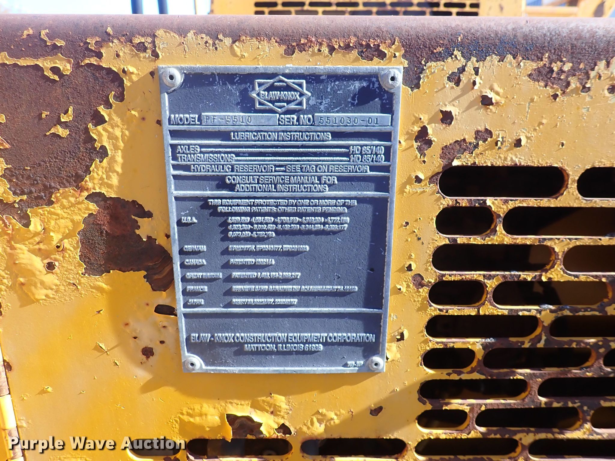 Purple Wave is selling a used Paver or Screed in Kansas. This item is a 2000 Blaw Knox PF5510 paver with the following: Hours: 9,602 on meter, Serial: 551030-01, Unit #: 21035
