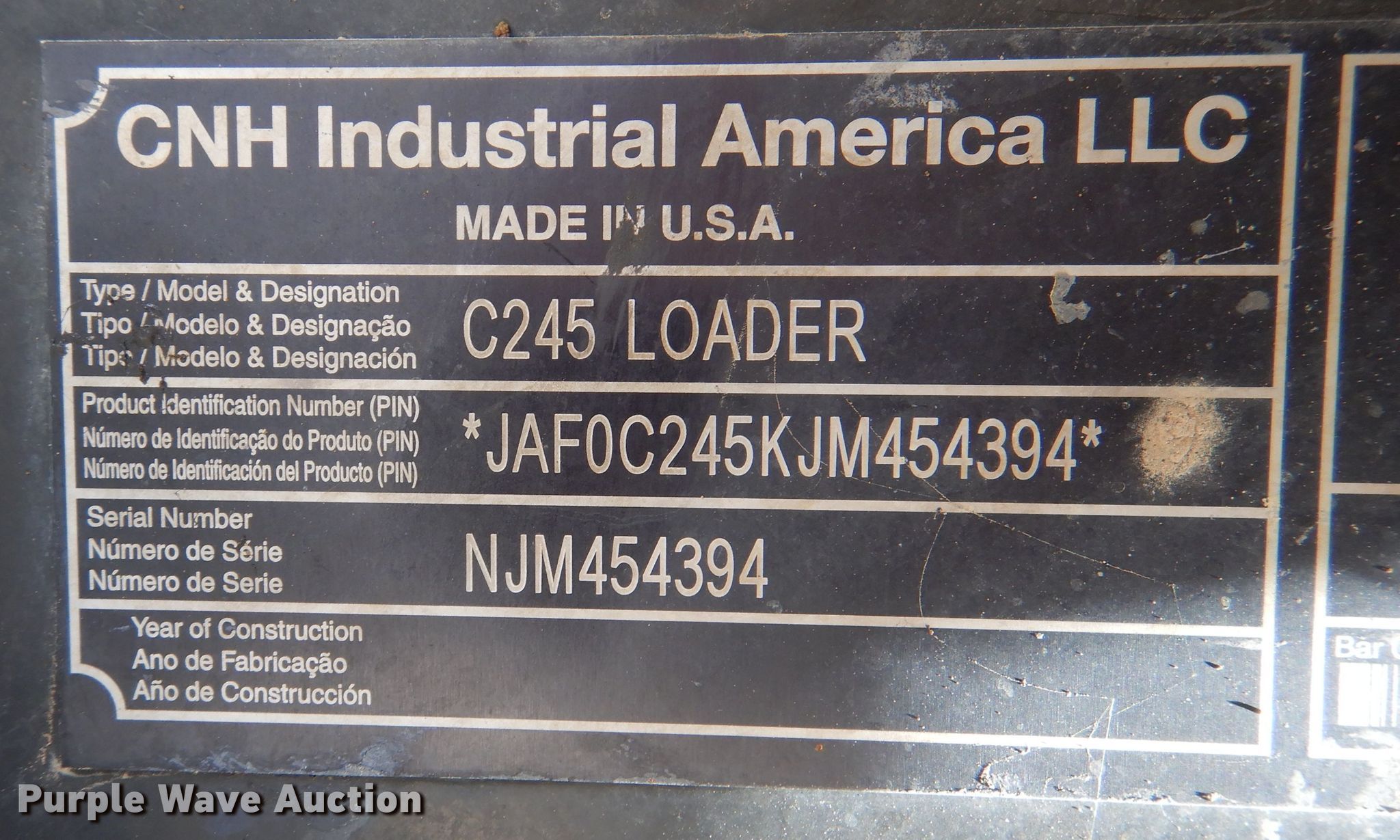 Purple Wave is selling a used Tracked Skid Steer Loader in Kansas. This item is a 2018 New Holland C245 tracked skid steer loader with the following: Hours: 1,456 on meter, Serial: NJM454394