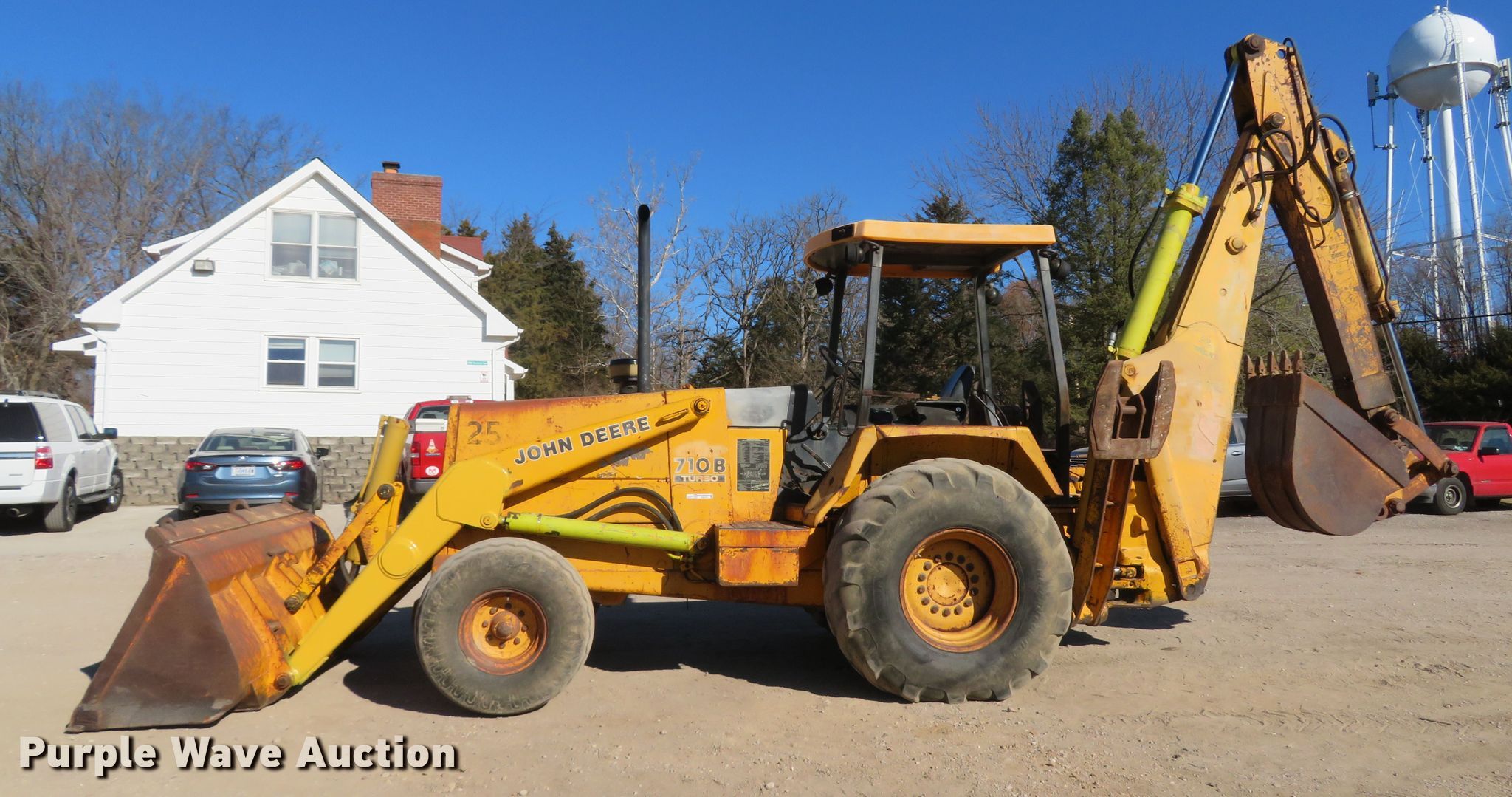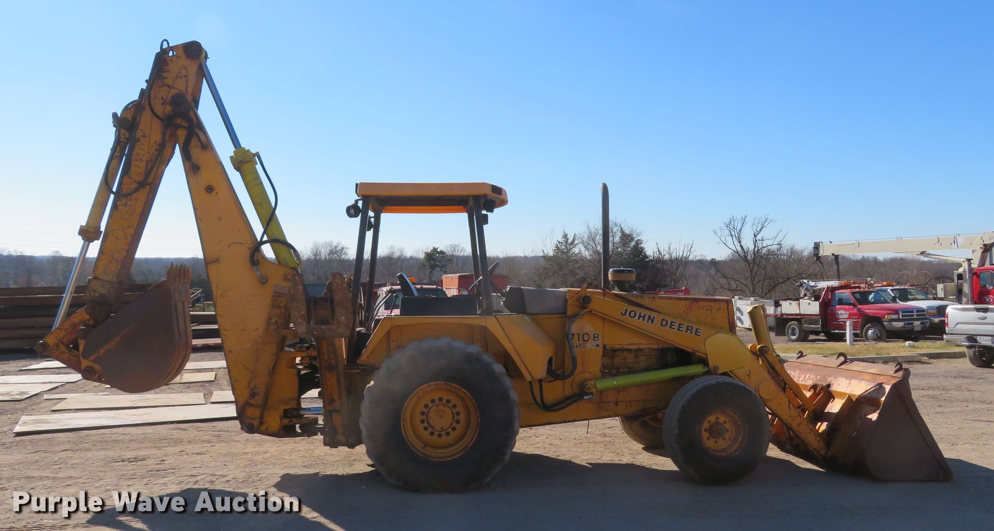 Purple Wave is selling a used Tractor Loader Backhoe in Missouri. This item is a 1984 John Deere 710B backhoe with the following: Hours: 7,849 on meter, Hours: Unknown, Serial: T0710BD707570