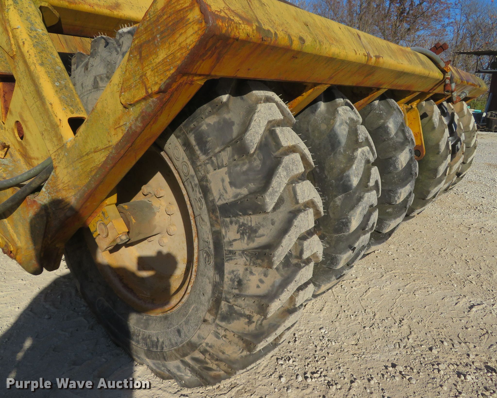 1998 Reynolds 17C scraper. Serial: 29370. Operational Bowl capacity: 17 cu.yd., Reversible cutting edge, Hydraulic lift. Tires Size: 13.00-24. Notes Damaged hydraulic lines. K.J. Unnerstall Construction Co.. 4923 S Point Rd. Washington, MO 63090