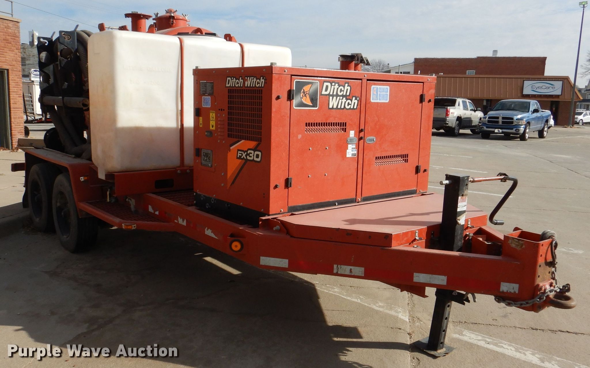 2018 Ditch Witch FX30 vacuum excavator. Hours: 1,008 on meter, VIN: 1DSB202Z5J1701915. Engine Kubota D1105-EF02, Displacement: 1.1L, Cylinders: 4, Fuel type: Diesel, kW: 18.5. Operational Spoils tank Capacity: 800 gallons, Water tank Capacity: 300 gallons, Water pump, Vacuum pump Tuthill 4007-A6L2C-5823, Inlet valve size: 4", Outlet valve size: 6", Suction hose Diameter: 3". Trailer Charles Machine Works T22S, 20' 10" L x 102" W, Brakes: Electric, Axles: Tandem, Tire size: 235/75R17.5, GVWR: 22,000 lbs. Transfer of ownership documentation will be a bill of sale. 18017 S State Rte Y. Belton, MO 64012