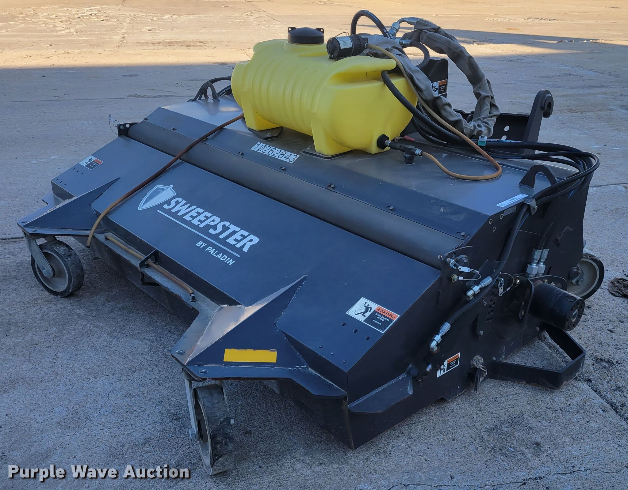 Purple Wave is selling a used Wheel Loader Attach. in Missouri. This item is a 2014 Paladin Sweepster 20385M-0733 sweeper with the following: Width: 84", Water applicator system, Water tank capacity: 24 gallons, Electric pump, Serial: 1418060