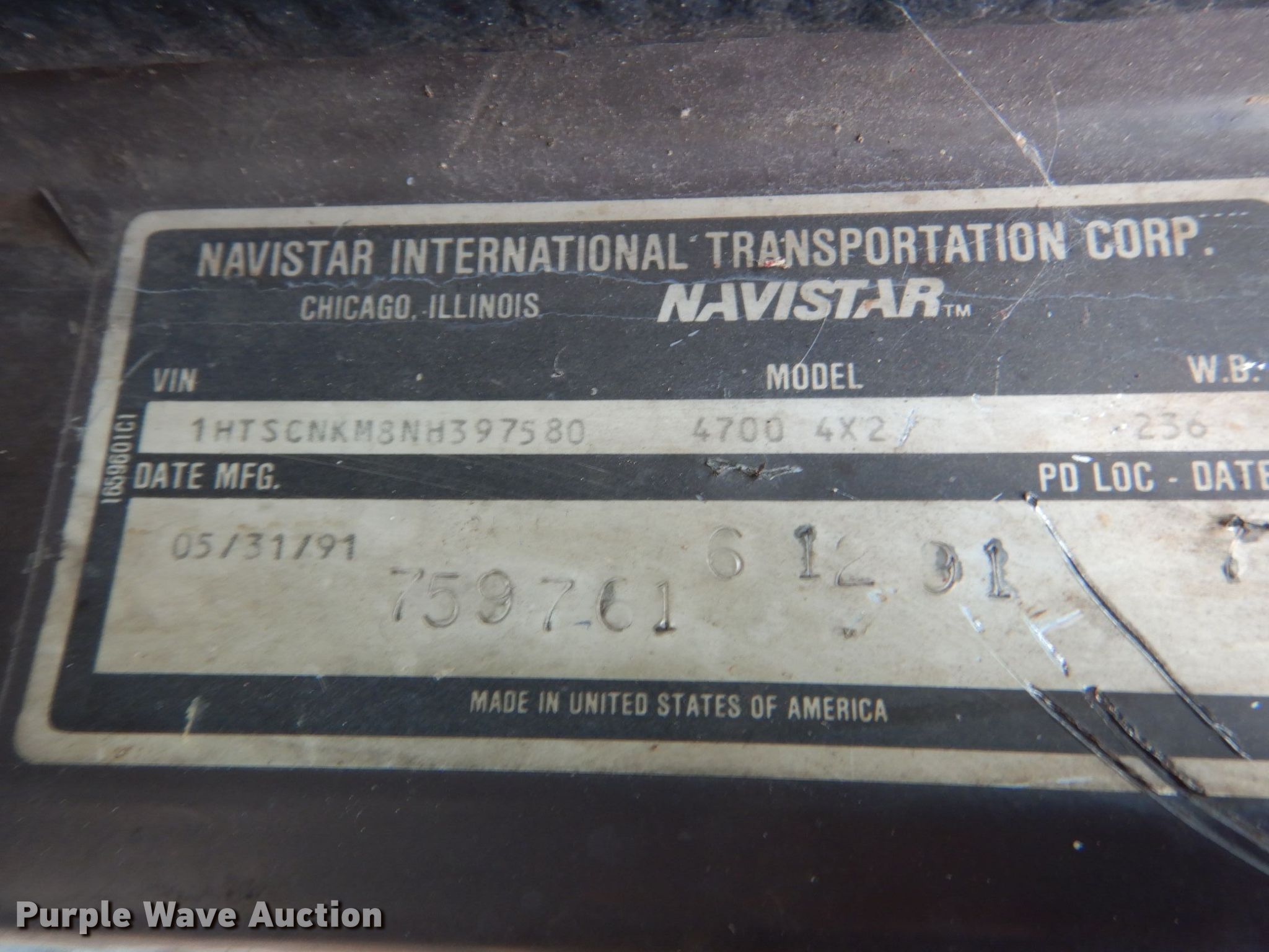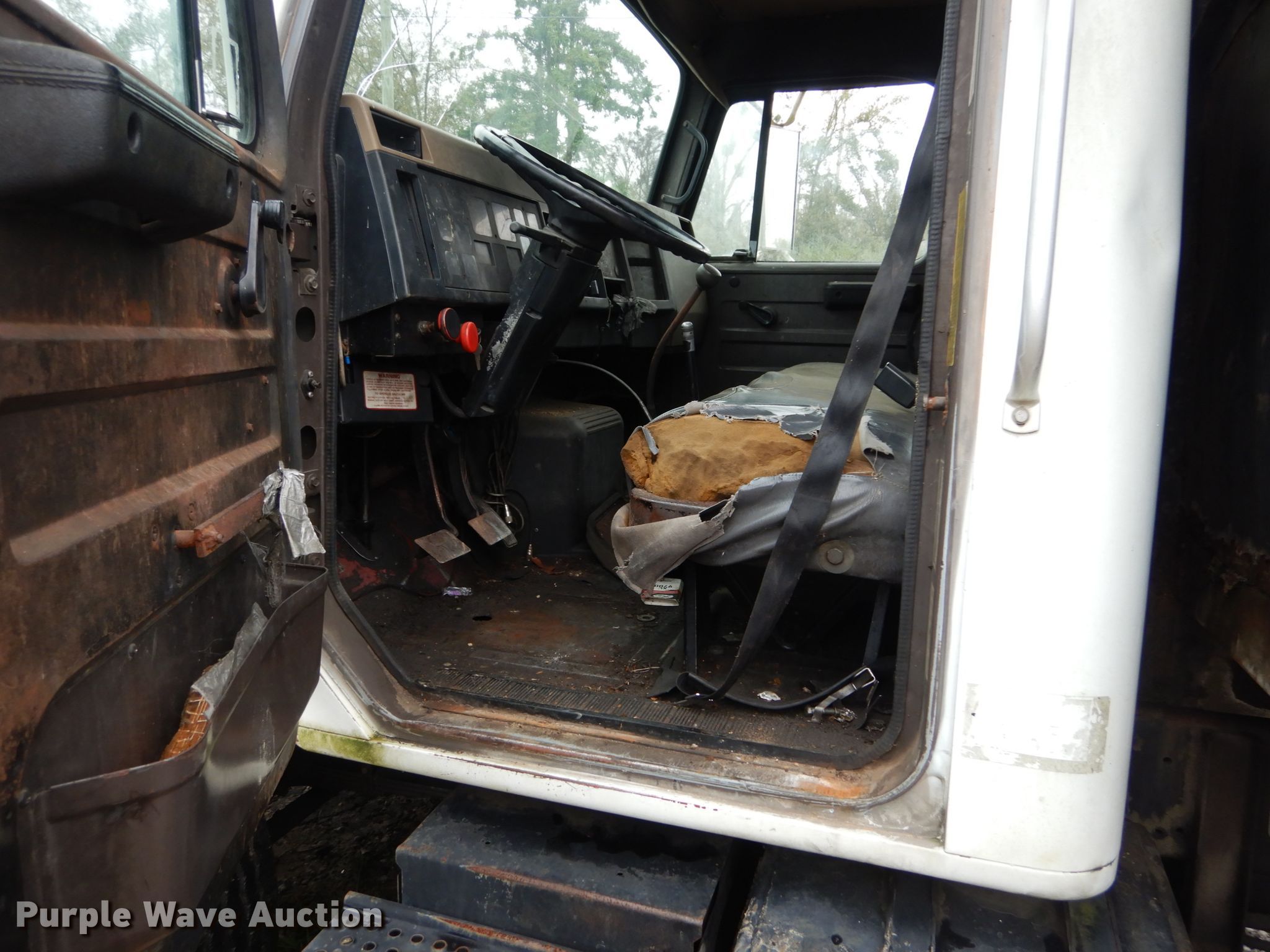 1992 International 4700 dump truck. Miles: Unknown, VIN: 1HTSCNKM8NH397580. Engine International DT360, Displacement: 5.9L, Cylinders: 6, Fuel type: Diesel. Transmission Manual. Chassis Axles: Single, Suspension: Spring, Brakes: Hydraulic, PTO, GVWR: 25,000 lbs FAWR: 8,000 lbs, RAWR: 17,000 lbs. Interior Heat. Operational Dump bed 20' L x 96" W, Side height: 108", Bed type: Steel, Ram: Single. Tires Size: 11R22.5. Notes Windshield chipped or cracked, Unknown operating condition of hoist. Arkansas title. 16500 Pear St SE. Blountstown, FL 32424