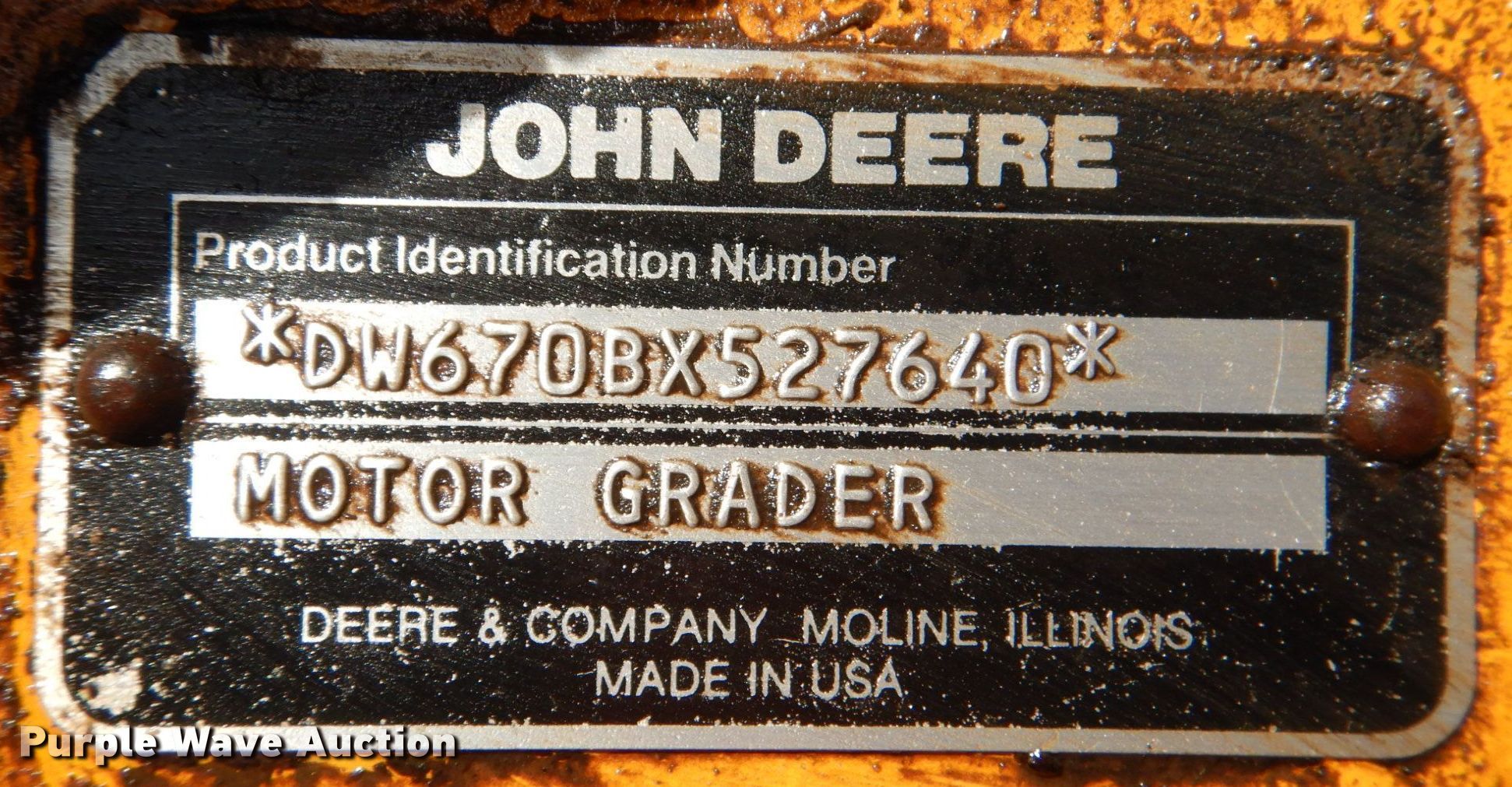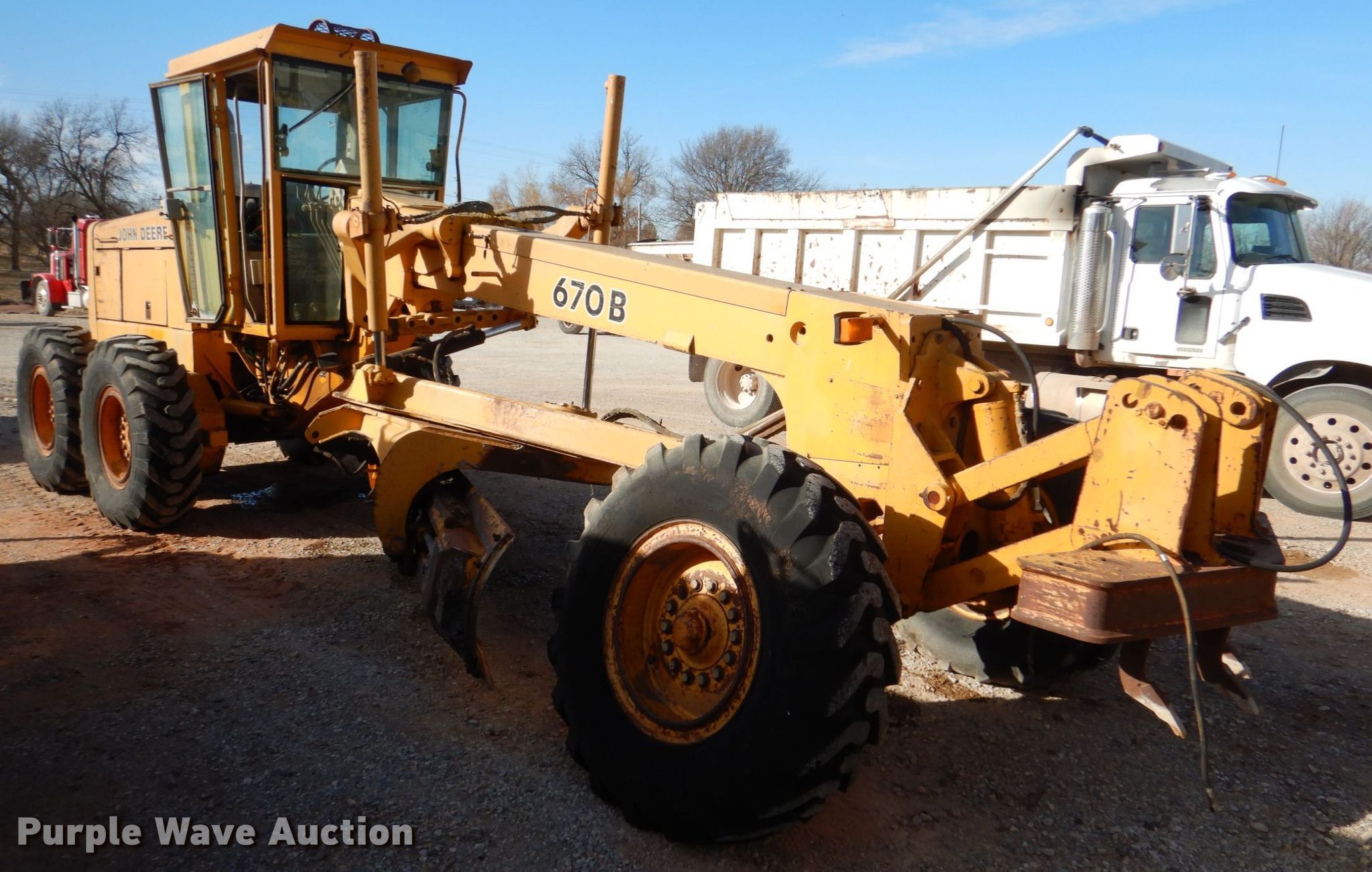 Purple Wave is selling a used Motor Grader in Oklahoma. This item is a 1990 John Deere 670B motor grader with the following: Hours: 500 on meter, Serial: DW670BX527640