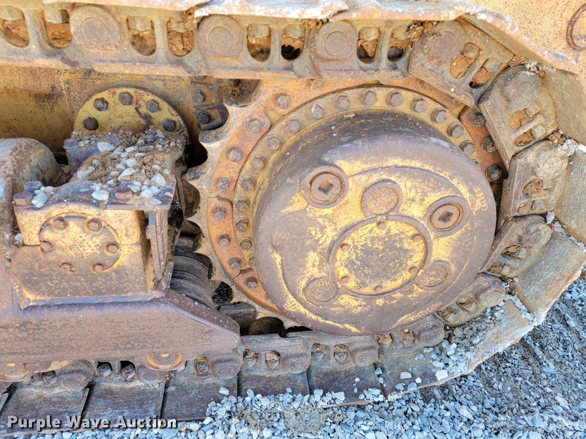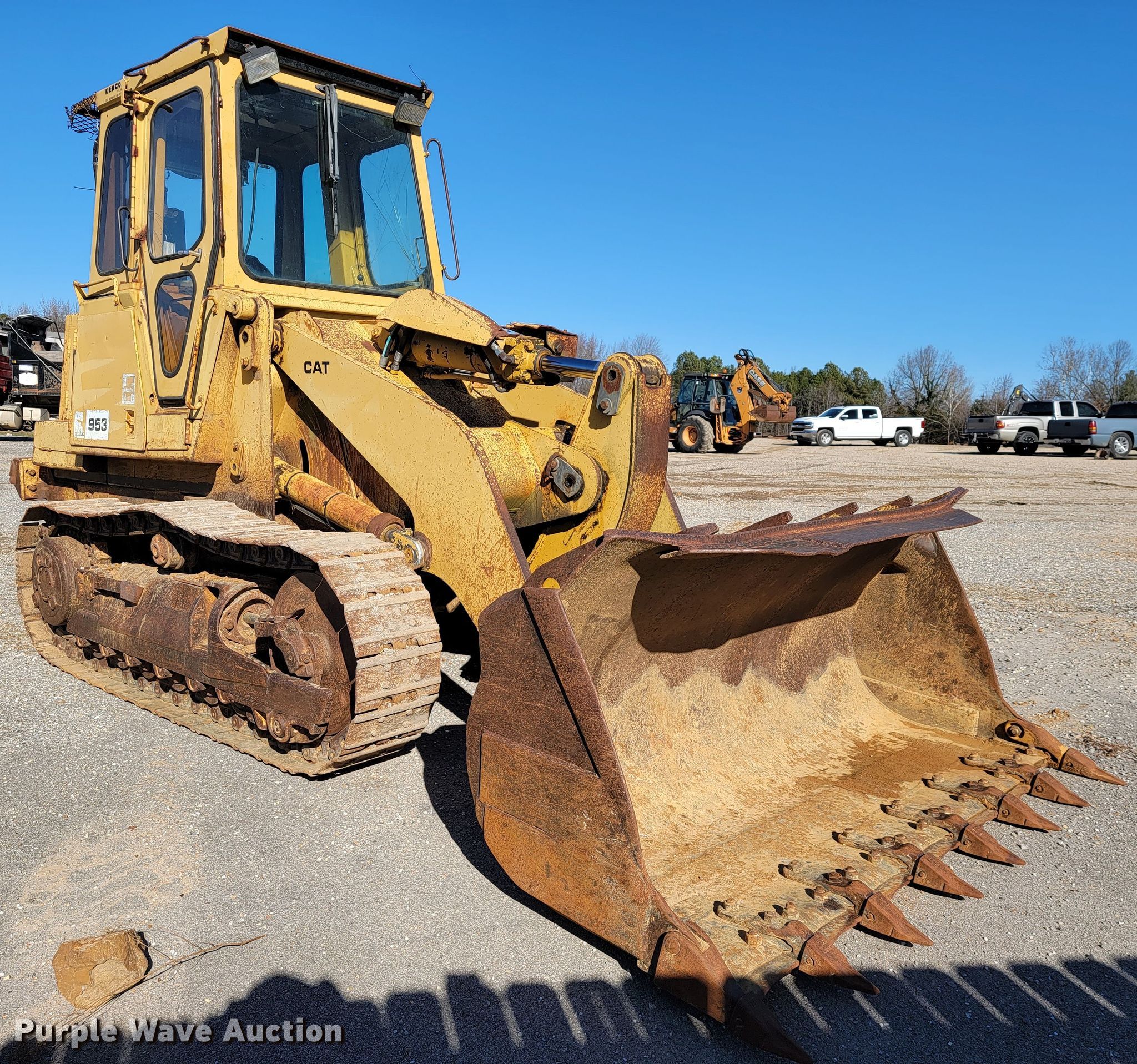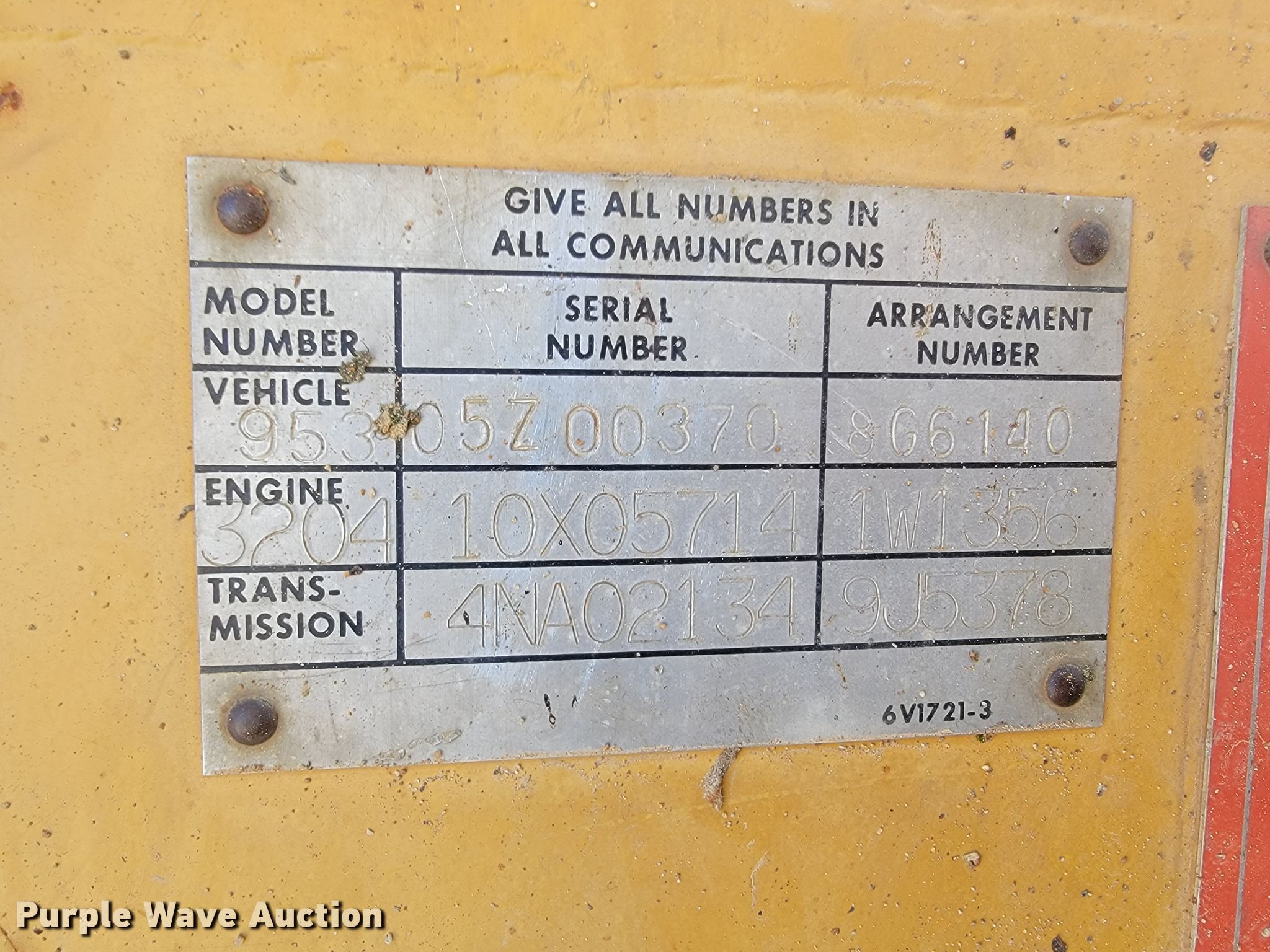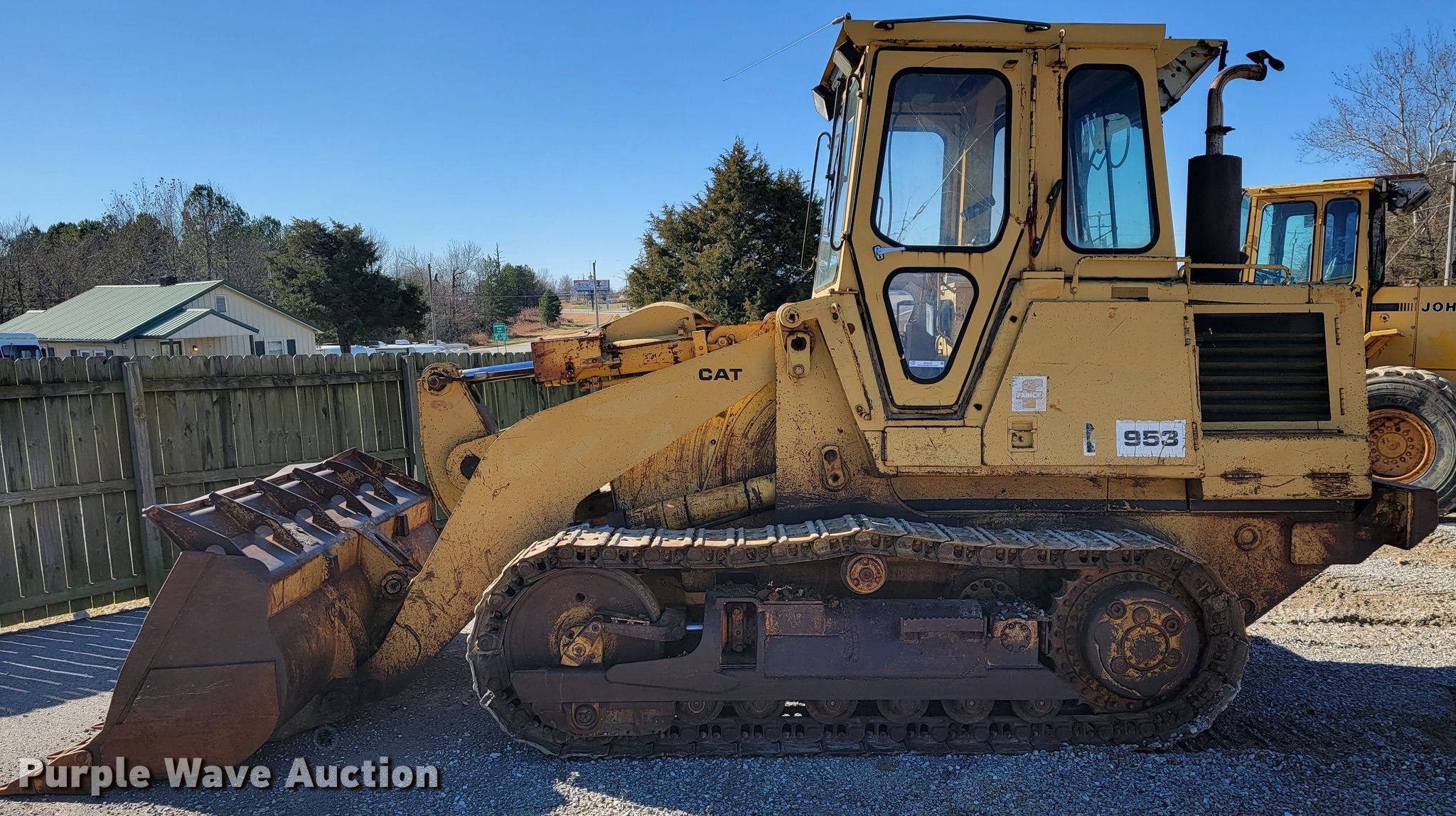 1983 Caterpillar 953 track loader. Hours: 6,928 on meter, Serial: 05Z00370. Engine Cylinders: 4, Fuel type: Diesel. Transmission Hydrostatic. Operators station Enclosed cab, Heat, Bucket controls: Two-lever. Operational Quick coupler: Manual, Bucket Width: 96", Cutting edge: Bolt-on, Teeth: 8. Tracks Width: 16", Grouser pads: Double. Notes Windshield chipped or cracked. Butler County. 31 Butler County Rd. Poplar Bluff, MO 63901