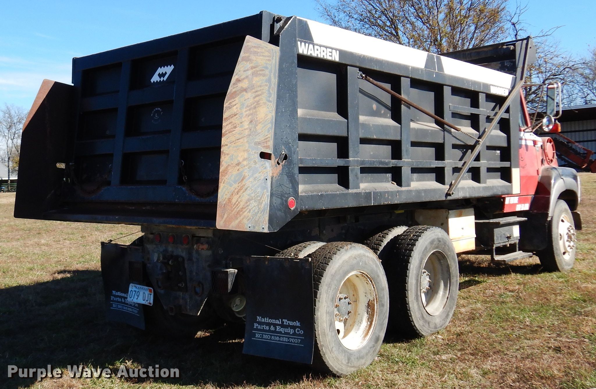 1994 Ford LA9000 dump truck. Miles: 236,737 on odometer, Miles or hours may vary, unit still in use, VIN: 1FTYS95L0RVA28952. Engine Cylinders: 6, Fuel type: Diesel. Transmission Manual, Speed: 9. Chassis Axles: Tandem, Suspension: Spring over walking beam, Brakes: Air, PTO. Interior AC, Heat. Operational Dump bed Warren MSF651-14, Capacity: 15 cu.yd., 14' L x 8' W, Side height: 46", Bed type: Steel, Roll tarp, Ram: Single , End gate: Air operated. Tires Size: 295/75R22.5. Kansas title. Rocking L Ranch. Cedar Vale, KS 67024
