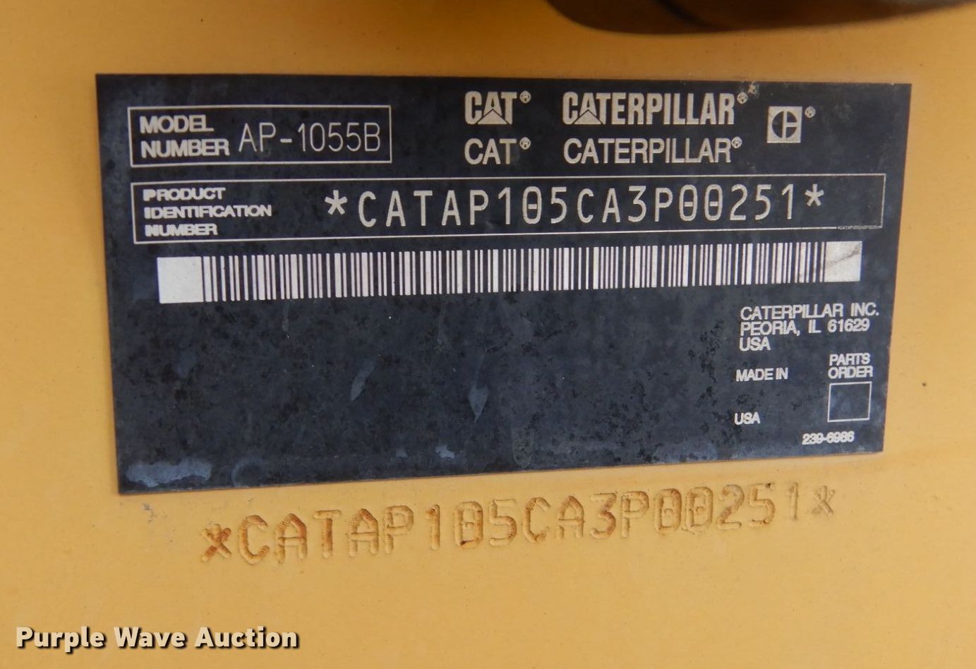 Purple Wave is selling a used Paver or Screed in Missouri. This item is a 2005 Caterpillar AP-1055B paver with the following: Hours: 11,325 on meter, Serial: CATAP105CA3P00251