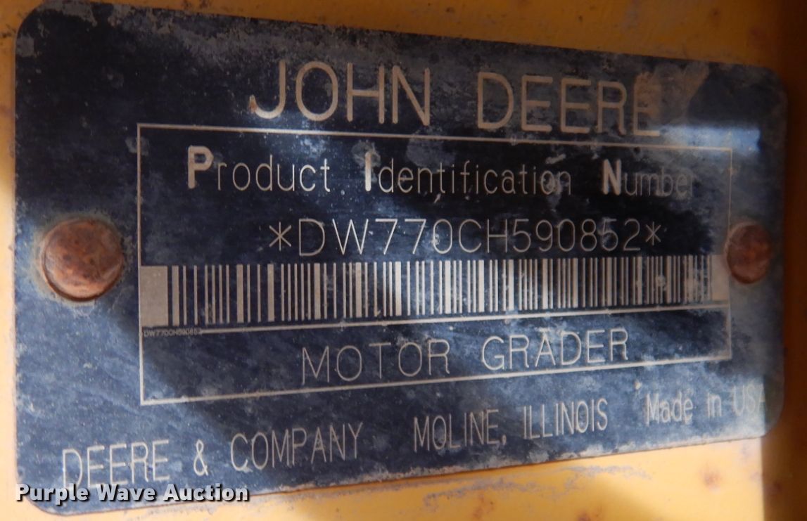 Purple Wave is selling a used Motor Grader in South Dakota. This item is a 2004 John Deere 770CH motor grader with the following: Hours: 13,653 on meter, Serial: DW770CH590852