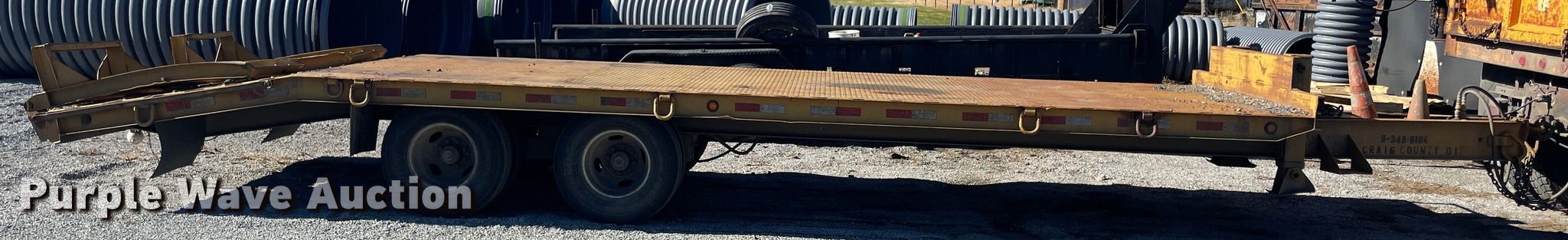 1999 Evaco DO10 equipment trailer. VIN: 1E9DE2028XA187069. Dimensions Overall: 31' 6" L x 8' W, Deck: 20' L, Tail length: 5' 6", Ramps: Manual Length: 4' 8". Operational Deck type: Steel. Chassis Hitch: Pintle, Landing gear: Dual, Two speed, Suspension: Spring, Brakes: Air, Axles: Tandem. Tires Size: ST235/85R16. Notes Chains and boomers not included. Oklahoma title. Title distribution may be delayed up to 14 days from verification of funds. Craig County District 1. 210 W Delaware Ave, Suite 106. Vinita, OK 74301