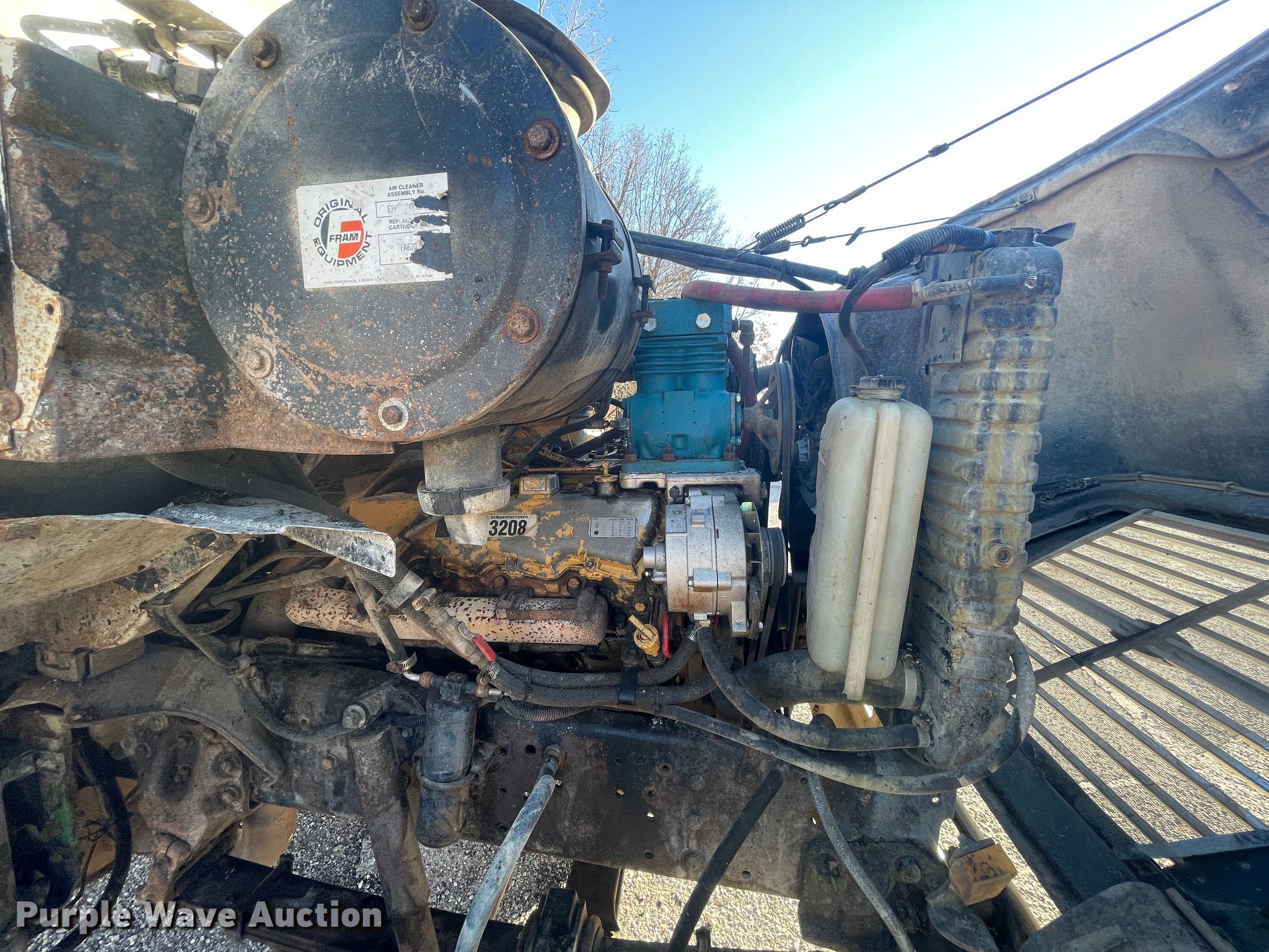 1983 Ford L8000 dump truck. Miles: 567,281 on odometer, VIN: 1FDYW80U9DVA32940. Engine Caterpillar 3208, Displacement: 10.4L, Cylinders: 8, Fuel type: Diesel. Transmission Manual, Speed: 13. Chassis Axles: Tandem, Differential lock: Inter-axle, Suspension: Spring, Brakes: Hydraulic, GVWR: 50,000 lbs, Wheelbase: 186". Interior Heat. Operational Dump bed 14' x 8' W, Side height: 44", Bed type: Steel, Roll tarp, Ram: Single , End gate: Manual. Tires Front: 385/65R22.5, Rear: 11R22.5. Notes Windshield chipped or cracked, Non-operational roll tarp. Missouri title. Seneca Special Road District. 17194 Falcon Rd. Neosho, MO 64850