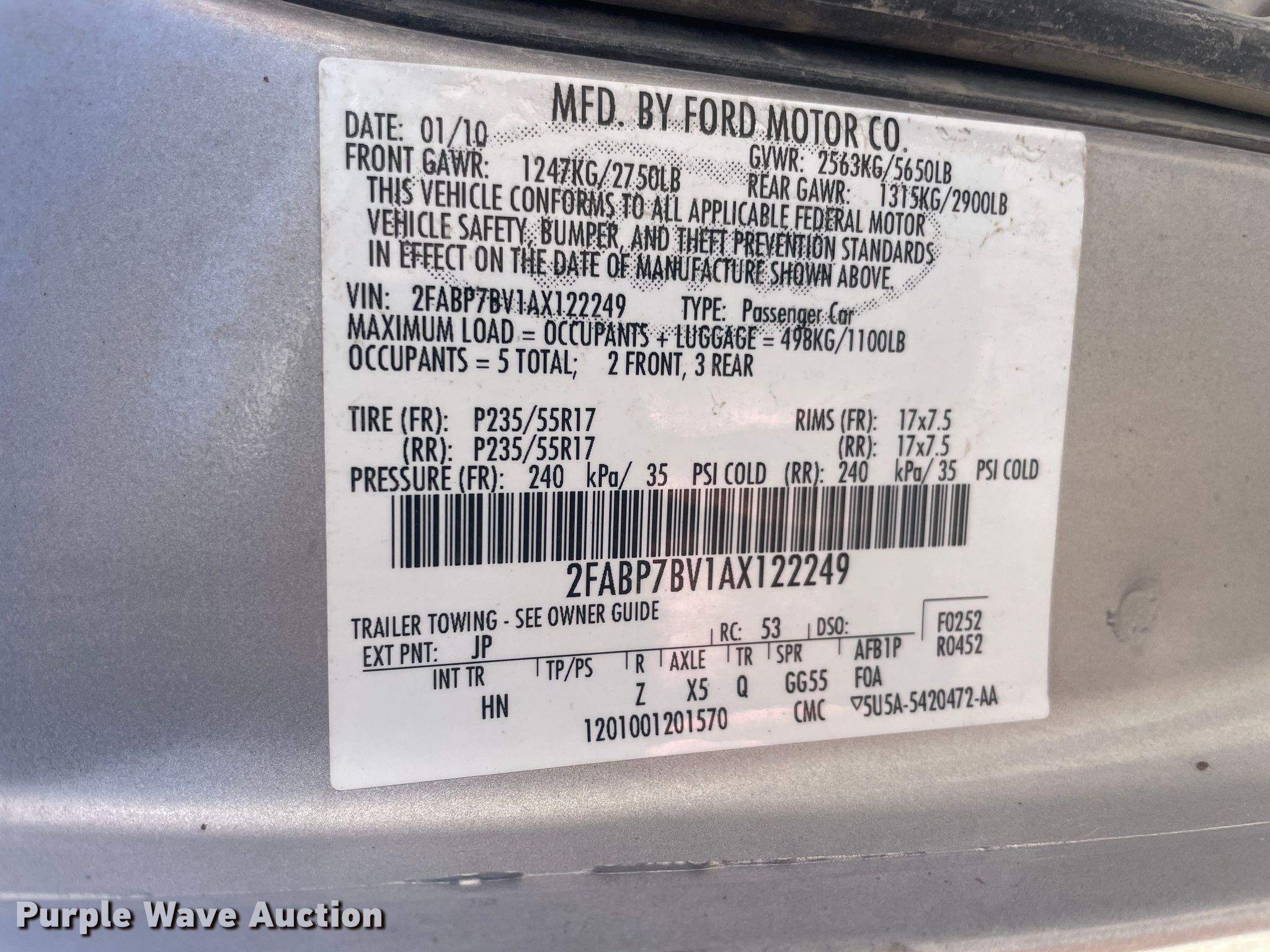 - VIN: 2FABP7BV1AX122249