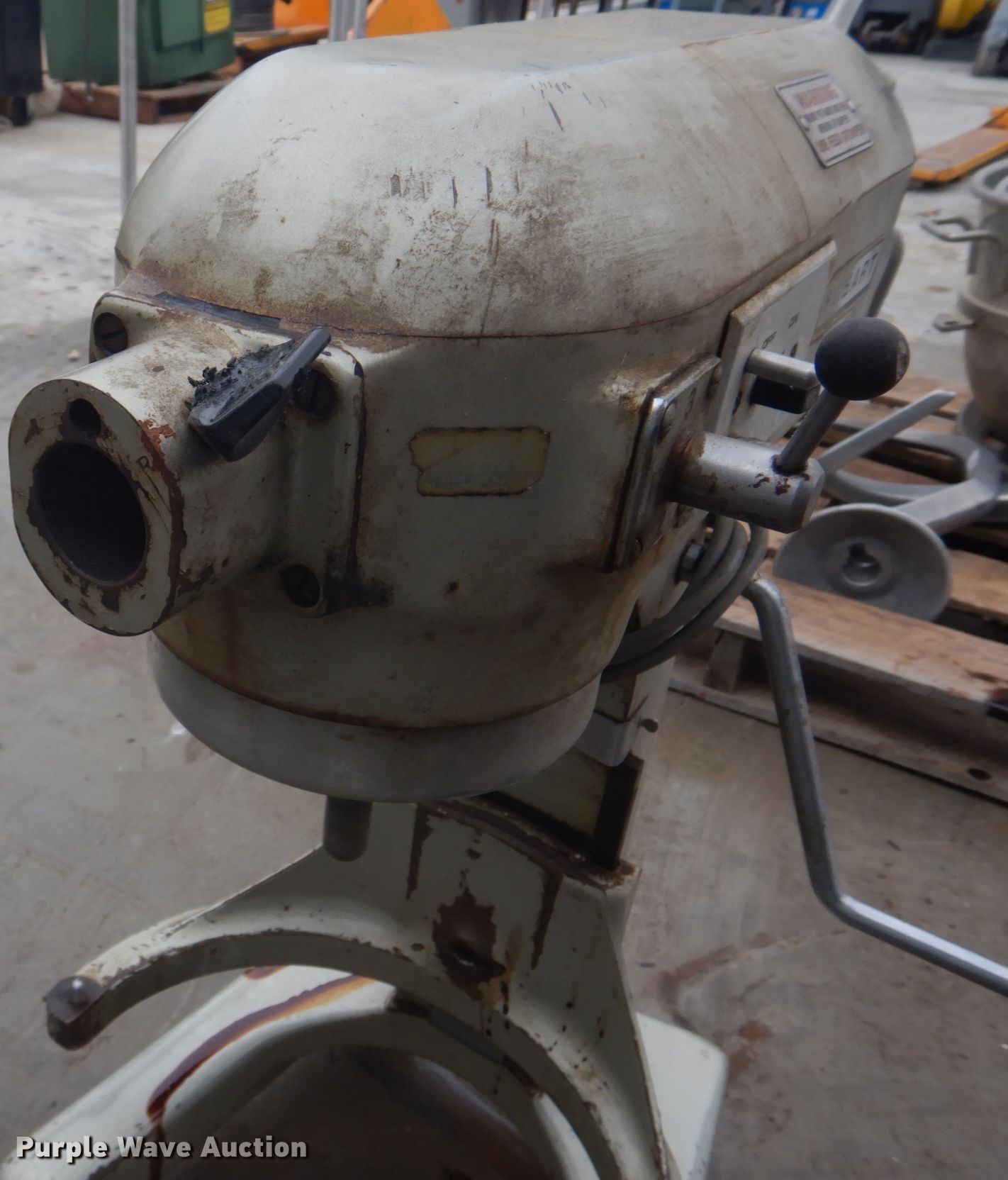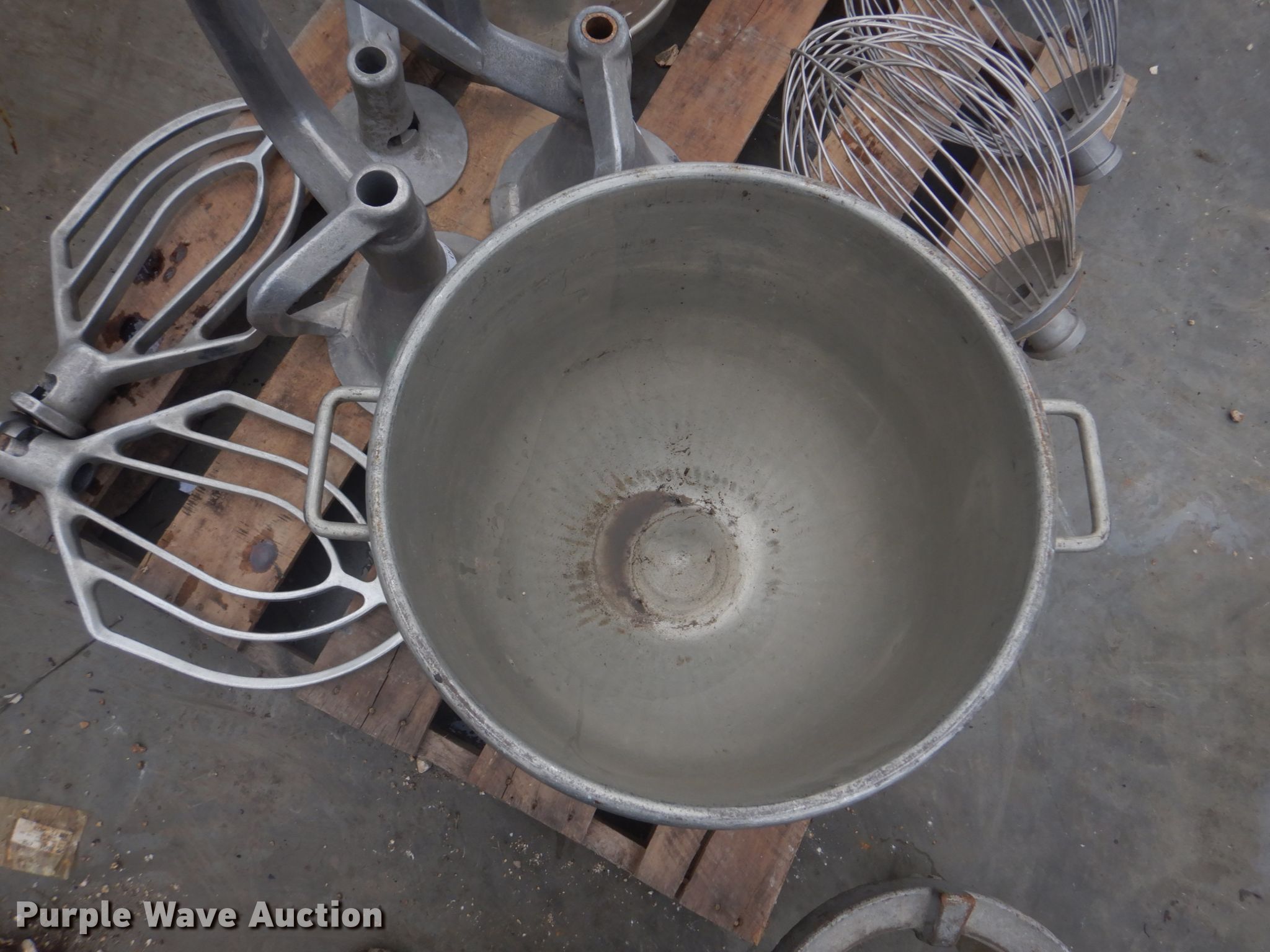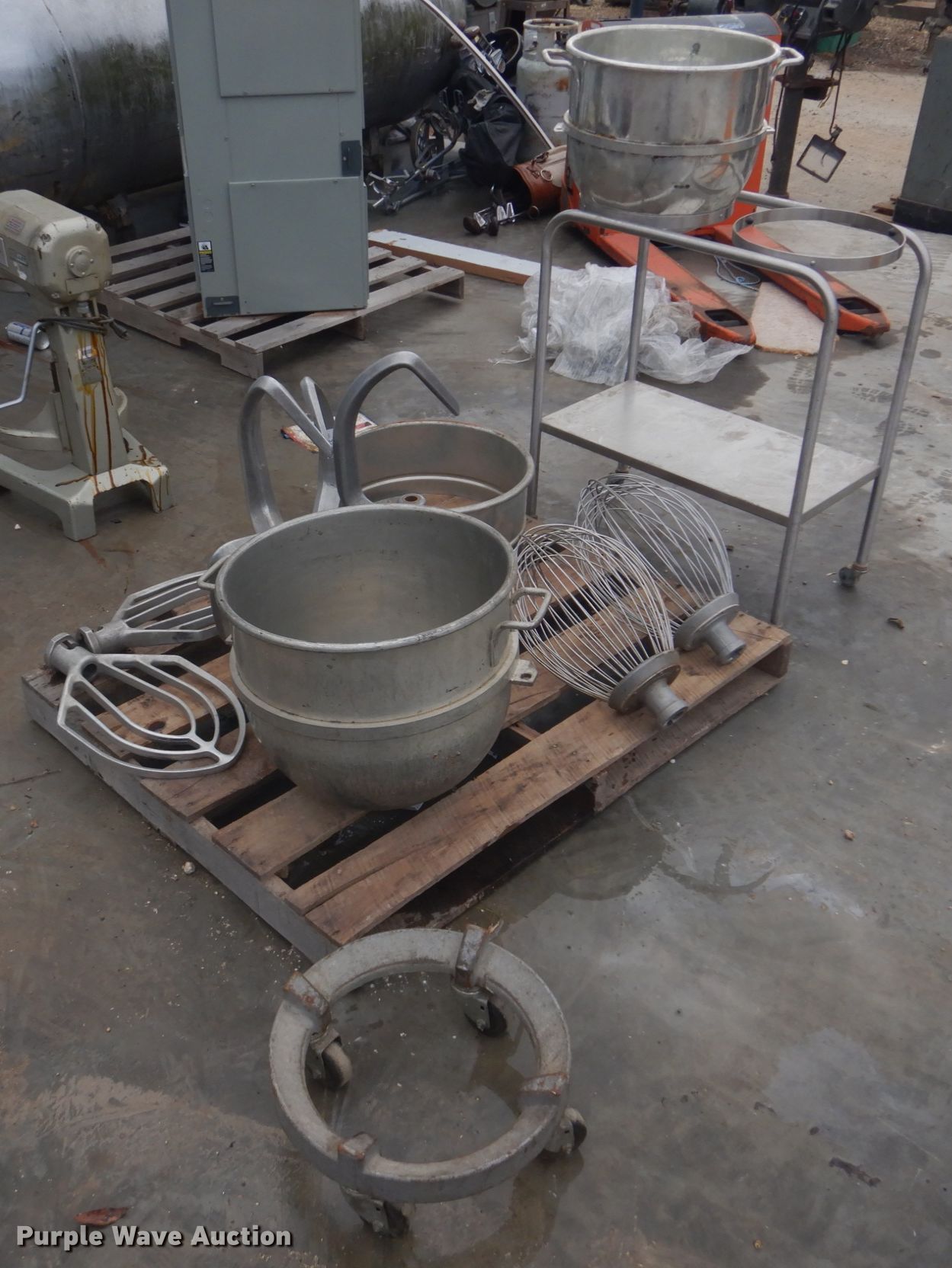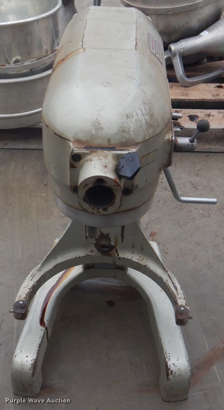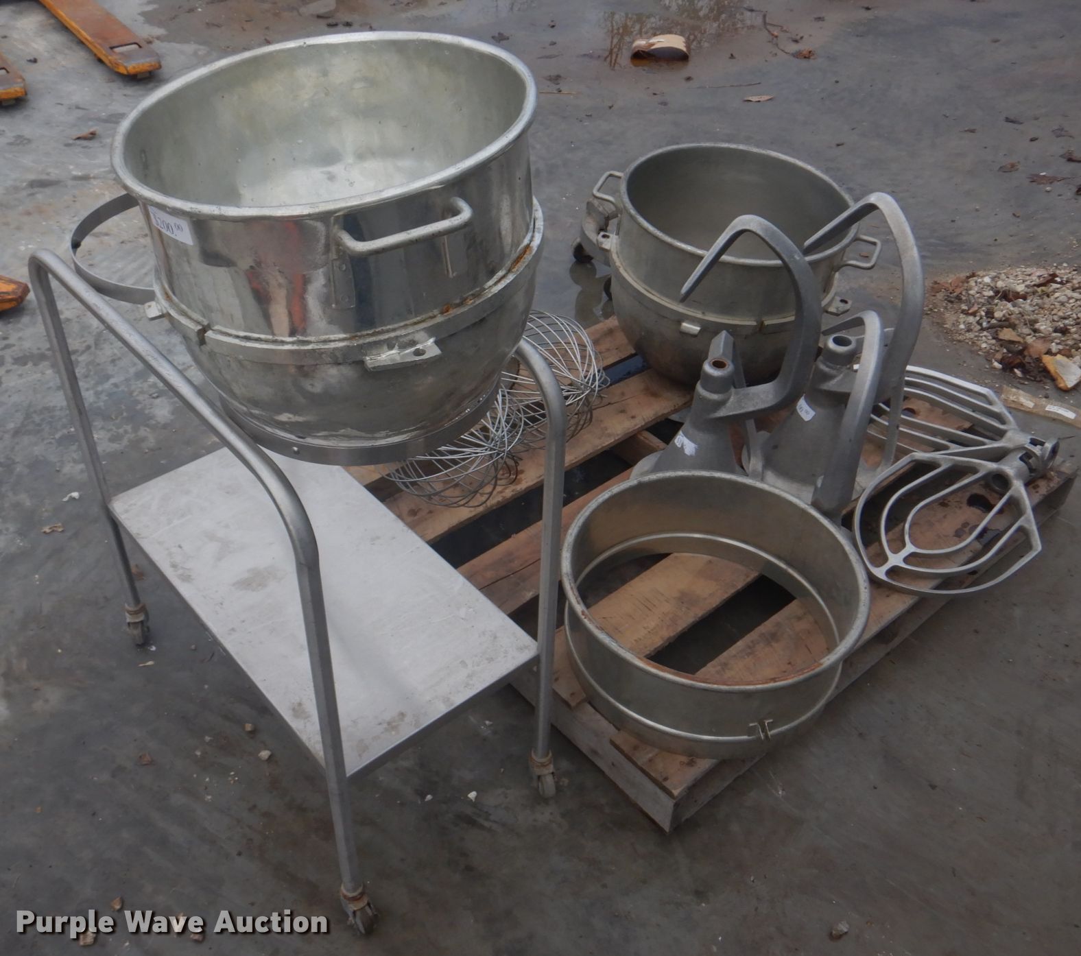 Purple Wave is selling a used Restaurant Equip. in Missouri. This item is a Restaurant equipment with the following: (3) mixers, Hobart L-800, 208V, Three phase, 1.5 HP, Serial: 1667006, Hobart A-200, 115V, Single phase, 1/3 HP, Serial: 11294146, Blakeslee B-20T, 120V, Single phase, 1/2 HP, Serial: 2-20723-1GCB,, Mixer attachments, (2) mixer bowls, True TUC-60 refrigerator, 60"W x 30"D x 33"H, (2) stainless steel cabinets, One with keys, Unknown operating condition