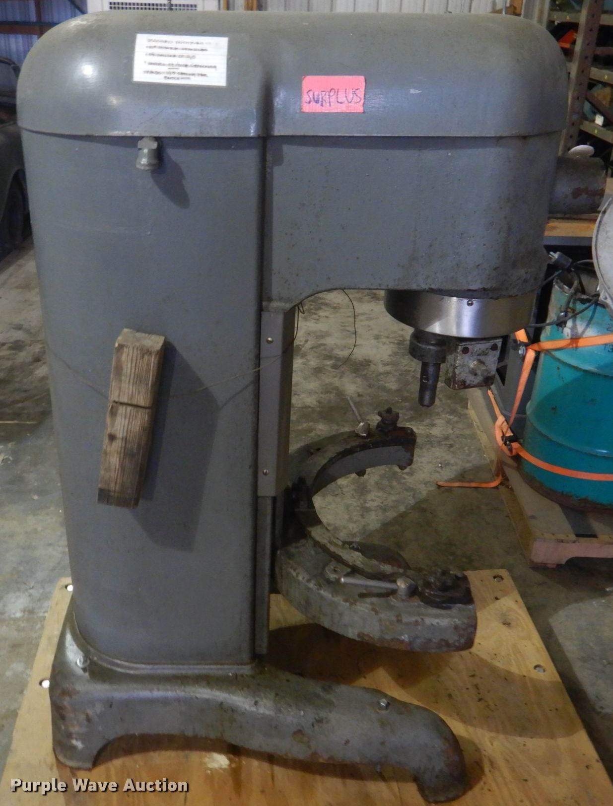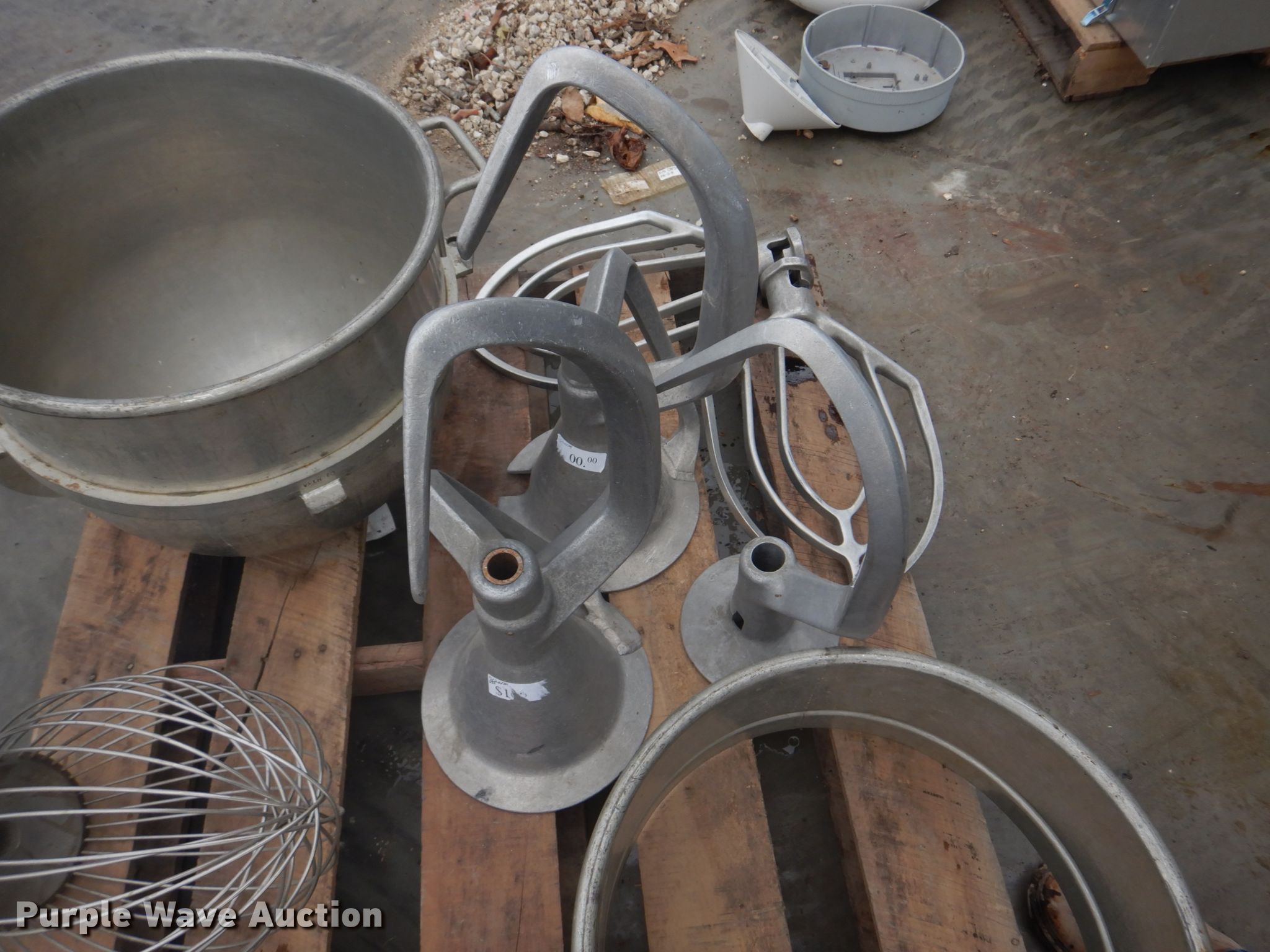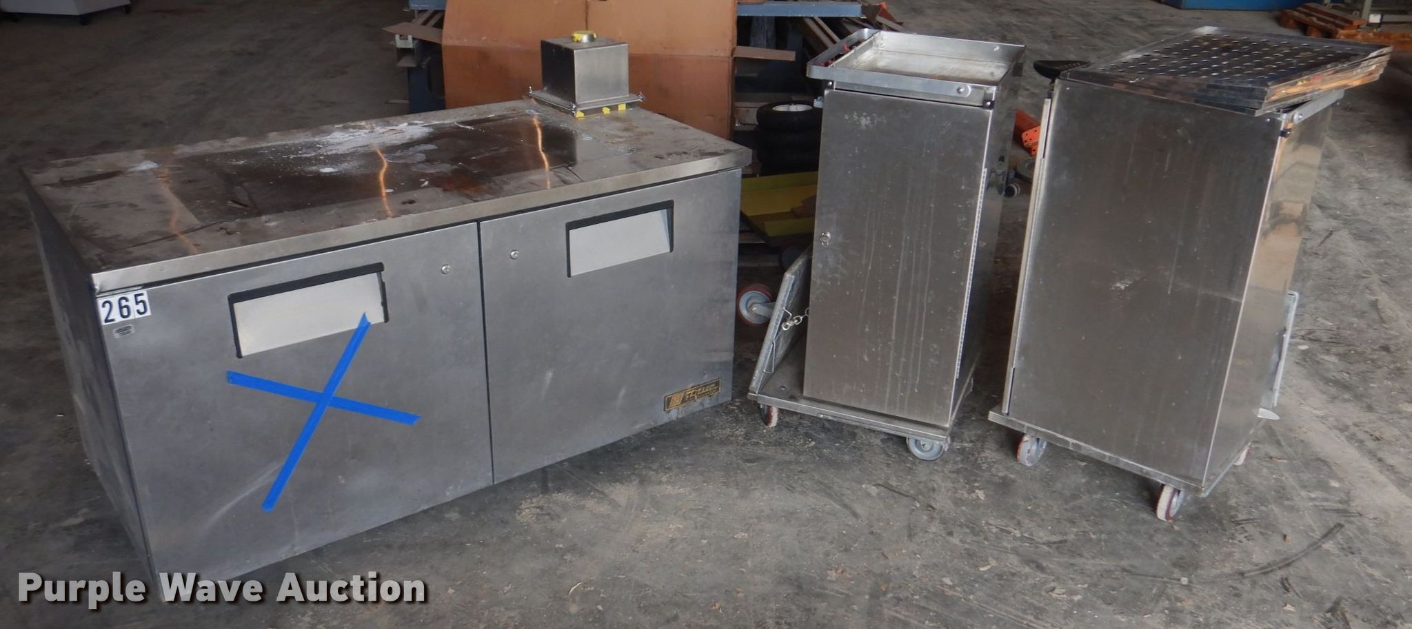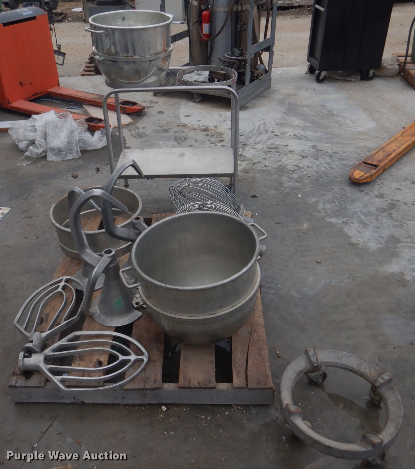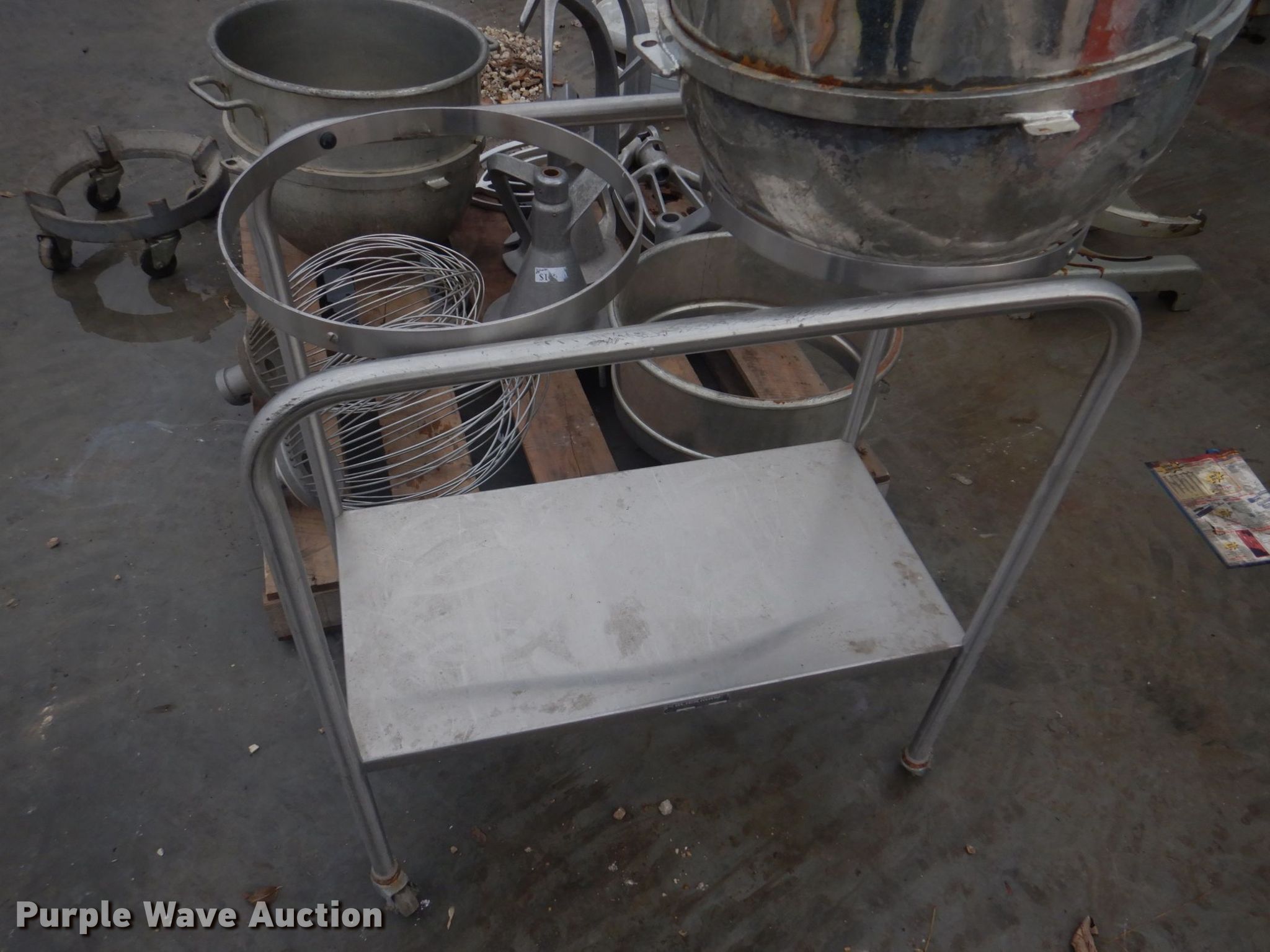 Purple Wave is selling a used Restaurant Equip. in Missouri. This item is a Restaurant equipment with the following: (3) mixers, Hobart L-800, 208V, Three phase, 1.5 HP, Serial: 1667006, Hobart A-200, 115V, Single phase, 1/3 HP, Serial: 11294146, Blakeslee B-20T, 120V, Single phase, 1/2 HP, Serial: 2-20723-1GCB,, Mixer attachments, (2) mixer bowls, True TUC-60 refrigerator, 60"W x 30"D x 33"H, (2) stainless steel cabinets, One with keys, Unknown operating condition