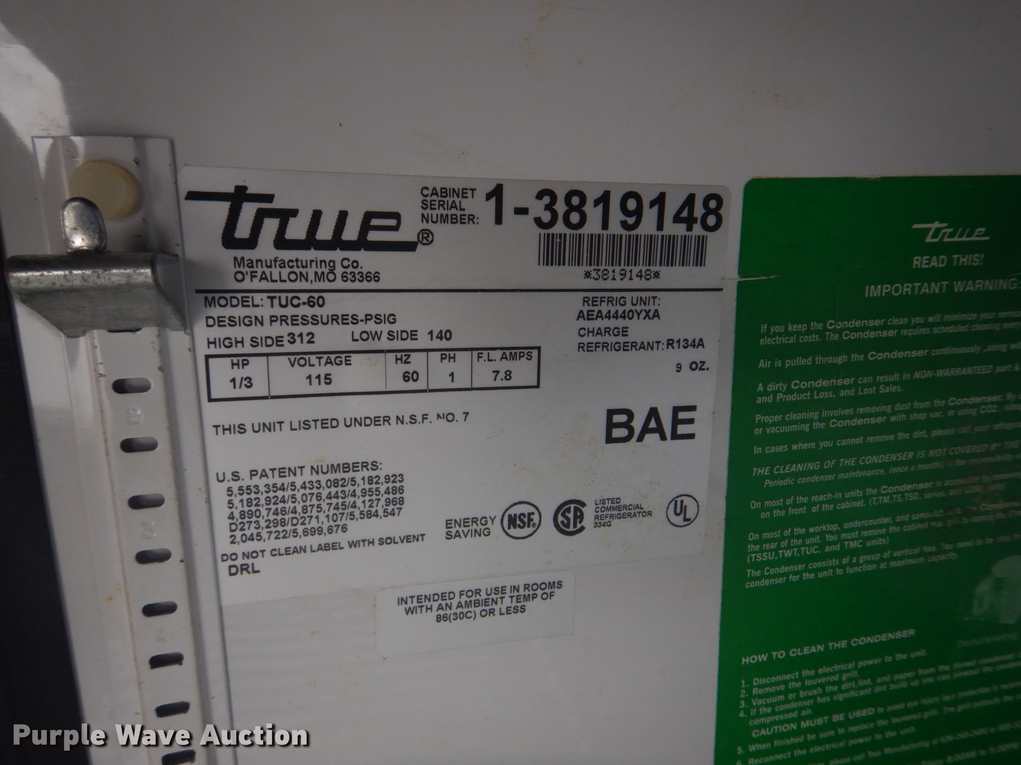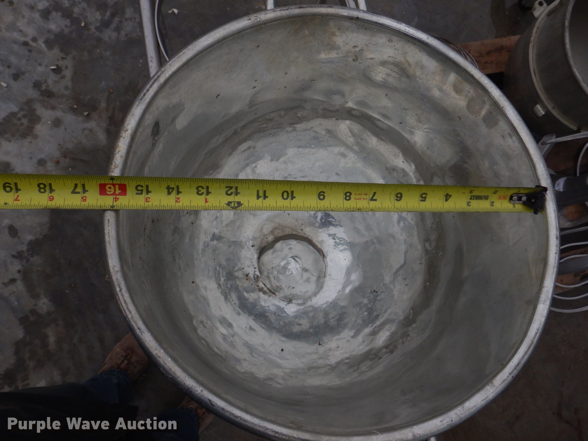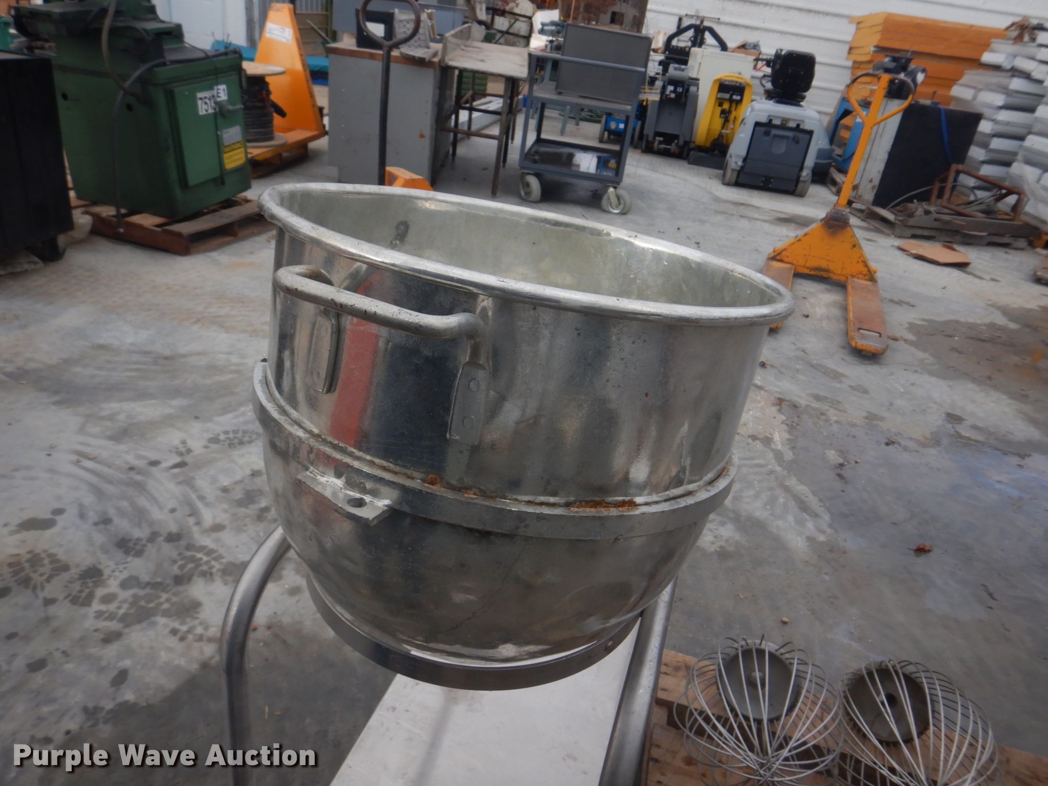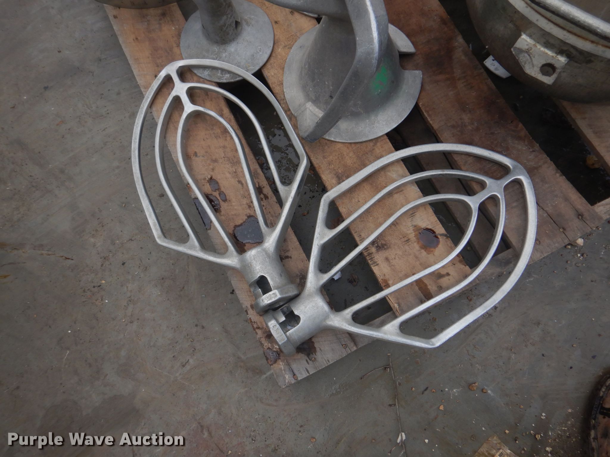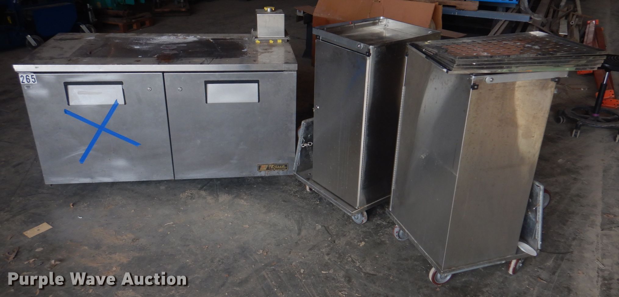 Purple Wave is selling a used Restaurant Equip. in Missouri. This item is a Restaurant equipment with the following: (3) mixers, Hobart L-800, 208V, Three phase, 1.5 HP, Serial: 1667006, Hobart A-200, 115V, Single phase, 1/3 HP, Serial: 11294146, Blakeslee B-20T, 120V, Single phase, 1/2 HP, Serial: 2-20723-1GCB,, Mixer attachments, (2) mixer bowls, True TUC-60 refrigerator, 60"W x 30"D x 33"H, (2) stainless steel cabinets, One with keys, Unknown operating condition