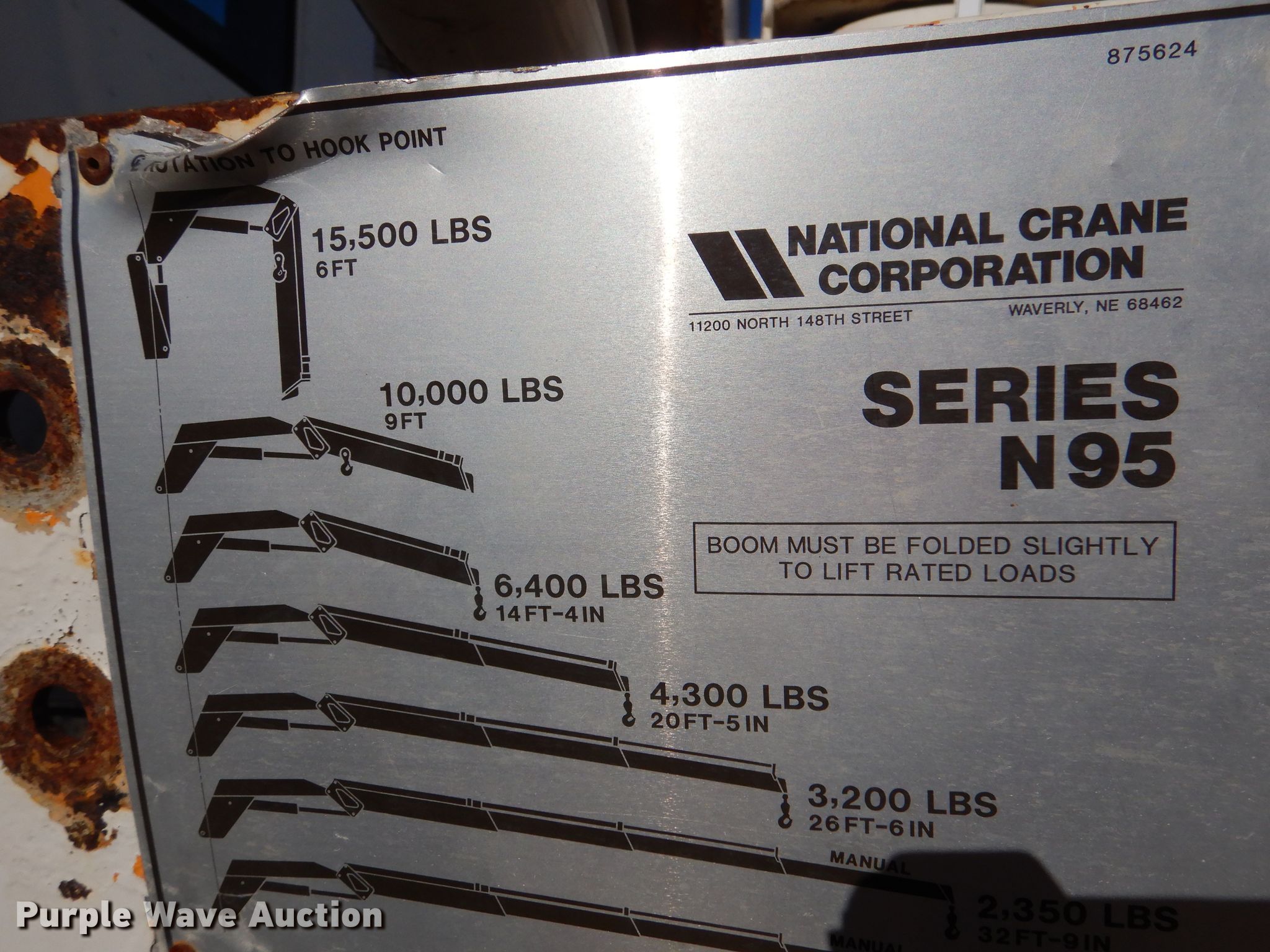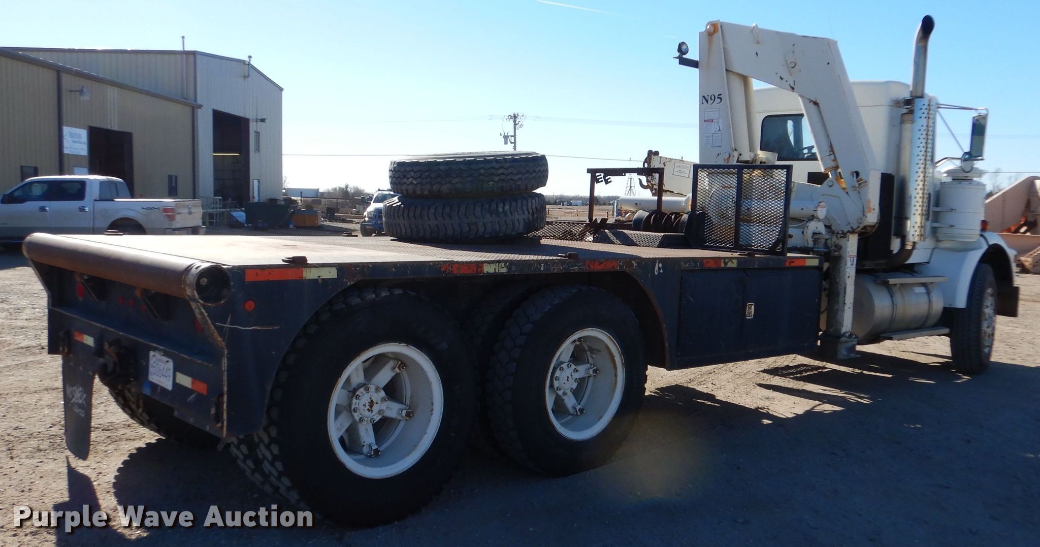 1994 Kenworth T800 crane truck. Miles: 46,450 on odometer, Hours: 9,117 on meter, VIN: 1NKDX6TX6RJ616252. Engine Cummins N14, Displacement: 14.0L, Cylinders: 6, Fuel type: Diesel, Engine brake. Transmission Automatic. Chassis Axles: Tandem, Suspension: Spring over walking beam, Brakes: Air, PTO. Interior AC, Heat, Heated mirrors. Operational Flatbed 17' L x 102" W, Crane National Crane Corporation N95 Serial: 22991, Boom Knuckle, Maximum lift capacity: 15,500 lbs, Boom controls Ground, Lift chart. Tires Size: 12.00R24. Kansas e-title. Title has a lien that will be released following the close of the auction. Title distribution may be delayed up to 30 days from verification of funds. High Plains Machine LLC. 2335 E 7th St. Hays, KS 67601
