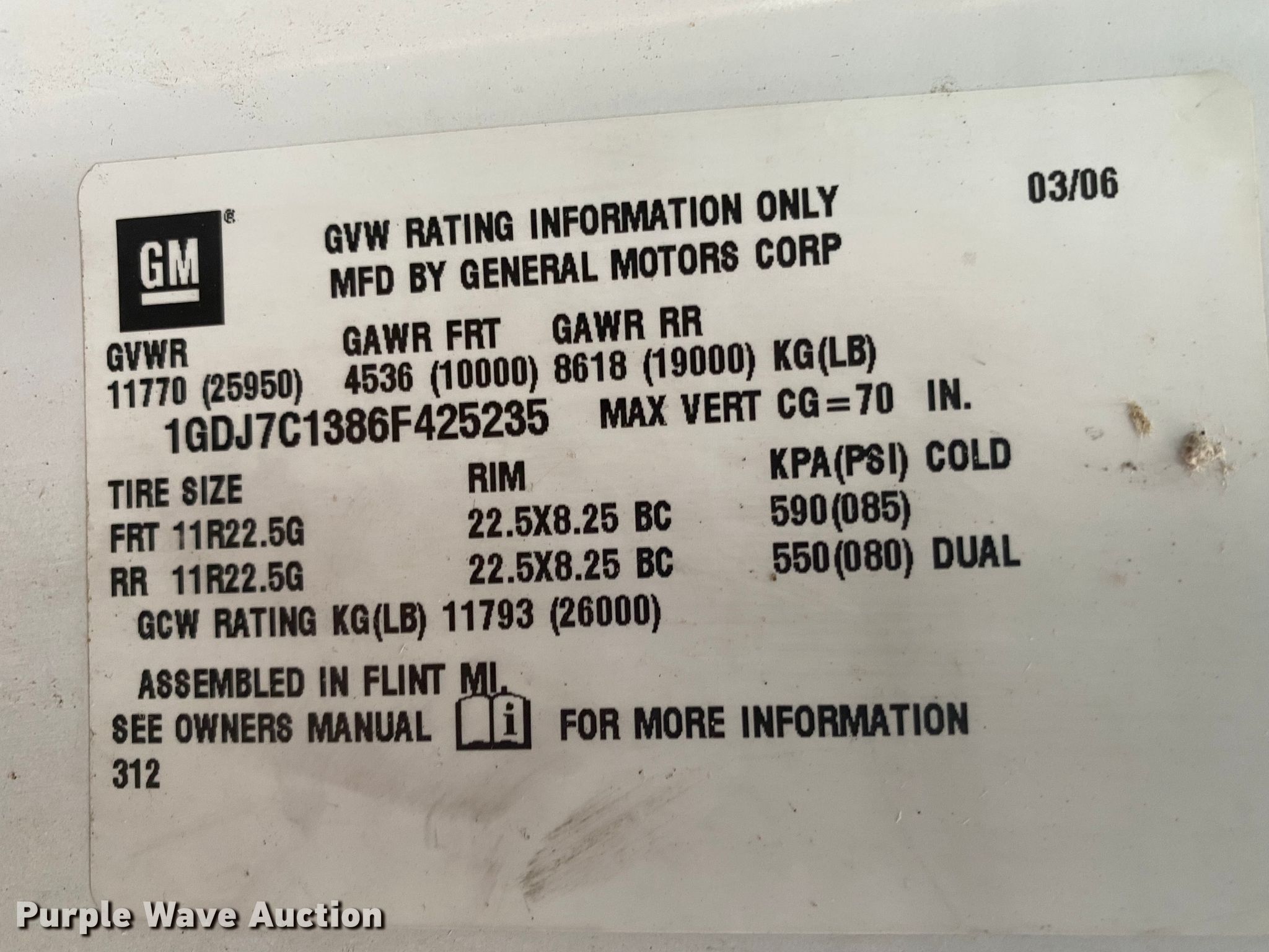 - VIN: 1GDJ7C1386F425235