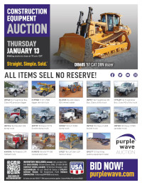 Equipment descriptions are based on our direct observation and information provided by our selling customer. All information is intended to be as accurate as possible. However, we recommend customers inspect prior to bidding. Purple Wave listings are not intended to be substitutions for inspection. The details provided may differ on equipment based on information provided by the consignor. An error or omission in the listing will not change the results of the bid. It is the responsibility of the buyer to conduct any inspection and examination necessary to satisfy him of all material facts before placing a bid. Some of the limitations of Purple Wave listings include:
