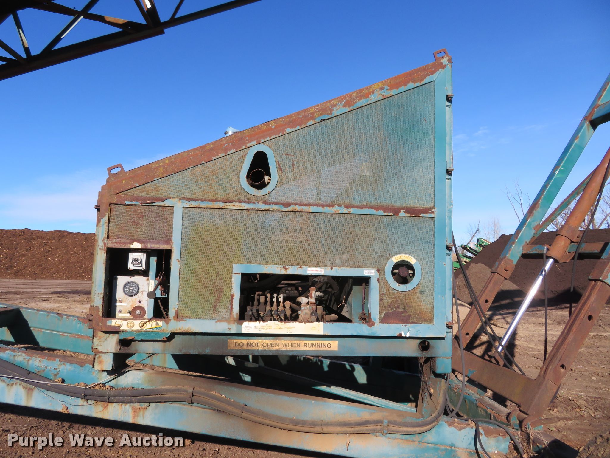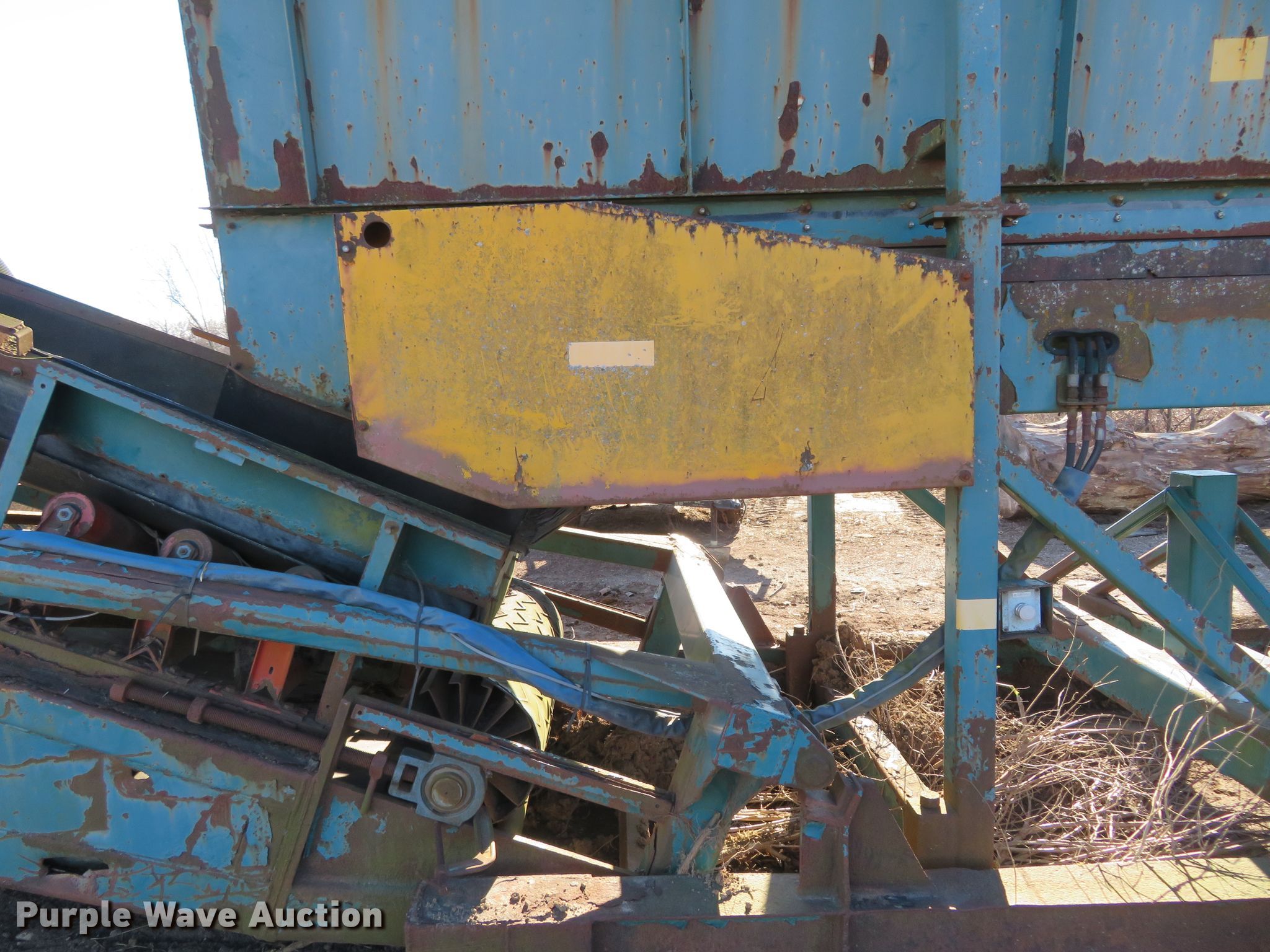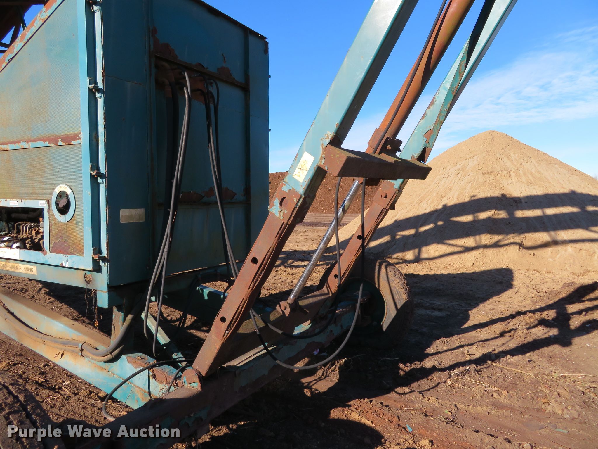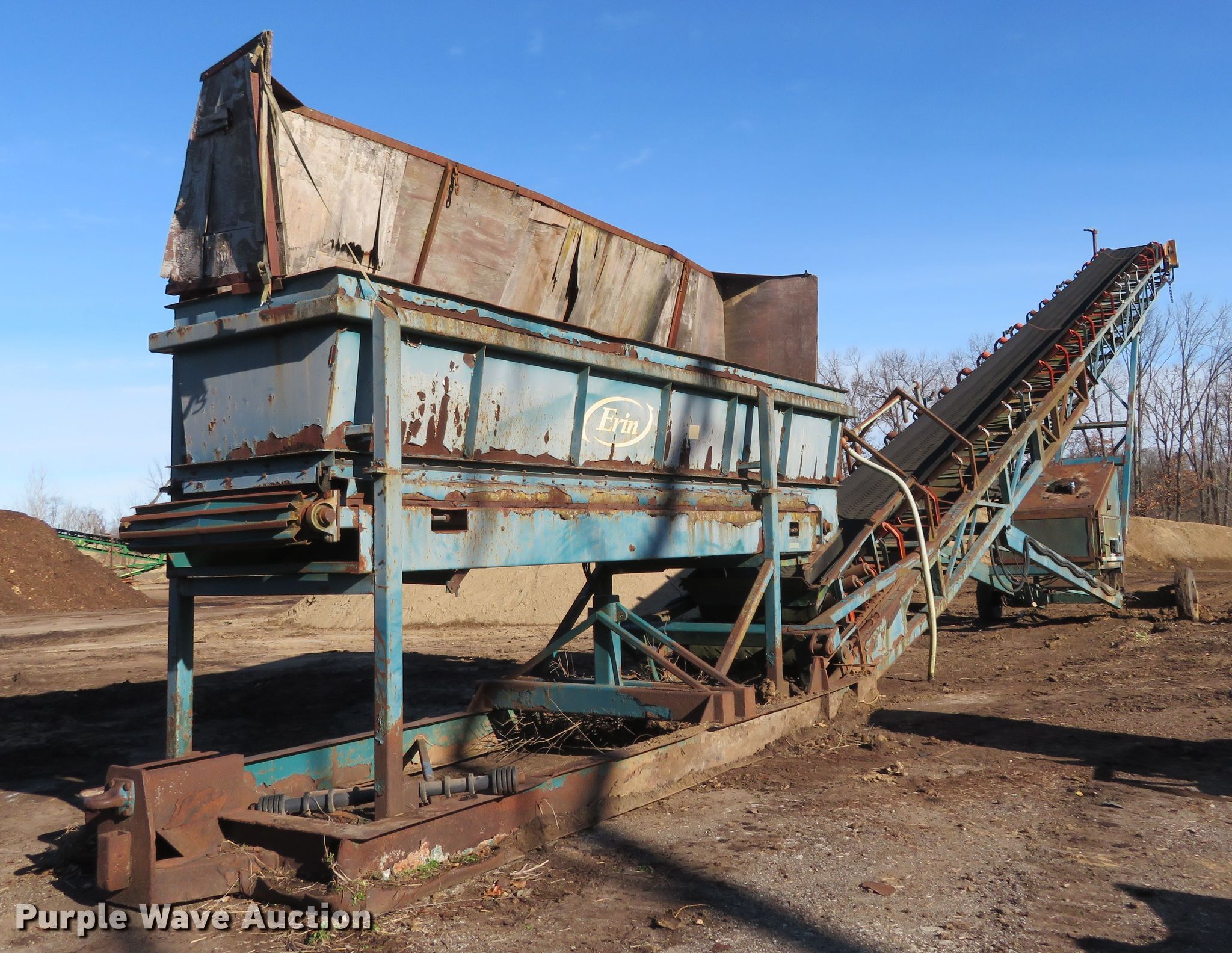 Erin radial stacking conveyor. Serial: 00-066. Engine Caterpillar, Cylinders: 4, Fuel type: Diesel. Operational Conveyor Length: 80', Width: 46", Hydraulic lift, Erin input hopper Length: 20', Width: 50", Serial: 00-082, Erin hydraulic power pack Serial: 00-066. Tires Tire size: 11R22.5. Notes Unknown operating condition. St. Louis Composting. Florissant, MO 63034