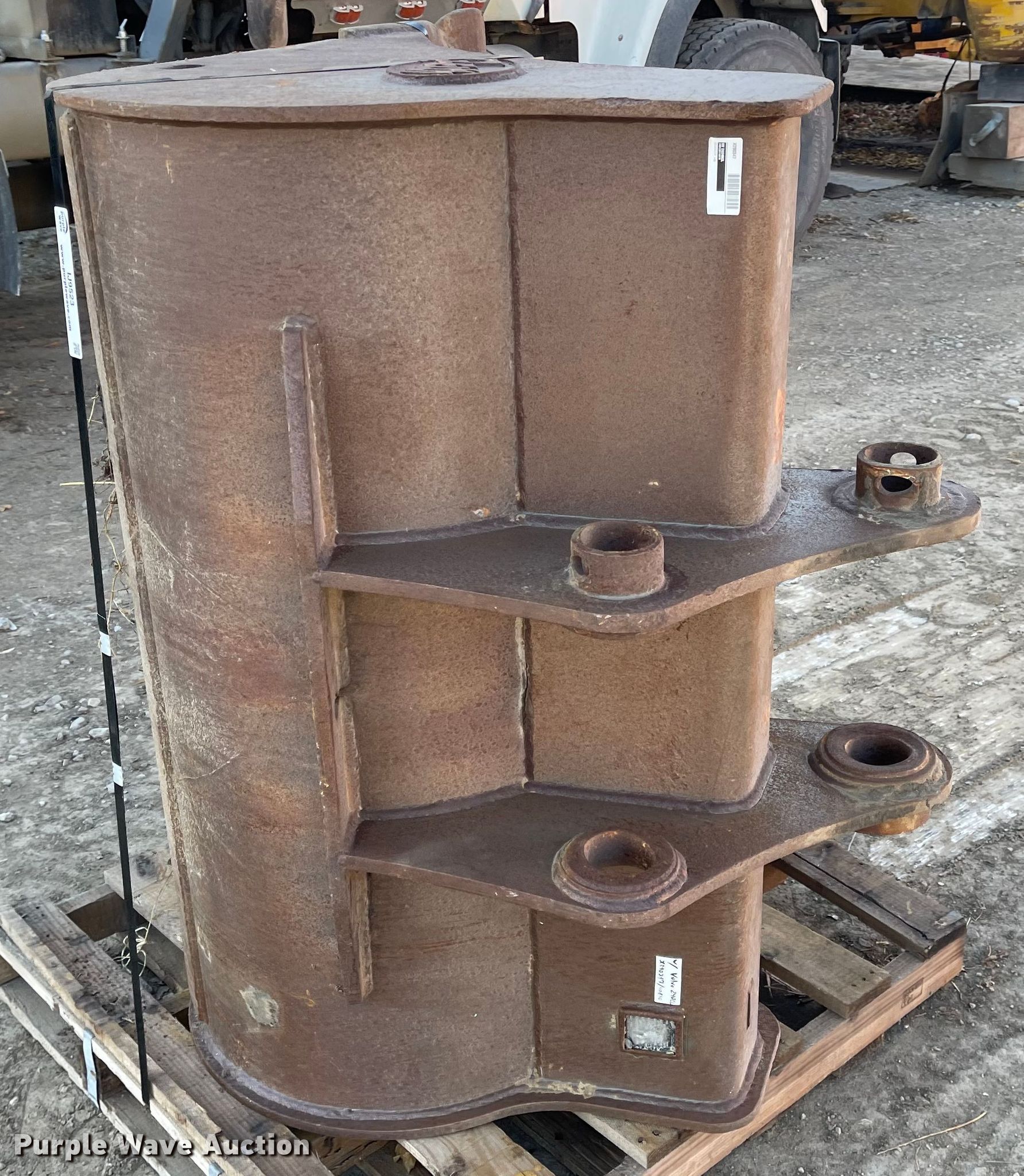 Purple Wave is selling a used Excavator Attach. in Iowa. This item is a 48"W excavator bucket with the following: Cutting edge: Bolt-on, Holes in bottom, Removed from Volvo EC240 excavator