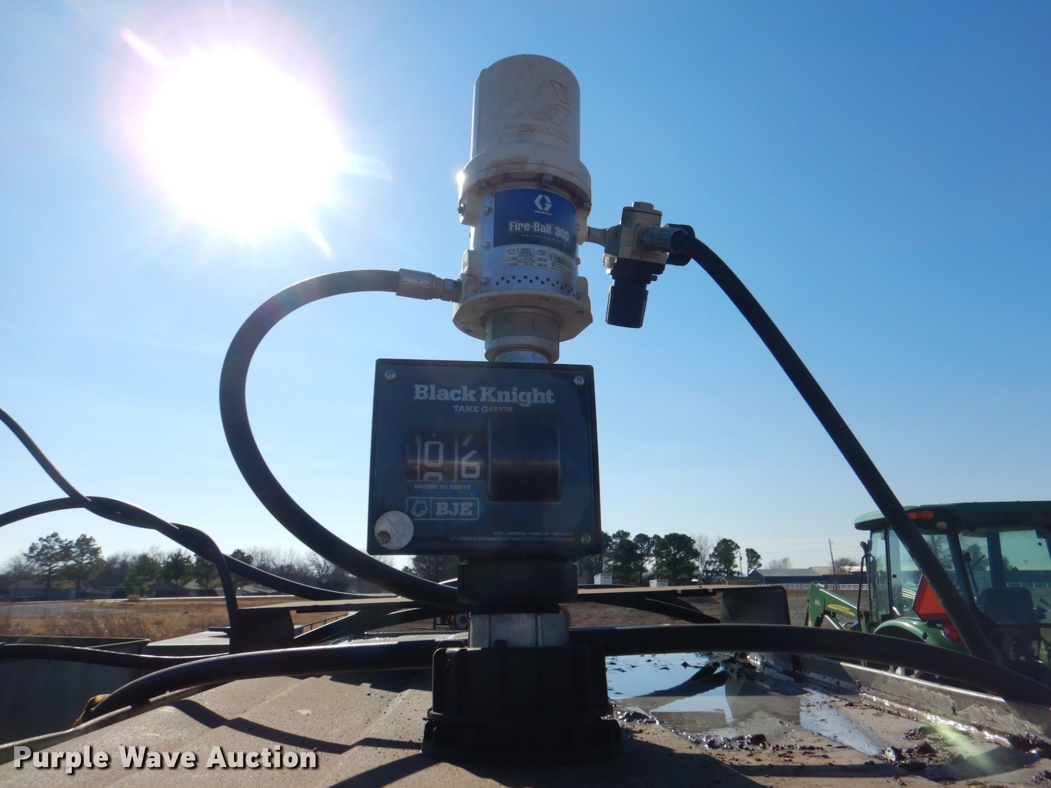 2018 Roth oil tank. Serial: 0851805506917, 62" x 30" x 68.5", Capacity: 400 gallons, Fire-Ball 300 pneumatic pump, Graco nozzle. BNB Industries. Wynnewood, OK 73098