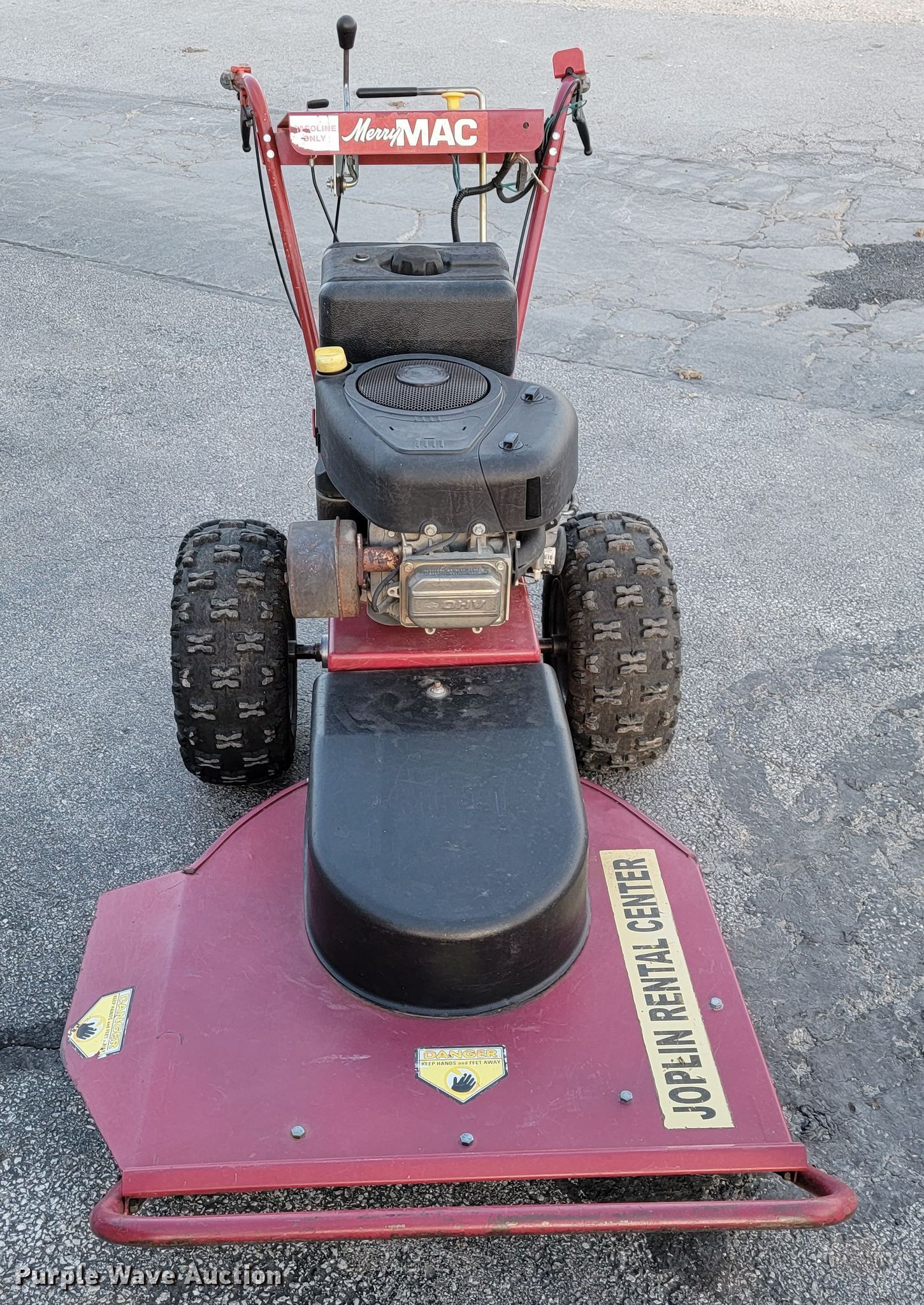 Purple Wave is selling a used Brush Mower in Missouri. This item is a MerryMac brush mower with the following: Width: 28", Single cylinder gas engine, Tires: 18x6.50-8