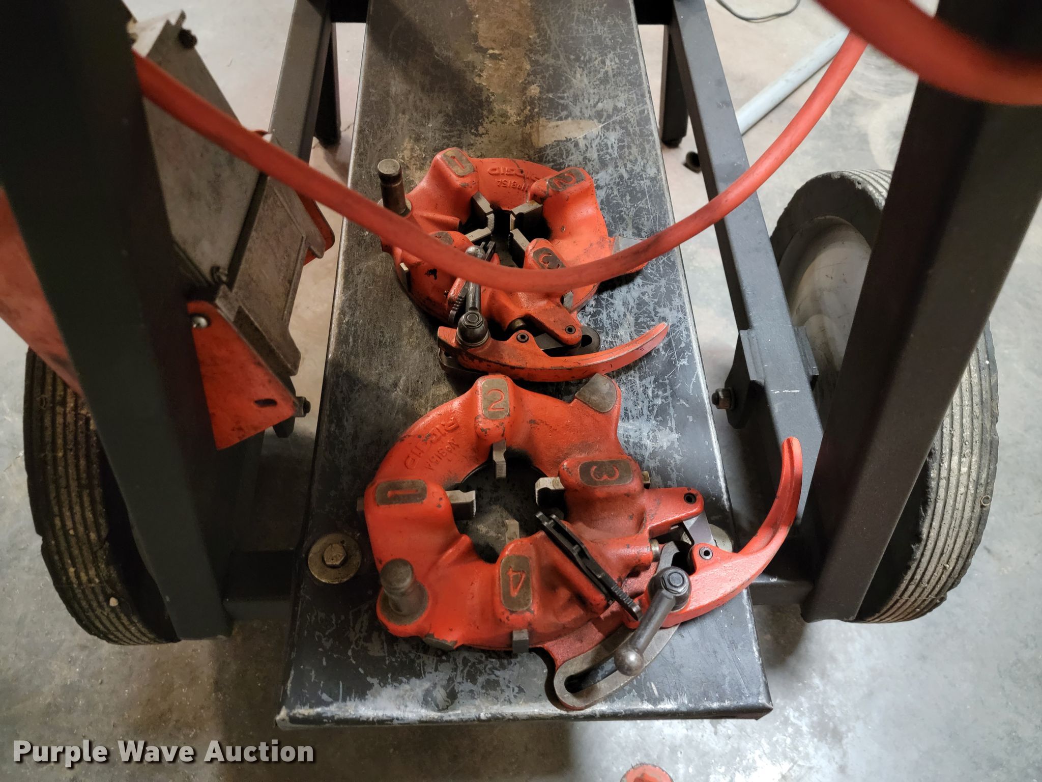 Purple Wave is selling a used Tools in Missouri. This item is a Ridgid 1822-I pipe threader with the following: Single phase, Foot control, (4) adjustment dies, Unit #: 1026