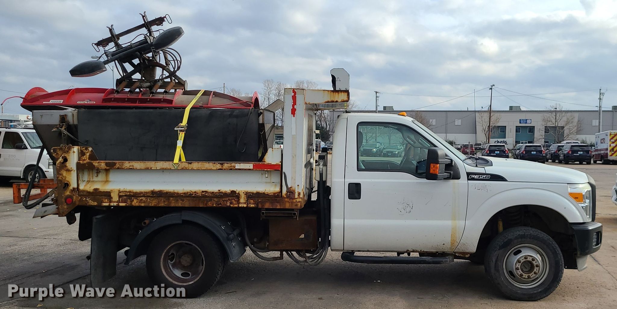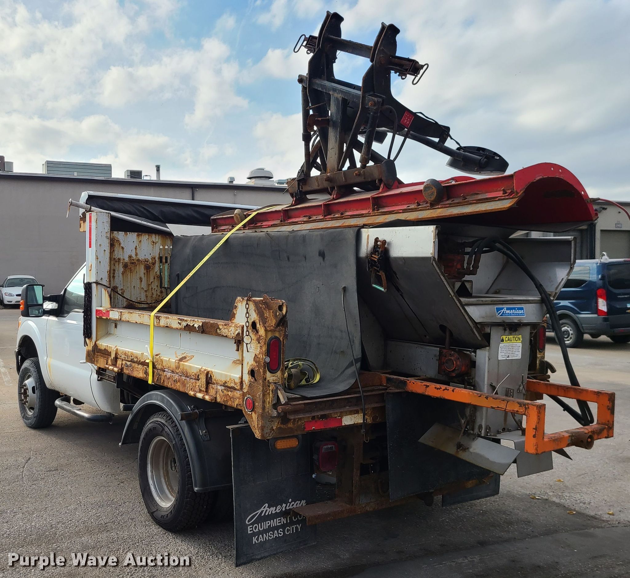 2011 Ford F350 Super Duty dump bed pickup truck. Miles: 103,146 on odometer, VIN: 1FDRF3H65BEB46945, Unit #: 4080. Engine Displacement: 6.2L V8 OHV 16V, Cylinders: 8, Fuel type: Gas. Transmission Automatic, Four wheel drive. Interior AC, Heat, Power windows, Power locks, Cruise control. Operational Dump bed 8' L x 96" W, Spreader American, Snow plow Width: 9'. Tires Size: 245/75R17. Notes Dash warning indicator: Air bag. Missouri title. City of Kansas City. 5304 Municipal Ave. Kansas City, MO 64120