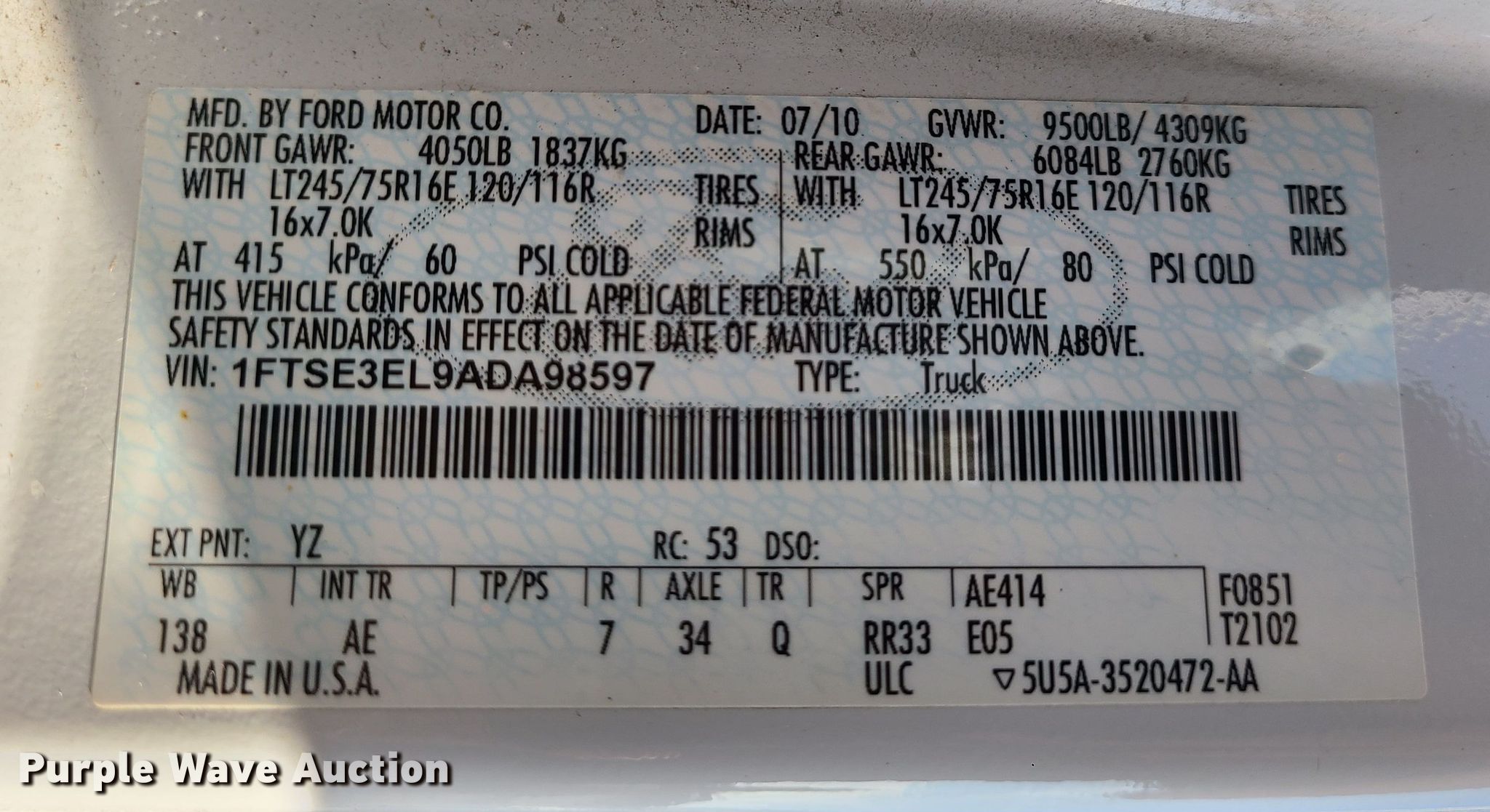 Purple Wave is selling a used 3/4 or 1 Ton Pickup or Van in Missouri. This item is a 2010 Ford E350 Super Duty van with the following: Miles: 49,058 on odometer, VIN: 1FTSE3EL9ADA98597, Unit #: 8266