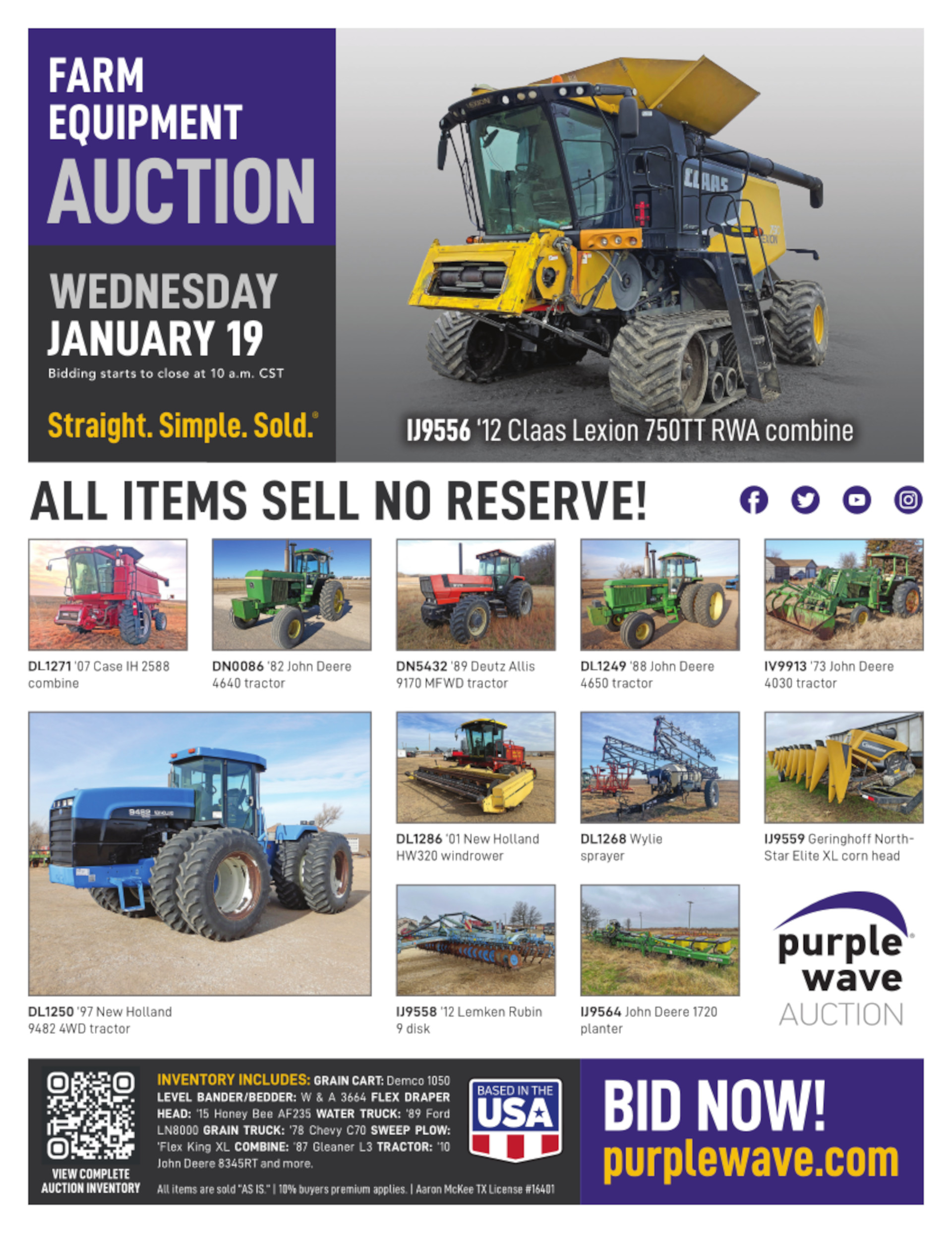 This auction is conducted by Purple Wave, Inc., whose home office is 825 Levee Drive, Manhattan, Kansas. Aaron McKee, Texas auctioneer license # 16401, operates Purple Wave, Inc. Complaints against us may be directed to the Texas Department of Licensing and Regulation, P.O. Box 12157, Austin, Texas 78711, (512) 463-6599. For additional required information, see the attached document.