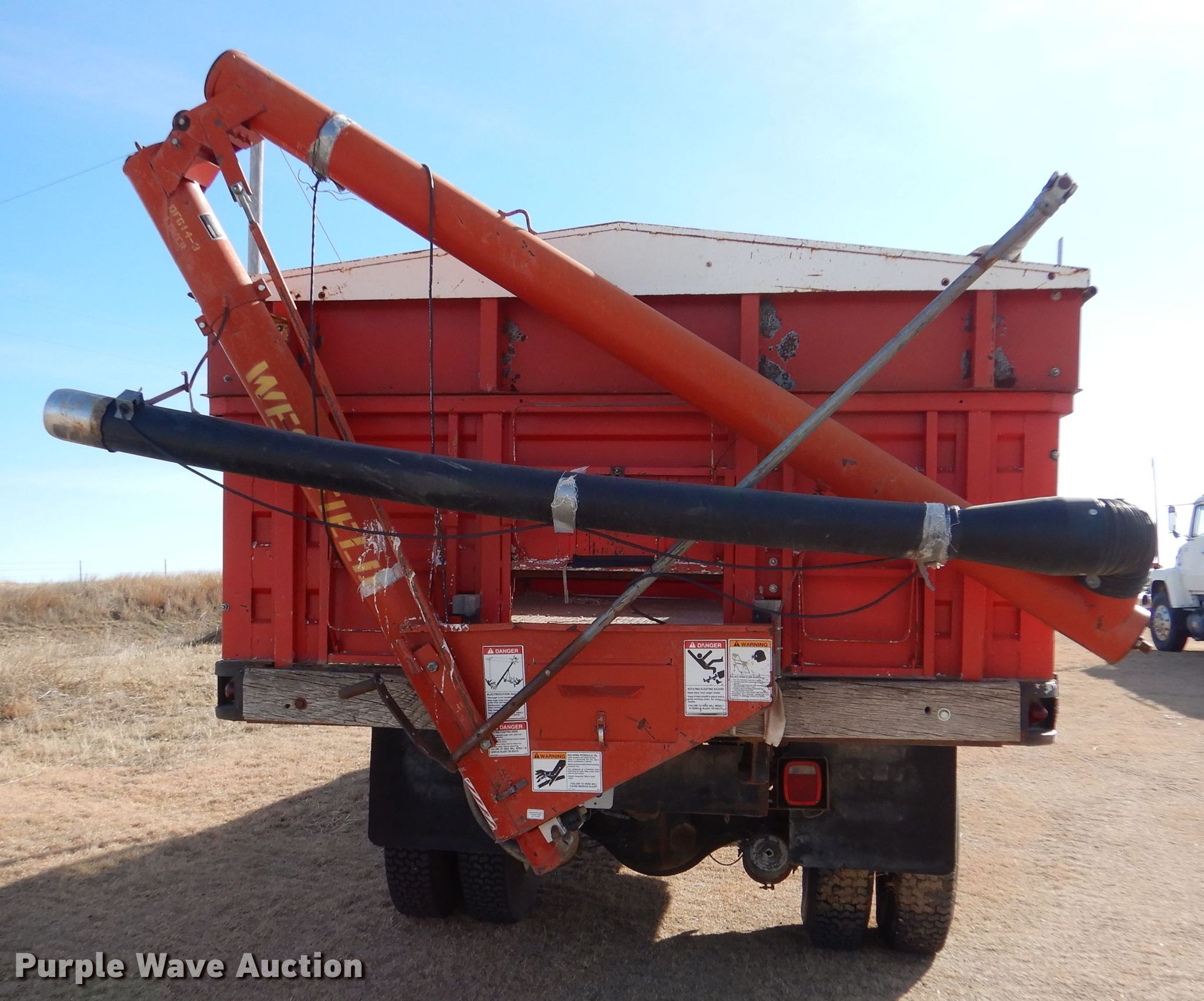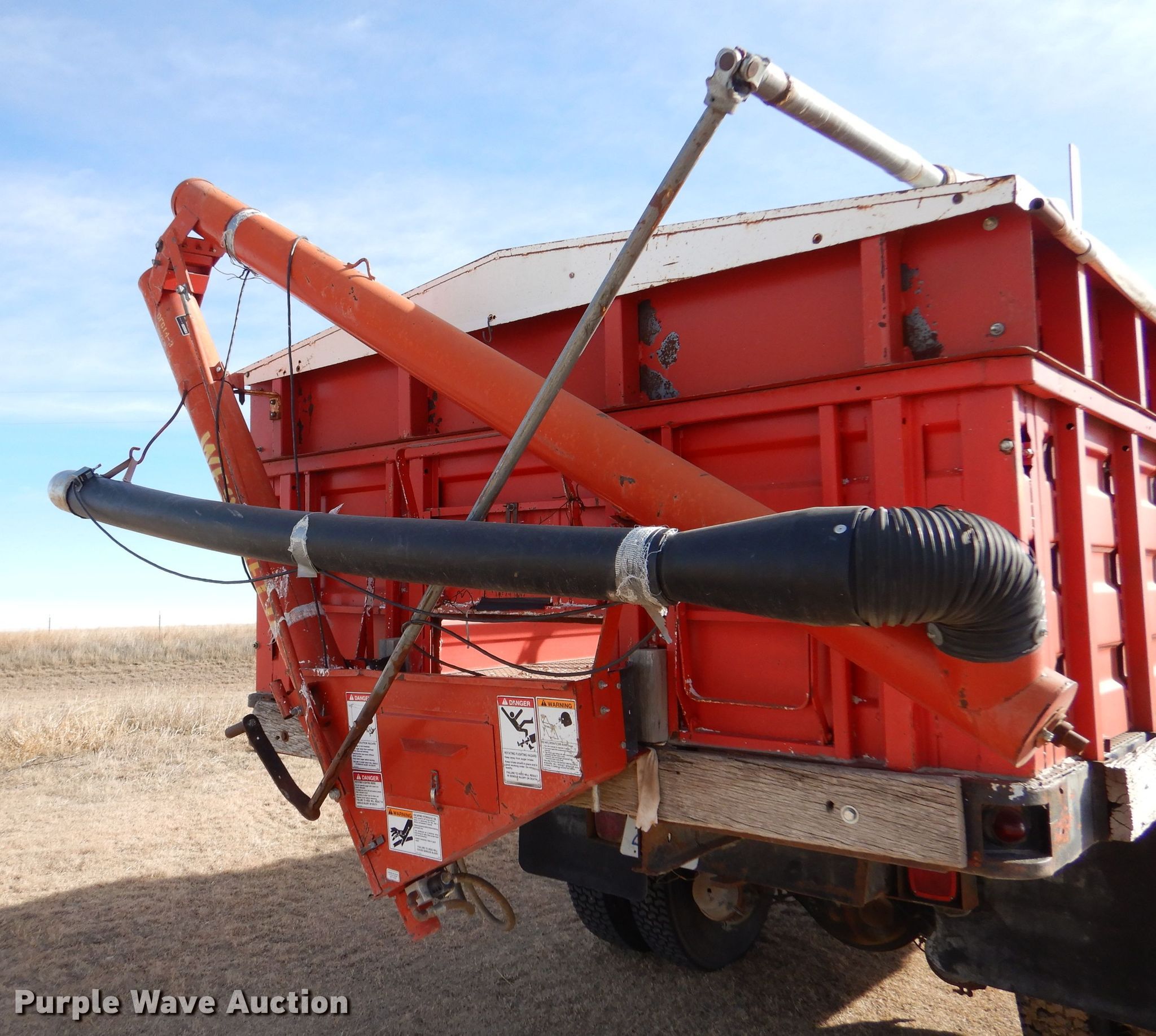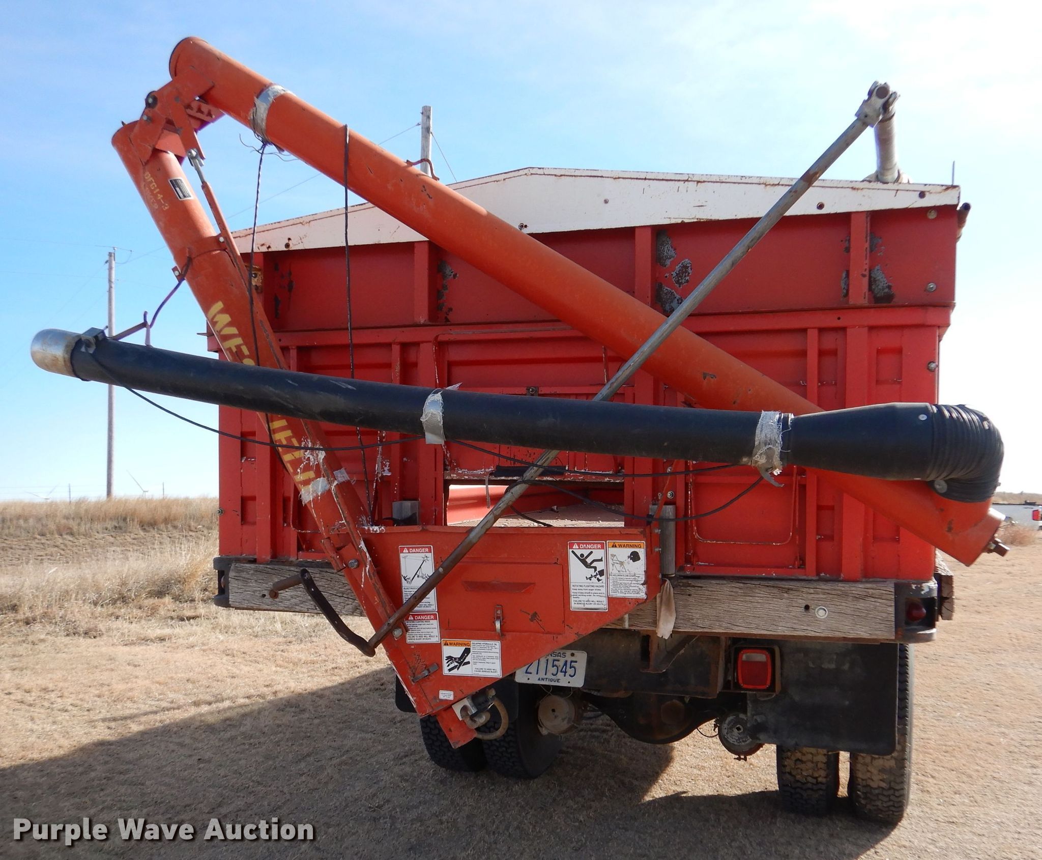1978 Chevrolet C70 grain truck. Miles: 63,396 on odometer, Hours: 5,215 on meter, VIN: CHY738V117462. Engine Caterpillar 3208, Serial: 915640, Cylinders: 8, Fuel type: Diesel. Transmission Automatic, plus 2. Chassis Axles: Single, Suspension: Spring, Brakes: Air, PTO, GVWR: 33,200 lbs FAWR: 1,200 lbs, RAWR: 21,200 lbs. Interior Heat. Operational Grain bed 16' L x 95" W, Side height: 42", Bed type: Steel, Roll tarp, Ram: Dual, End gate: Manual, Auger Westfield, Serial: 46687.. Tires Front: 10.00-20, Rear: 10.00R20. Kansas antique title. Bryan Habiger Estate. Ingalls, KS 67853