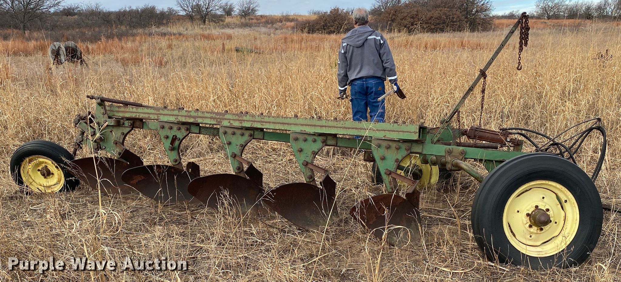 John Deere five bottom plow has sold in Shamrock, Texas for $220. Item DL1322 sold on January 19th, 2022.