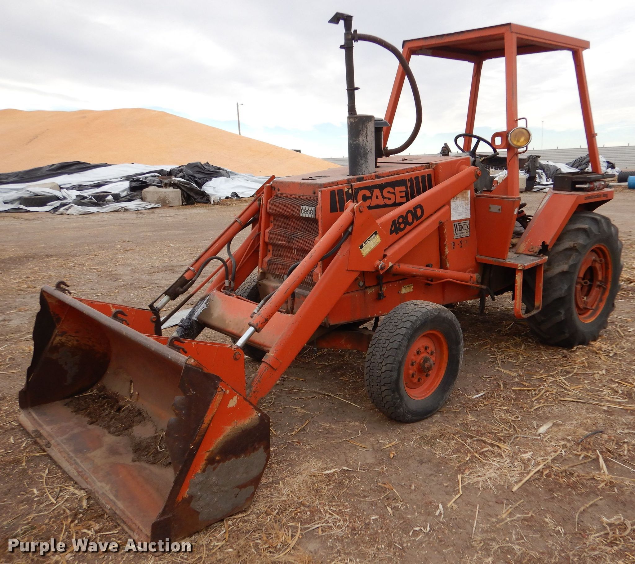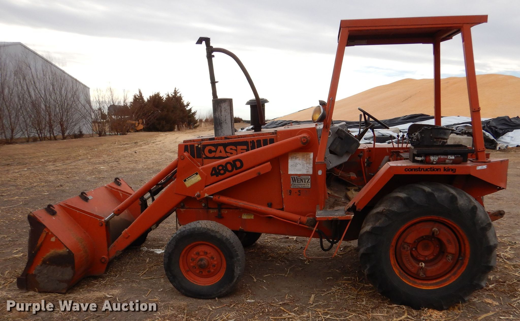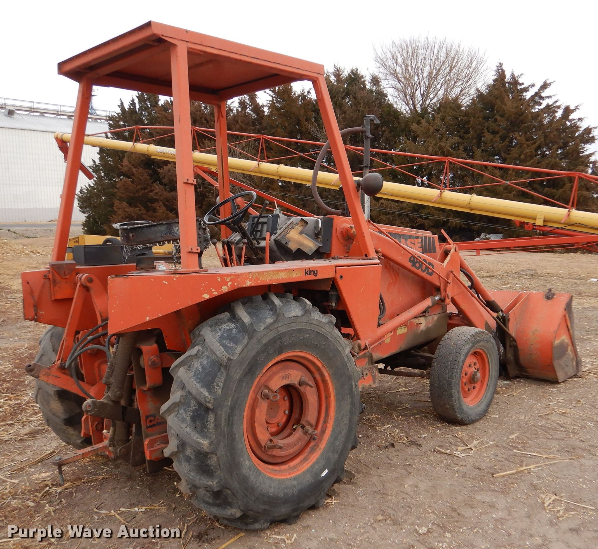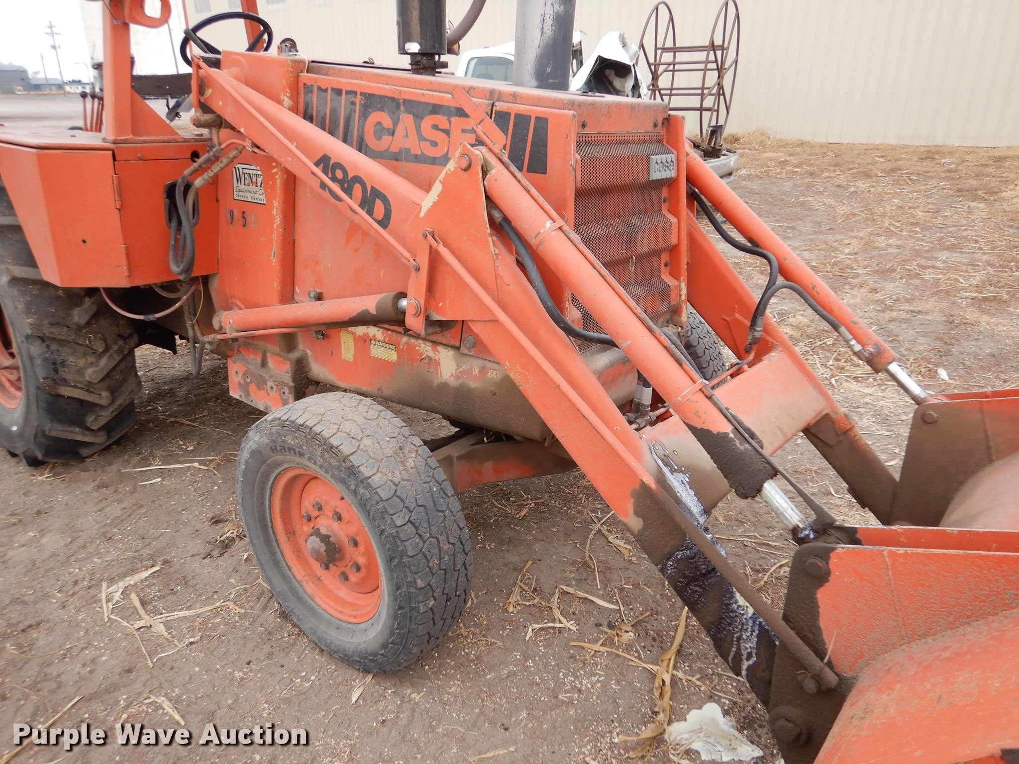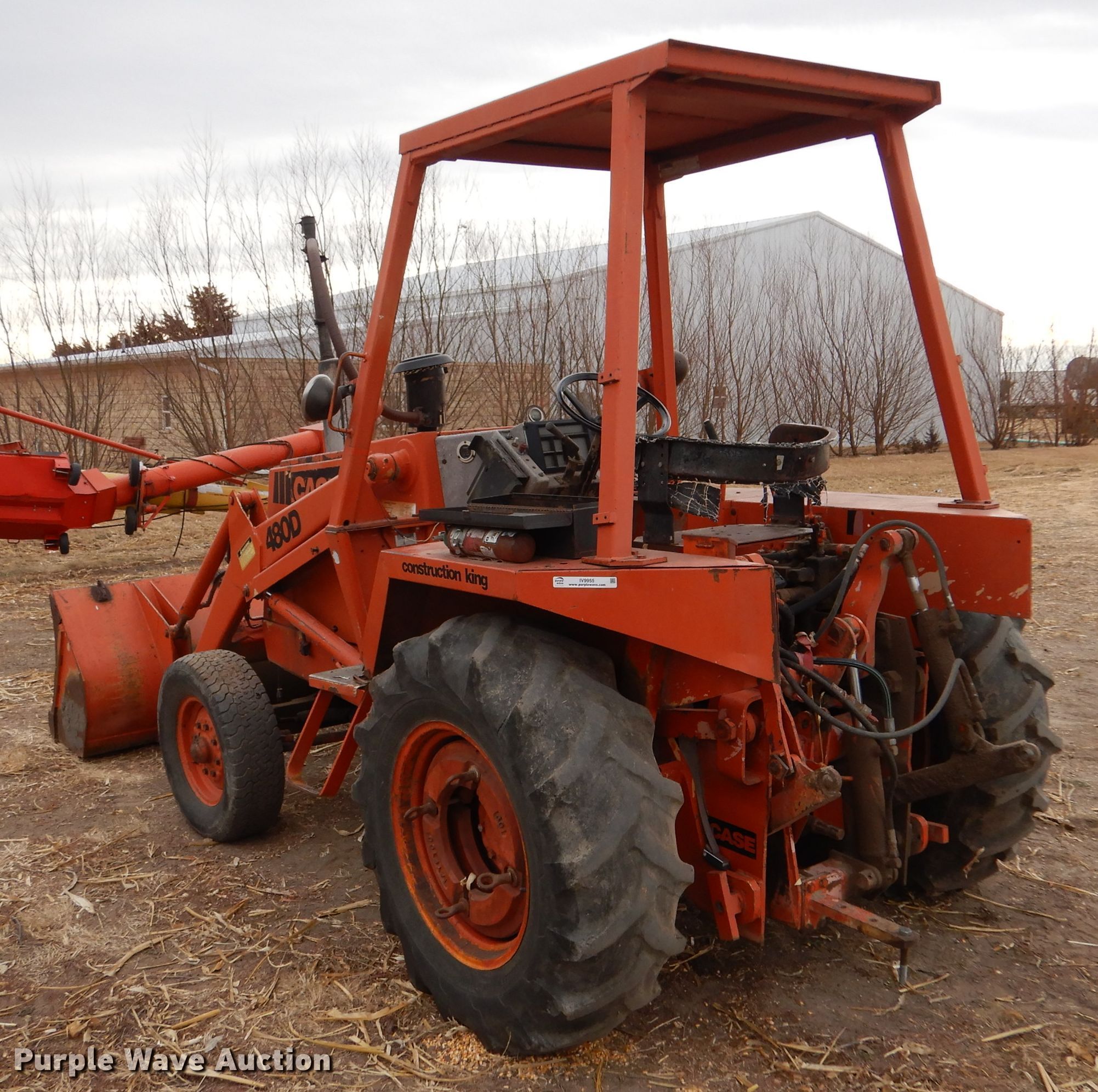 Purple Wave is selling a used Industrial Loader Tractor in Kansas. This item is a Case 480D Construction King industrial tractor with the following: Hours: 2,386 on first hour meter, Hours: 2,520 on second hour meter, Serial: 9050534