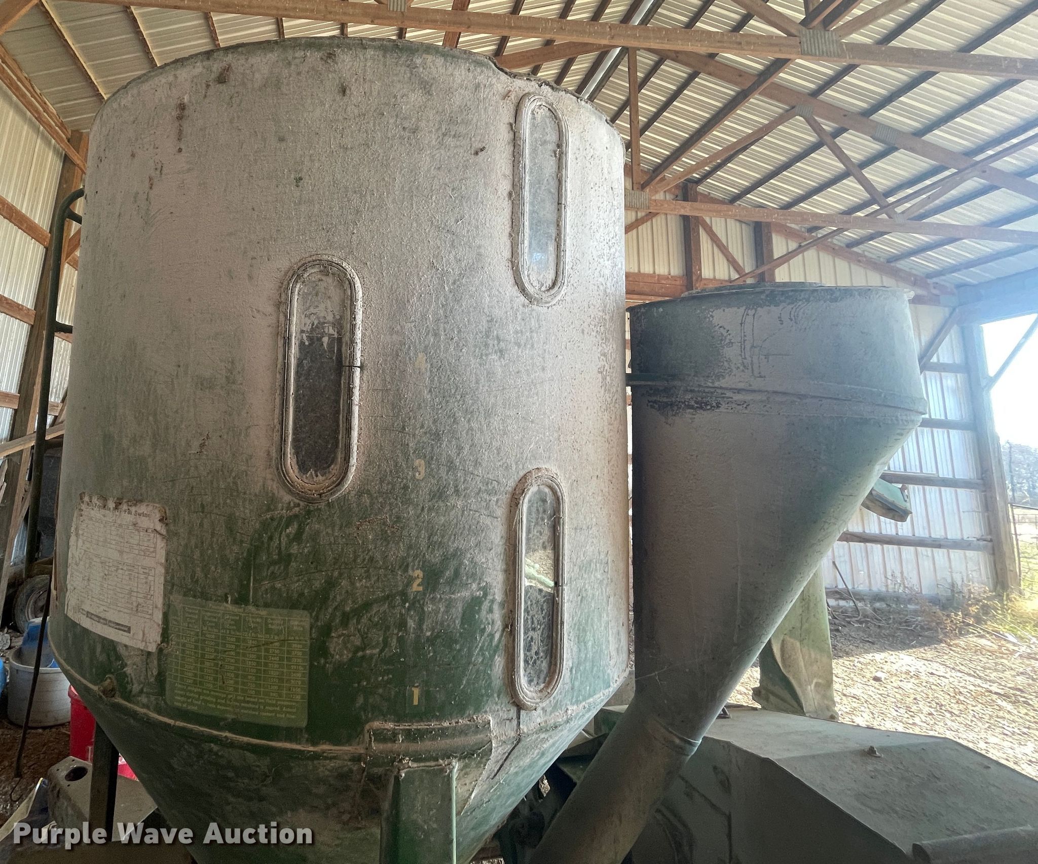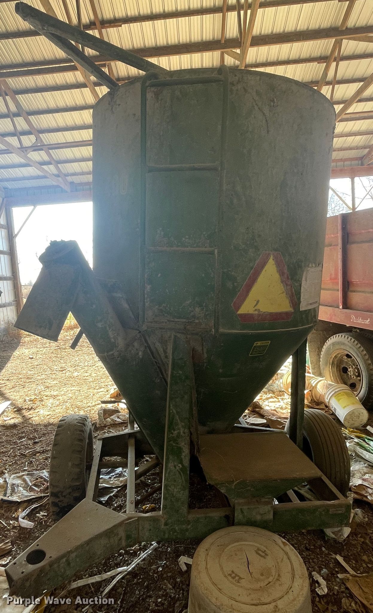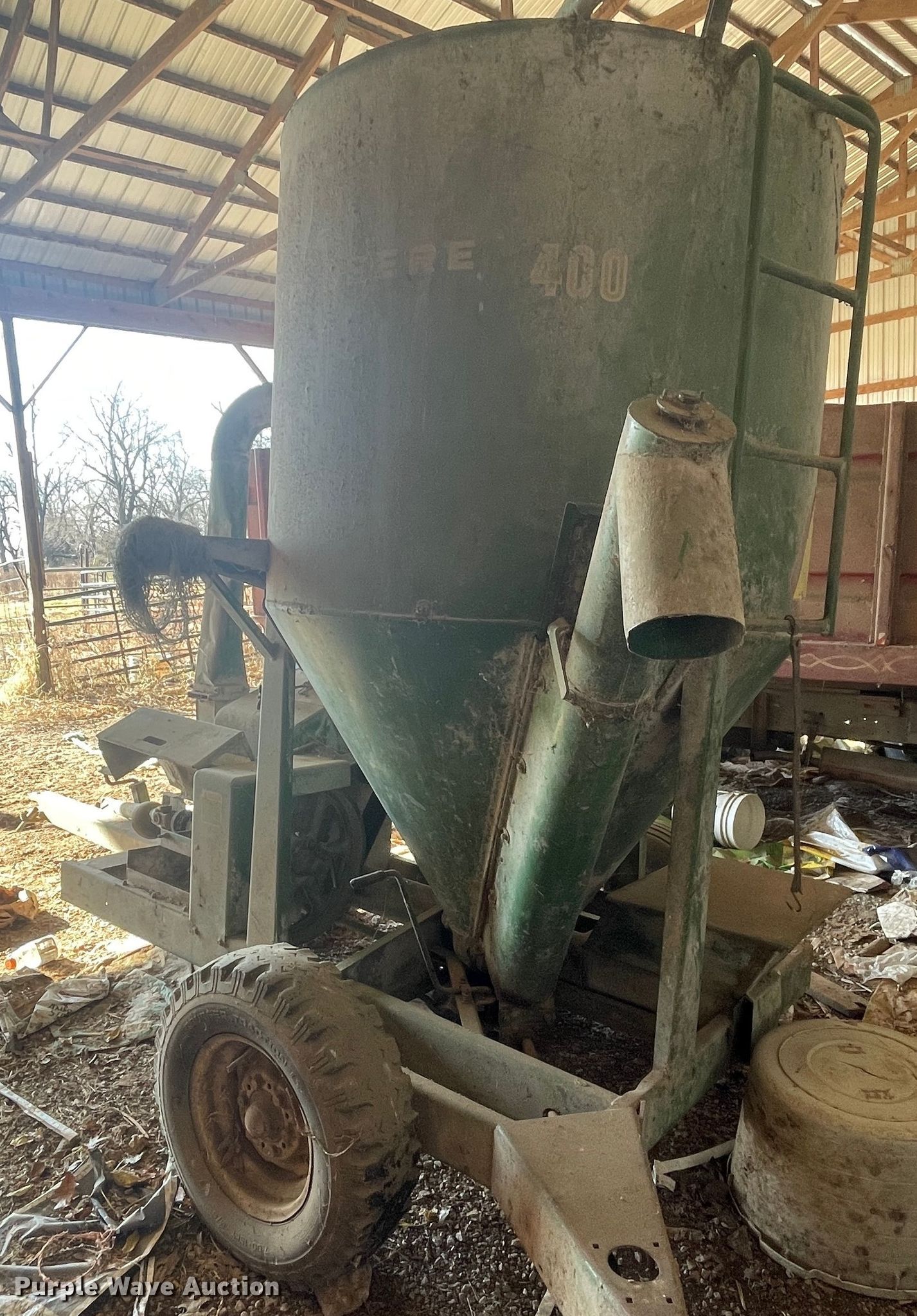 Purple Wave is selling a used Feed Mixer or Bale Processor in Missouri. This item is a John Deere E0400 feed grinder/mixer with the following: PTO: 540, Auger, Diameter: 6", Discharge: Side, Chute: Manual, Door: Manual