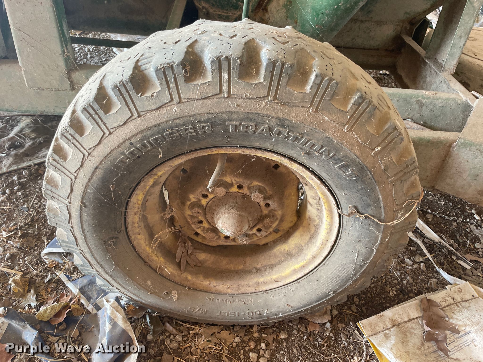 John Deere E0400 feed grinder/mixer. Operational. PTO: 540, Auger Diameter: 6", Discharge: Side, Chute: Manual, Door: Manual. Tires Size: 7.00-15LT. I-49 Silver Dime Steel Roofing. 16562 County Rd 138. Carthage, MO 64836