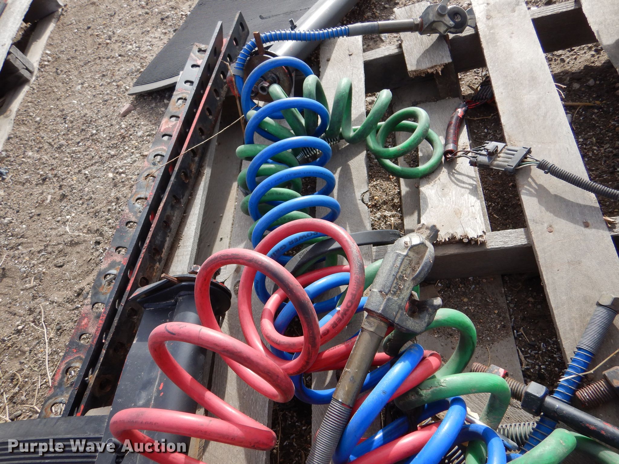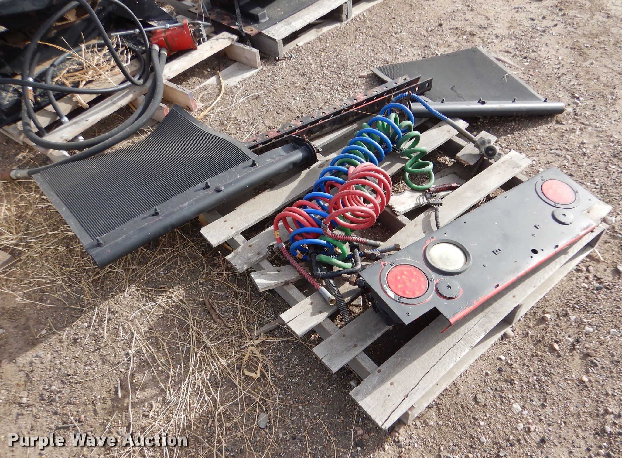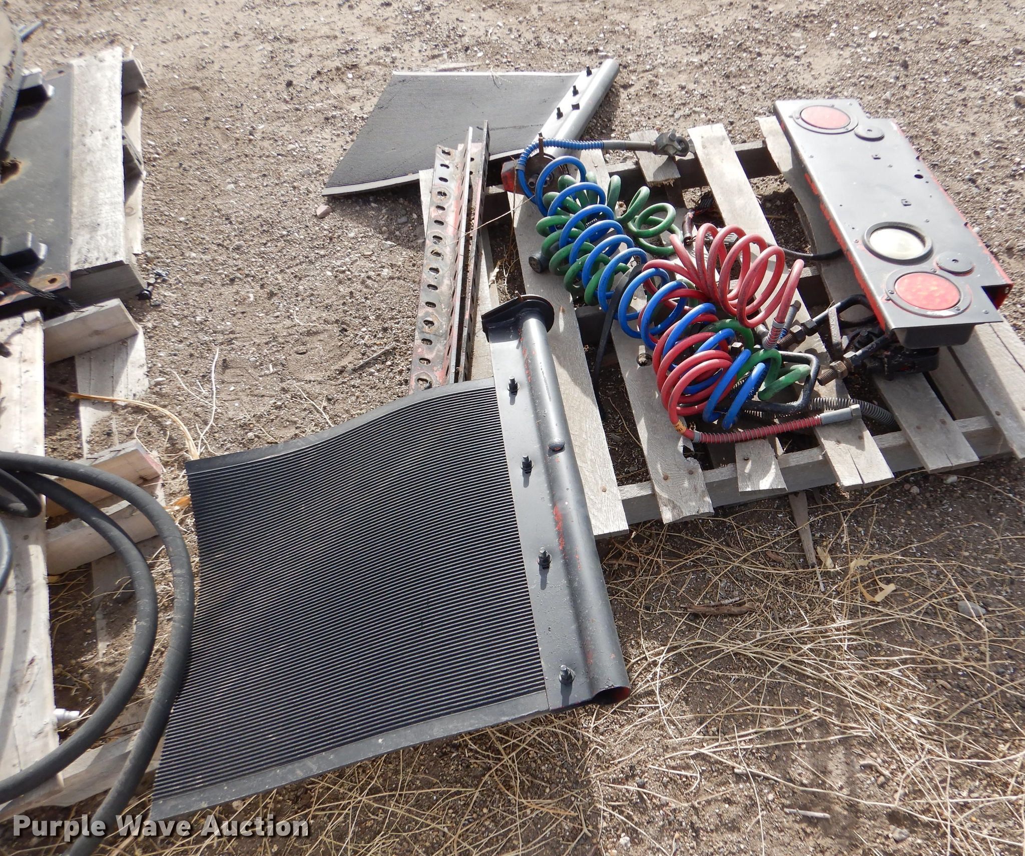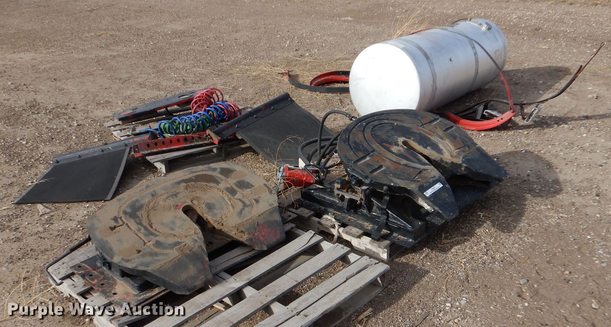 Purple Wave is selling a used Truck Part and Attach. in Kansas. This item is a Truck parts with the following: 69"L x 26" diameter fuel tank, (2) Holland fifth wheel plates, Mudflaps, Bracket, Air and electric service lines