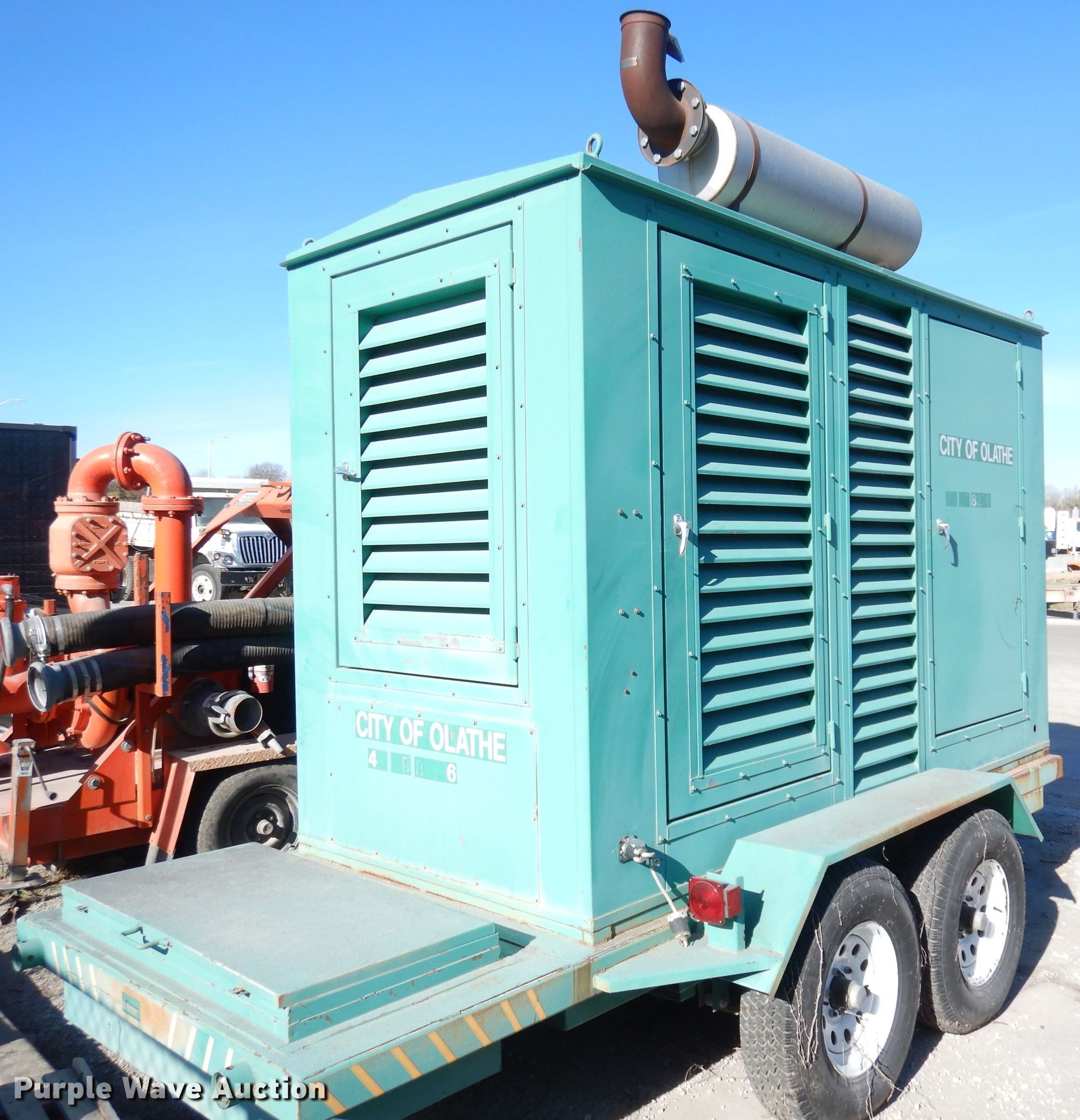 Onan 200 generator. Hours: 701 on meter, VIN: 1W9SS1424X1294211. Engine 1988 Cummins NT855G2, Serial: 30310713, Fuel type: Diesel, HP: 209. Operational Phase: Single, Three, Fuel tank. Trailer 2000 Wedlake Fabricating, Inc., 13.5' L x 60" W, Hitch: Pintle, Suspension: Spring, Axles: Tandem, Tire size: 235/85R16, GVWR: 5,443 lbs. Notes Sens battery charger, Flat tires. This is worksite support equipment and will not come with a title. Transfer of ownership documentation will be a bill of sale. Olathe, KS 66061