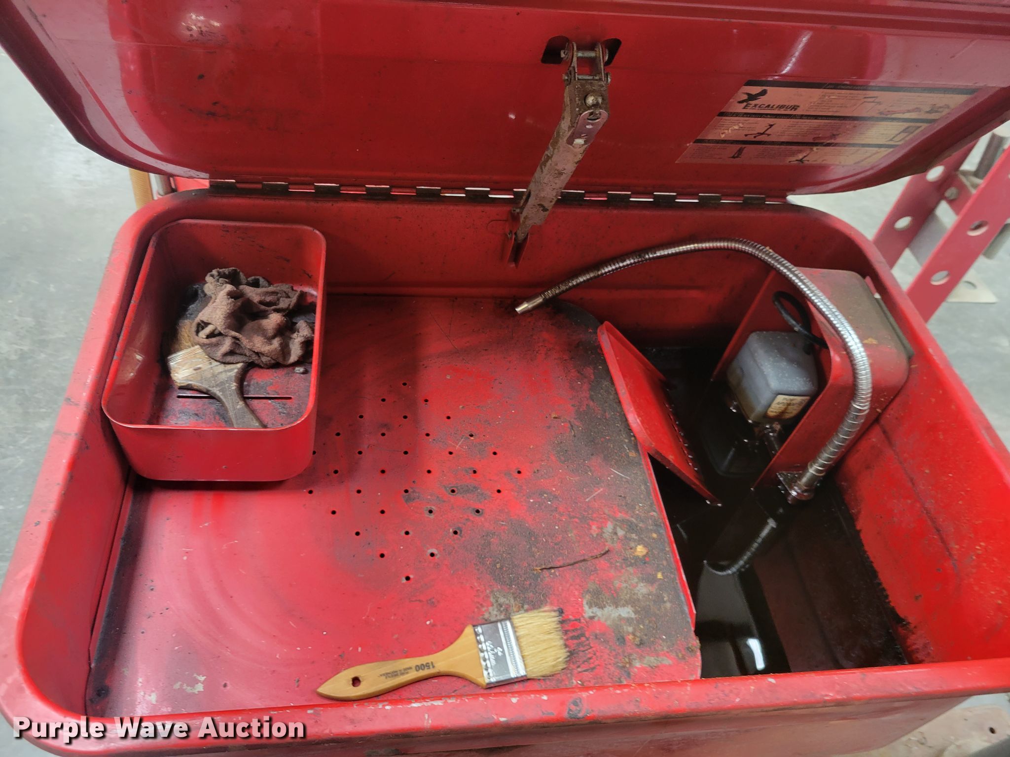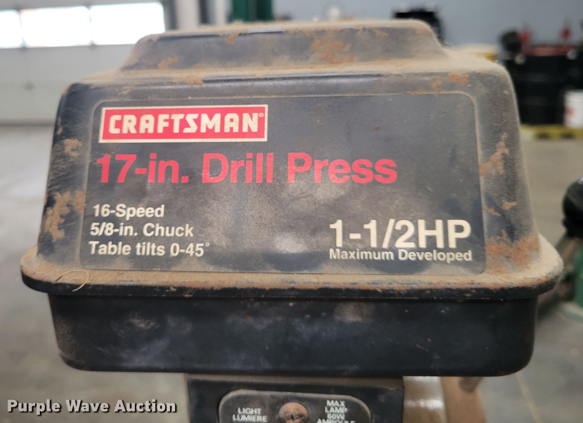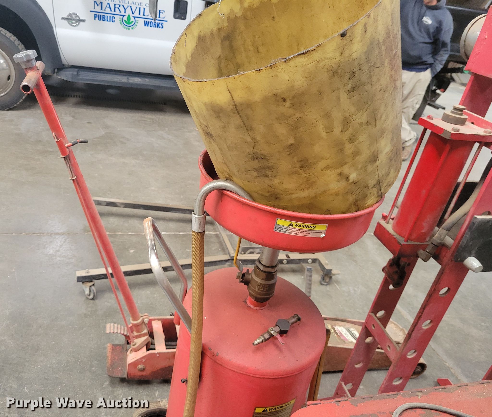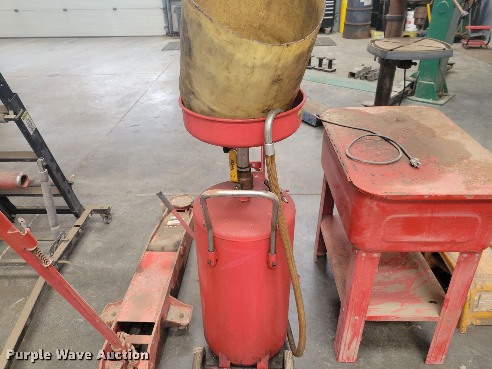 Purple Wave is selling a used Tools in Illinois. This item is a Tools with the following: 20 ton hydraulic press, Craftsman 17" drill press, Ramps, Oil drain tank, Parts washer, Five ton floor jack, Topside creeper