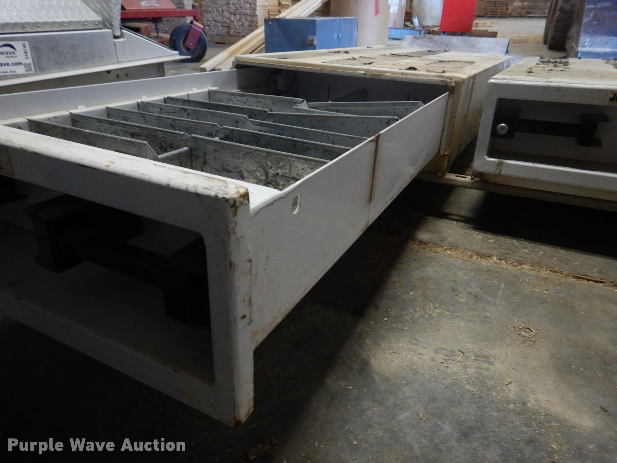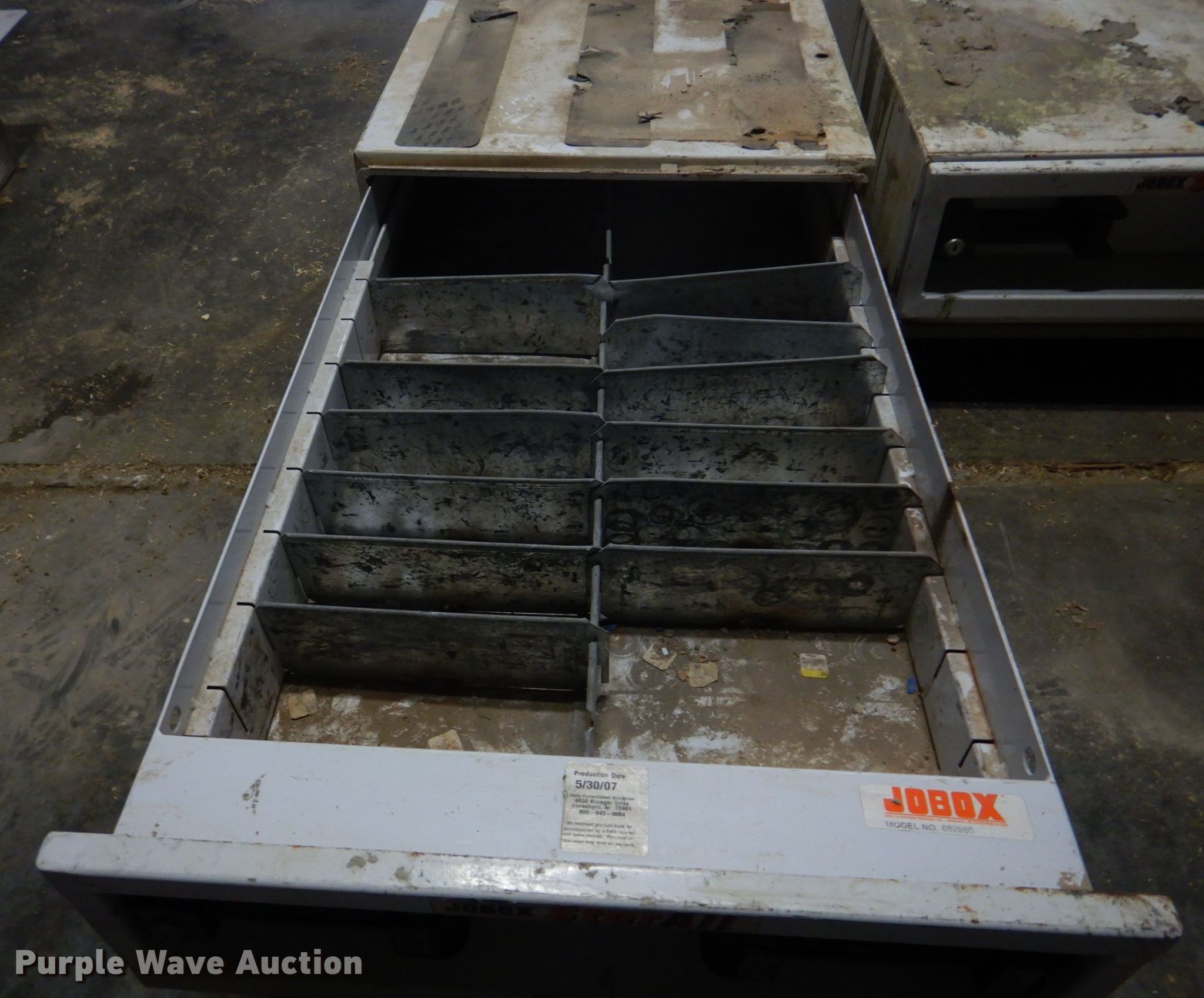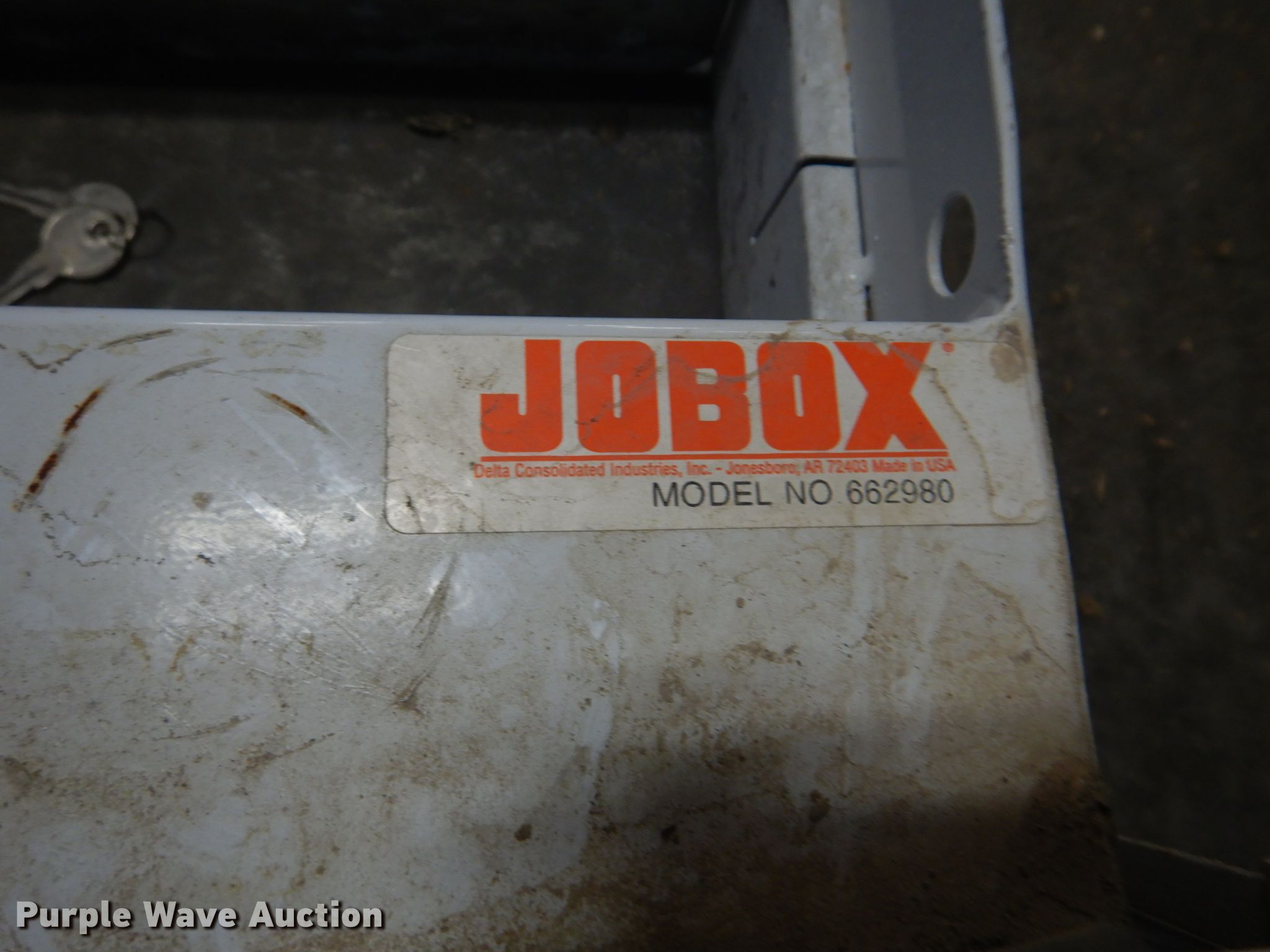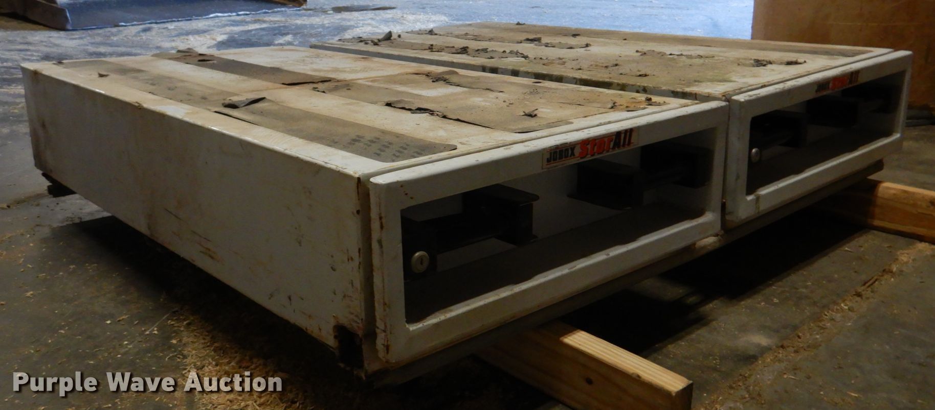 Purple Wave is selling a used Tools in Missouri. This item is a Tool boxes with the following: Highway Products, Overall: 102 1/2" L x 71" W, Aluminum truck bed box, (2) side boxes w/ tool dividers, Center box, Keys included, (2) JOBOX 662980 StorAll tool boxes, 4' L x 2' W x 9' H, Drawer divider, Keys included