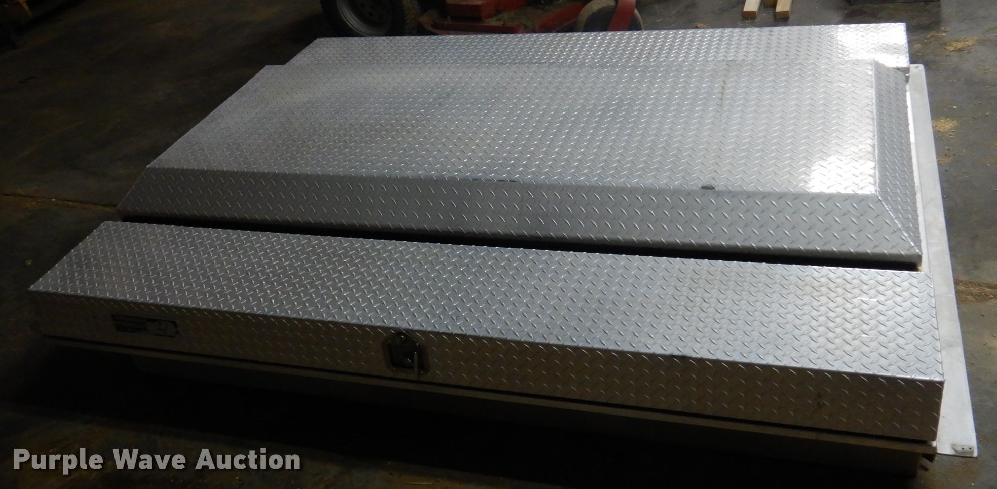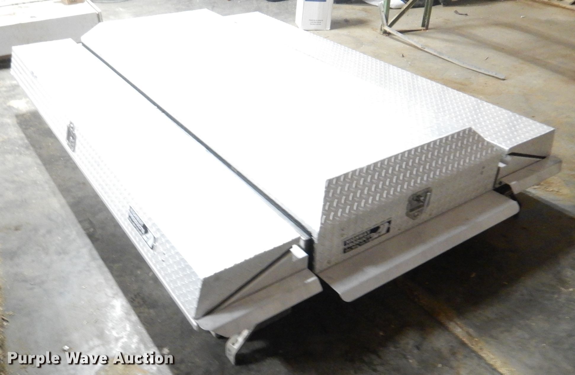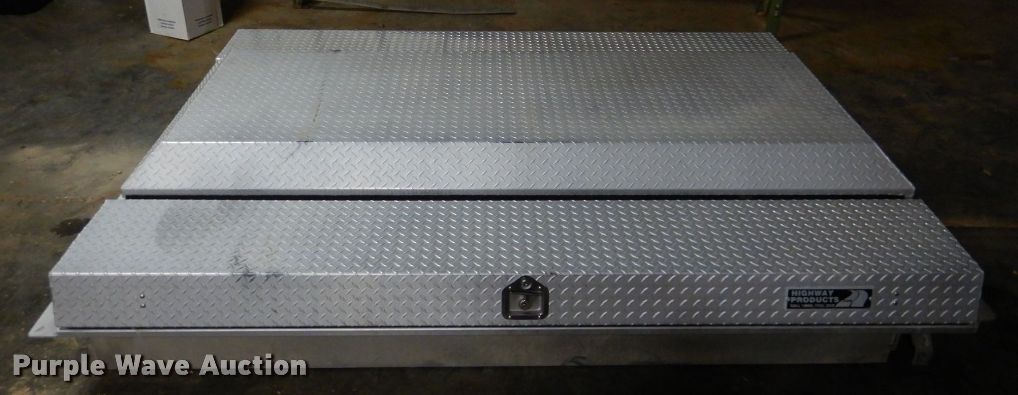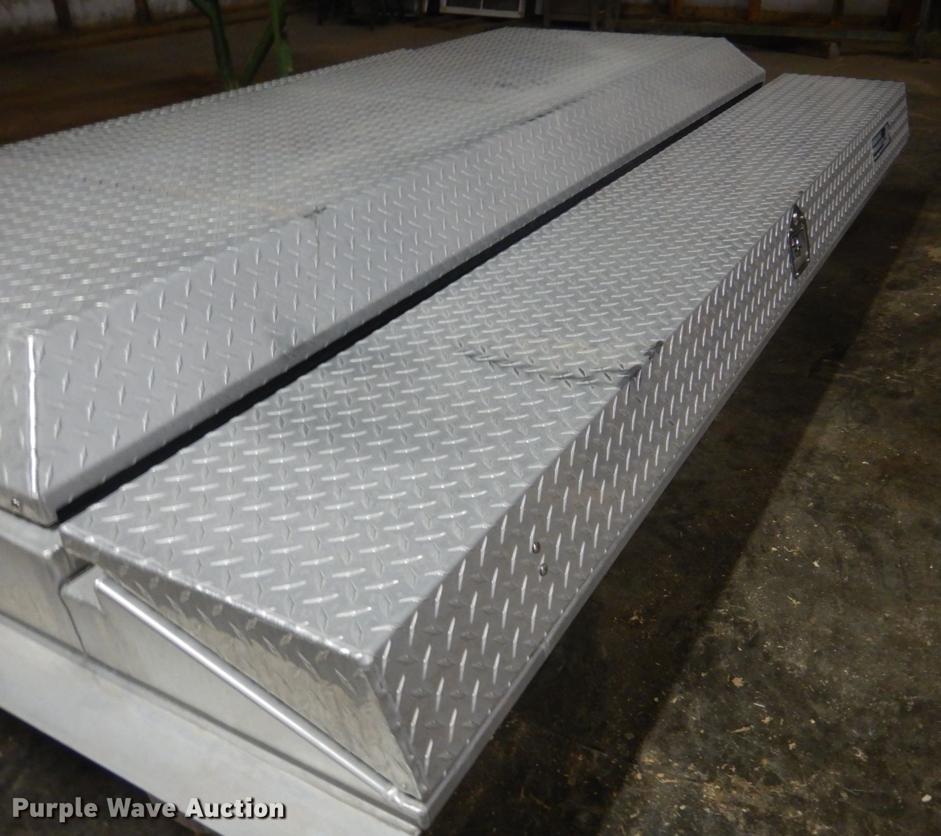 Purple Wave is selling a used Tools in Missouri. This item is a Tool boxes with the following: Highway Products, Overall: 102 1/2" L x 71" W, Aluminum truck bed box, (2) side boxes w/ tool dividers, Center box, Keys included, (2) JOBOX 662980 StorAll tool boxes, 4' L x 2' W x 9' H, Drawer divider, Keys included